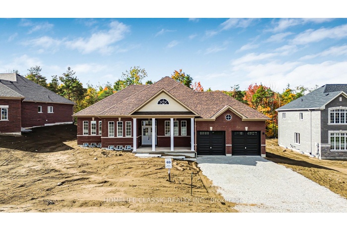 Welcome to 74 Ruby Ridge, a stunning brand-new, never-lived-in 2,170 square foot bungalow set on a picturesque 0.7-acre lot surrounded by the greenbelt in beautiful Oro-Medonte. This exceptional property offers a peaceful Muskoka-like setting just minutes from Barrie, Orillia, and Highway 400, blending the tranquility of nature with the convenience of city access. Step inside to discover a bright, open-concept layout designed for modern living. The upgraded kitchen features extended cabinetry, an extended double-door fridge, and a spacious island, all perfectly positioned to overlook the lush greenbelt for a calm and relaxing view. The family and living rooms flow effortlessly together, creating an inviting space ideal for entertaining or spending quiet evenings with family. This beautiful home offers three oversized bedrooms, including a primary suite complete with a luxurious spa-inspired ensuite and serene views of the surrounding nature. Every detail of this home has been thoughtfully designed to combine comfort, function, and style. Outside, the property impresses with its 99-foot frontage and 310-foot depth, providing endless outdoor possibilities. Whether you envision a garden, patio, or backyard retreat, there's plenty of room to make it your own. The oversized 2-car garage provides ample space for vehicles and storage, while the driveway comfortably accommodates up to four additional cars. Located in a quiet, family-friendly community, this home offers the perfect balance of peaceful country living and modern convenience. A brand-new school is just moments away, along with scenic trails, ski resorts, and local amenities. Surrounded by nature yet close to everything you need, 74 Ruby Ridge is a rare opportunity to experience refined countryside living where modern design meets natural beauty.