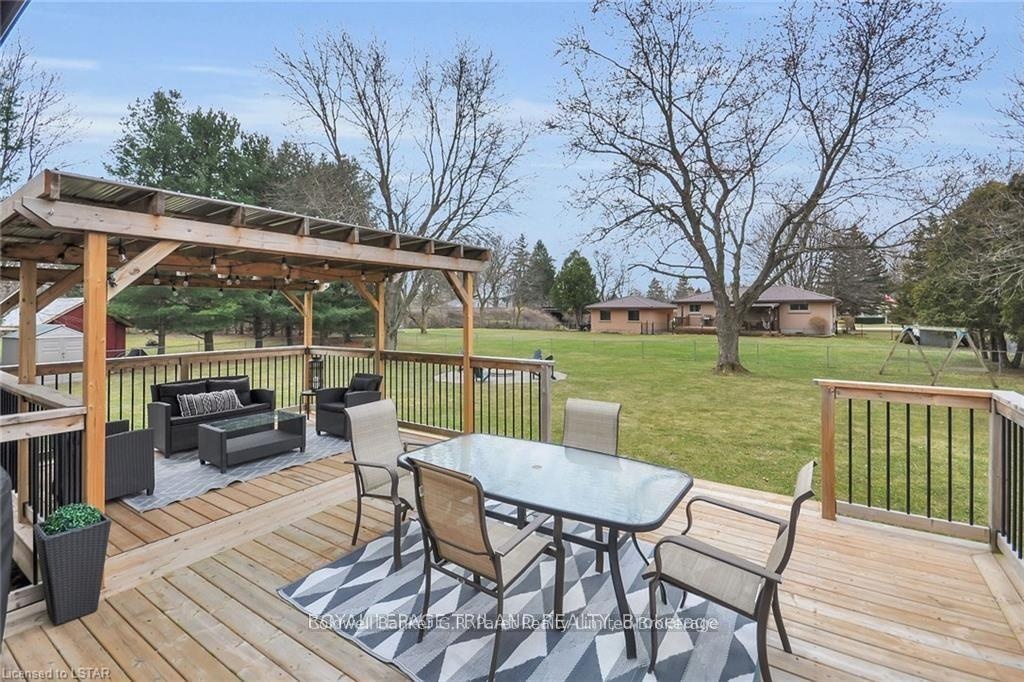 Ever Dream of having a Large Parcel of land, without sacrificing the convenience of living in town close to all amenities? This Absolutely Stunning All Brick Bungalow with a Brand New Lifetime Metal roof (warranty transferable) rests on just under a 1/2 ACRE Lot in the Lovely town of Komoka. Walking distance to Parkview Public School. Inside Features updated kitchen and bathroom with newer hard top counters, Fabulous Cabinetry and a built in bench seat in the Dining room. Outdoorsman's Dream with a Covered front porch, Updated Fire pit, exterior Natural Gas Line, a large deck with Pergola allowing for ample space for entertaining, alongside an oversized Brand New 10'x18' garden shed with an additional overhang for even more storage. A combination of mature landscaping as well as an expansive freshly planted treed lot that will allow for privacy once fully grown. Decor is tastefully done along with updated flooring throughout and a finished lower level. Side entry could allow for separate entrance into an In-Law suite. Municipal water with a bonus Sand point well on property for watering the lawn, washing your car or adding a pool. Pride of ownership is very evident.