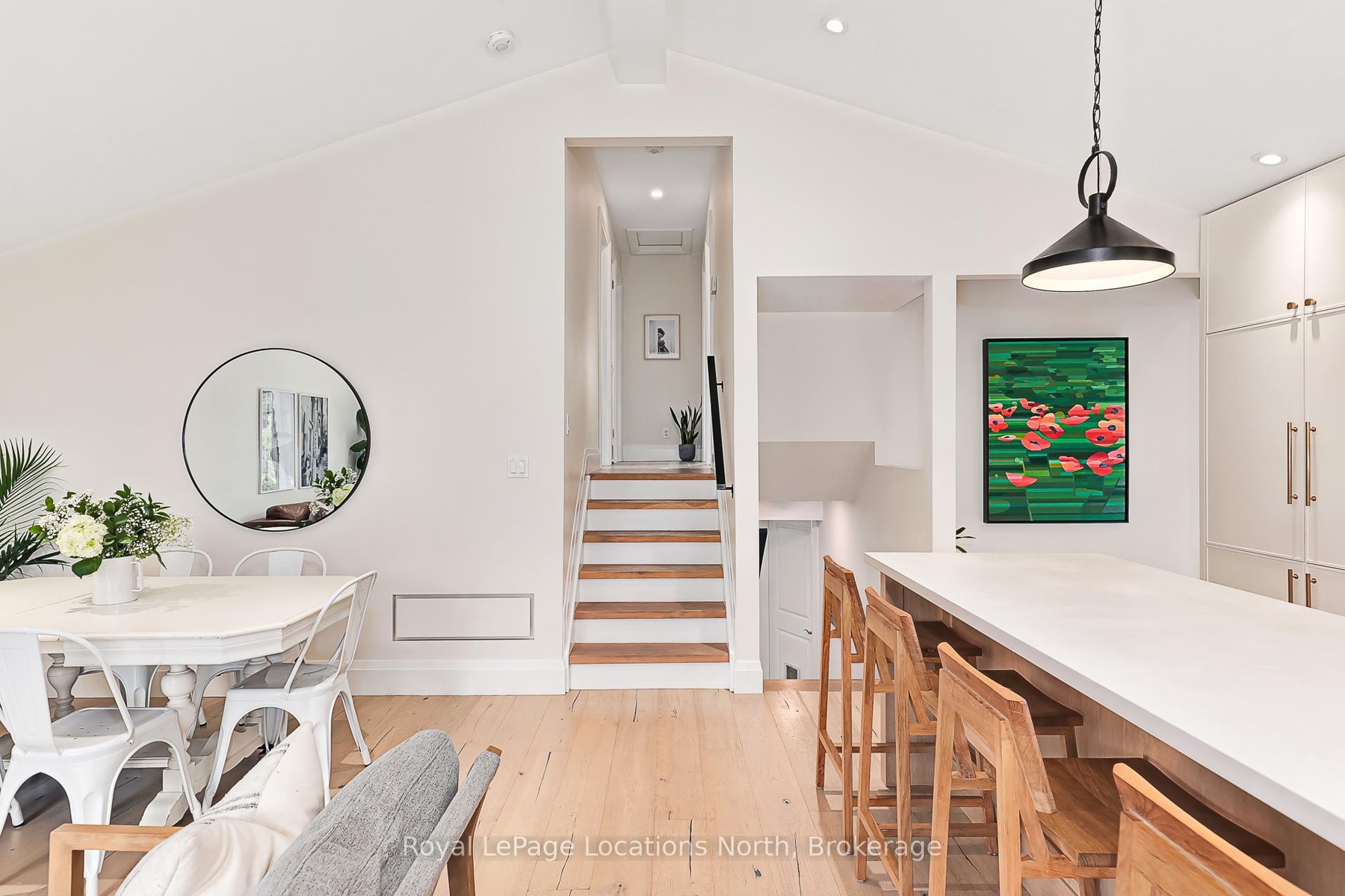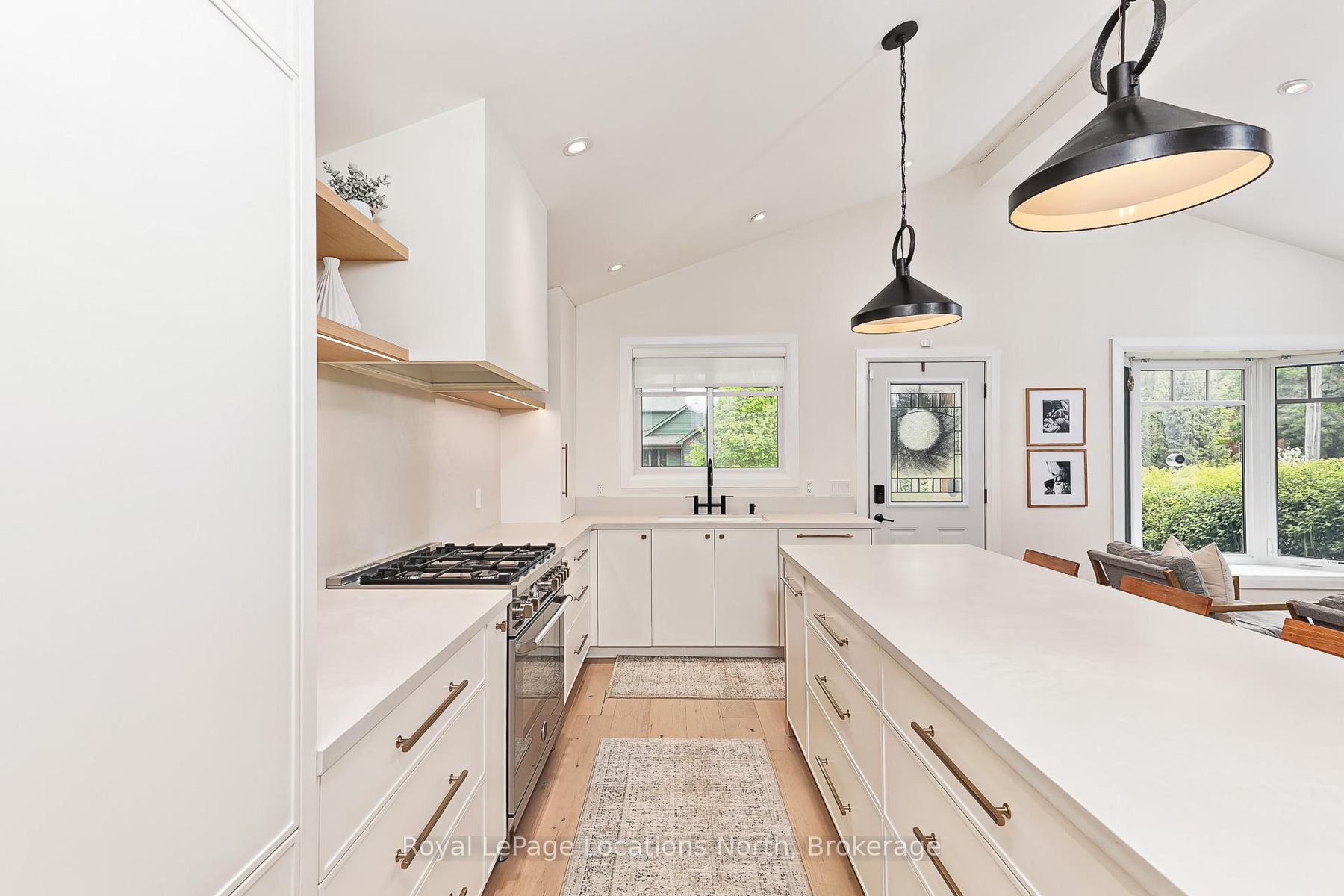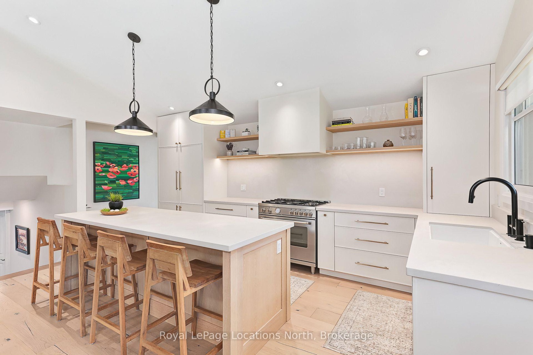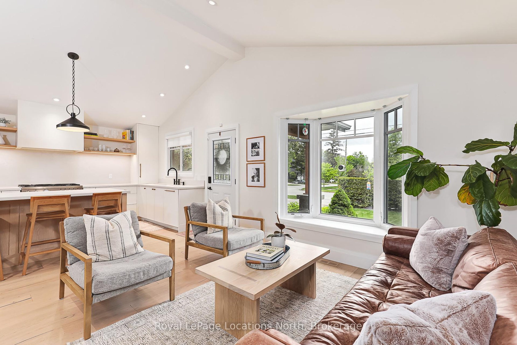 Welcome to this beautifully redesigned back-split, perfectly situated within walking distance to downtown Collingwood's shops, cafés, and trails. Thoughtfully renovated with attention to detail, this home showcases a custom kitchen, bathrooms, and millwork throughout, blending craftsmanship with contemporary style. The main level features vaulted ceilings and an open-concept living space that feels bright, airy, and inviting. The custom kitchen offers sleek cabinetry, high-end finishes, and an ideal layout for entertaining. With three spacious bedrooms, two full bathrooms have been fully updated with modern fixtures and timeless design. This home offers flexibility for family and guests-every detail from the trim work to the lighting has been carefully curated for style and function. Outside, enjoy a private yard and a peaceful neighbourhood setting, all just minutes from Georgian Bay, the waterfront trail, and Collingwood's vibrant downtown core.