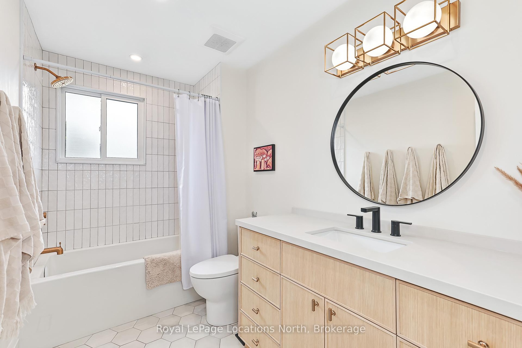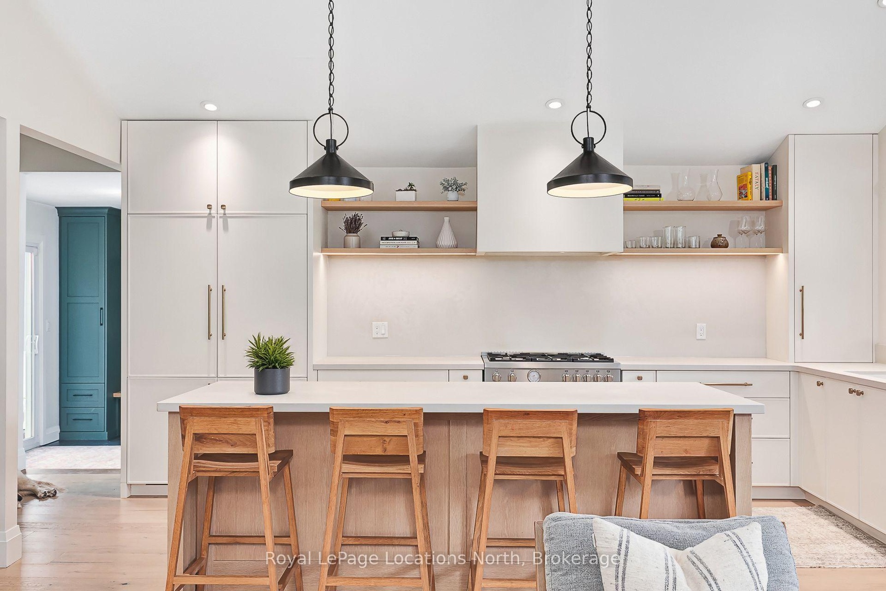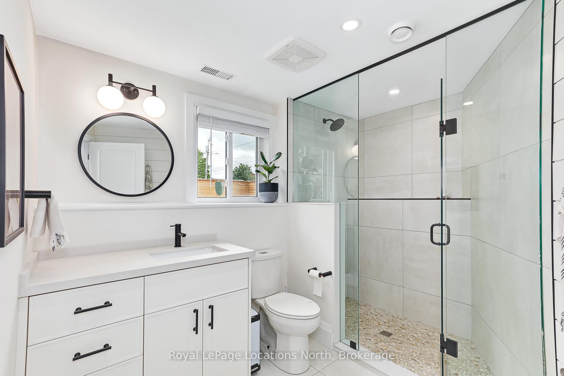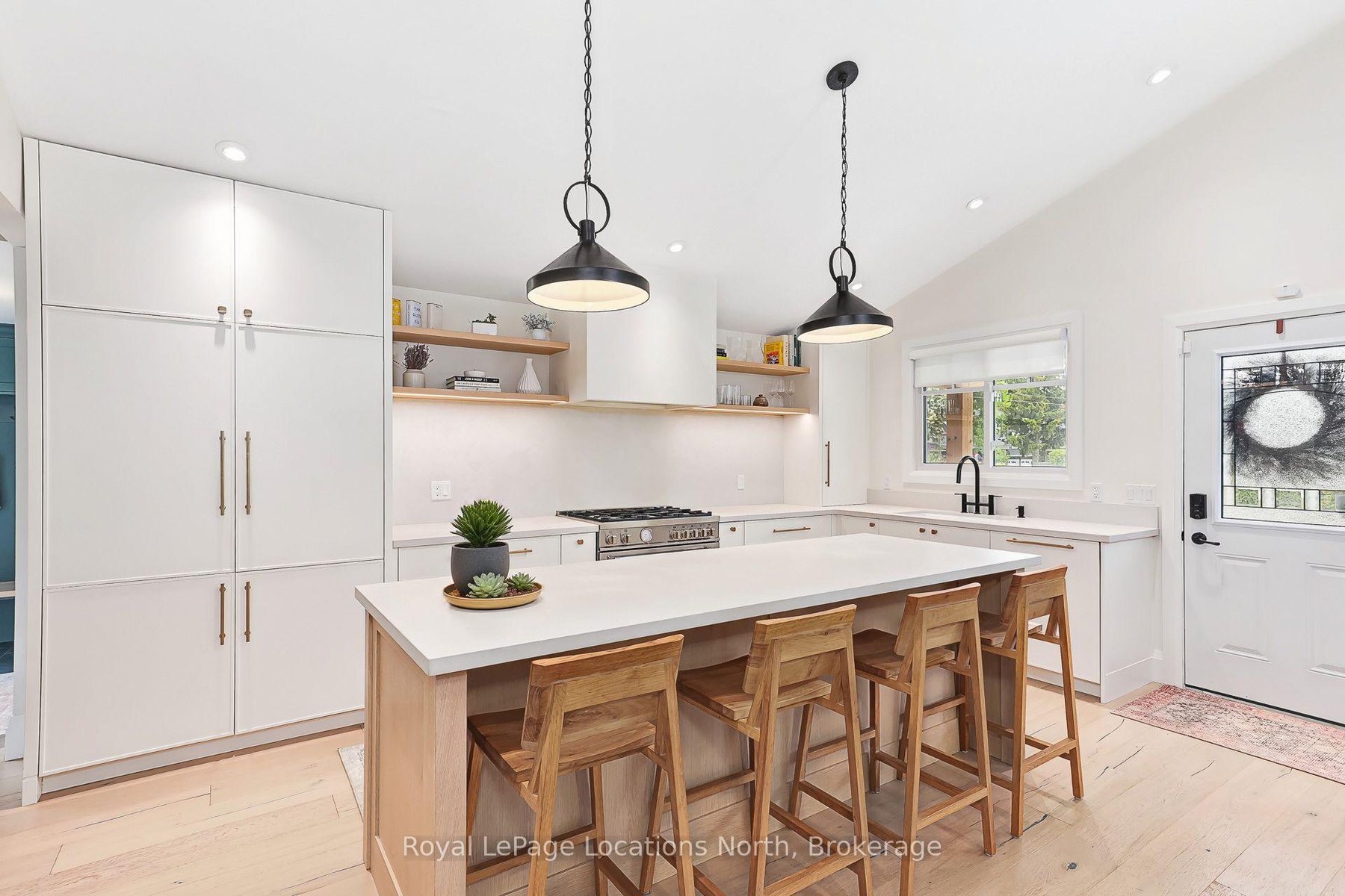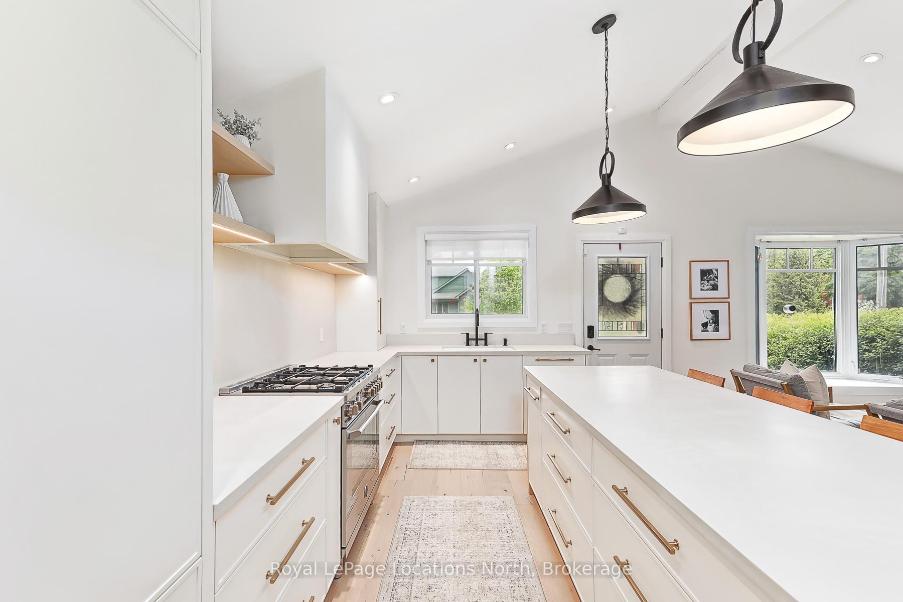 Welcome to this beautifully redesigned back-split, perfectly situated within walking distance to downtown Collingwood's shops, cafés, and trails. Thoughtfully renovated with attention to detail, this home showcases a custom kitchen, bathrooms, and millwork throughout, blending craftsmanship with contemporary style. The main level features vaulted ceilings and an open-concept living space that feels bright, airy, and inviting. The custom kitchen offers sleek cabinetry, high-end finishes, and an ideal layout for entertaining. With three spacious bedrooms, two full bathrooms have been fully updated with modern fixtures and timeless design. This home offers flexibility for family and guests-every detail from the trim work to the lighting has been carefully curated for style and function. Outside, enjoy a private yard and a peaceful neighbourhood setting, all just minutes from Georgian Bay, the waterfront trail, and Collingwood's vibrant downtown core.