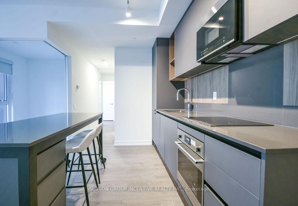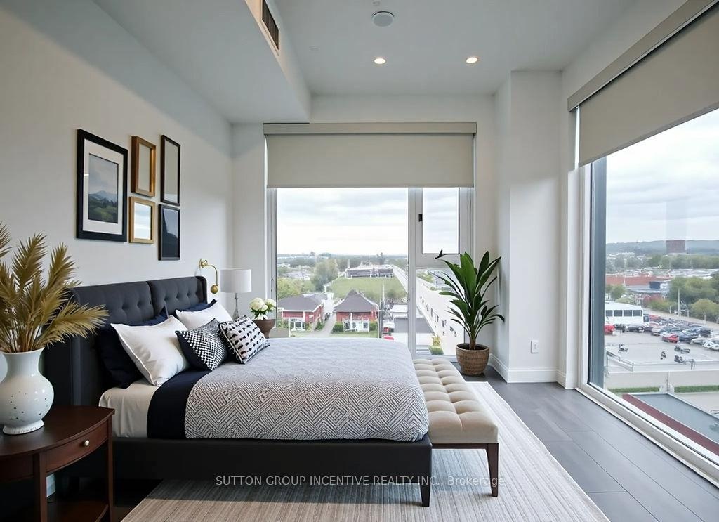 Best price in building for Size!!! Need a Mortgage? Seller would consider a VTB!! Debut Condos where luxury waterfront living meets an urban lifestyle! Upscale lakeside living in this brand-new, never-lived-in 1-bedroom plus den (could be used as 2nd Bedroom), 2-bathroom corner suite perfectly situated in the heart of downtown Barrie. Modern design, 9-ft ceilings, smooth ceilings, floor-to-ceiling windows, and wide-plank laminate flooring. The gourmet kitchen features custom cabinetry, integrated appliances, a movable island, and solid surface countertops. Enjoy two elegant bathrooms with contemporary vanities, frameless glass showers, and porcelain tile flooring. North & West Views breathtaking city views, with natural light streaming through oversized windows that wrap around the entire suite. Blinds installed on all windows. The generously sized den provides exceptional flexibility - ideal as a second bedroom, home office, or inviting guest space. Step outside your door and enjoy Barrie's vibrant waterfront, trendy restaurants, and exciting nightlife along Dunlop Street, with the Central Bus Terminal conveniently located right next to the building. This suite includes one owned underground parking space. Residents will enjoy premium amenities, including a state-of-the-art fitness center, expansive recreational terrace with a BBQ area, and a spectacular 360 outdoor heated pool overlooking Kempenfelt Bay offering the ultimate Nordic spa-like experience. Don't miss your chance to own this remarkable lakeside retreat in Barrie's newest and much anticipated high-rise condo by the lake. Including built-in refrigerator, built-in dishwasher, built-in oven, stove top, microwave, stacked laundry washer & dryer. 3 First pictures Inside are virtually rendered to show furniture.