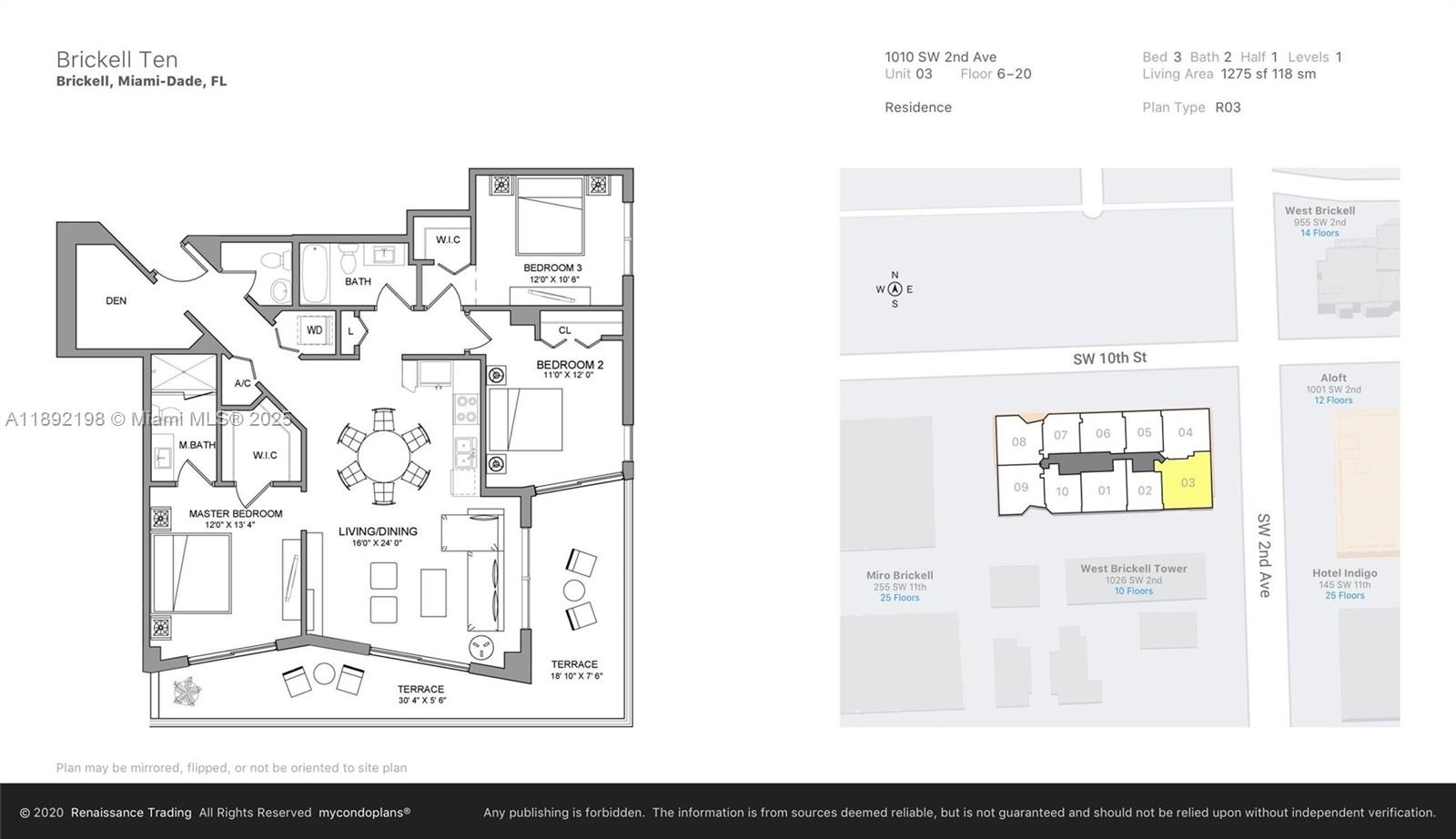 Tenant occupied until 06.30.2026. 5400$ Brickell Ten Condo: Modern living in this 2017-built, 1273 SqFt corner unit. Features 3 bedrooms, 1 enclosed DEN, 2 assigned garage parking spaces, and 1 storage unit. Enjoy a spacious 285.6 SqFt wrap-around terrace, open layout with 9’ ceilings, and floor-to-ceiling tinted sliding glass doors. Italian kitchen with quartz countertops, Bosch appliances, and in-unit washer/dryer. Amenities include rooftop gym, hot-tub and barbecue. 1600 sq ft pool, and social club with billiard on the 5th floor. Located just 1 block from Publix and 2 blocks from Brickell City Centre. Perfectly positioned for convenience and luxury