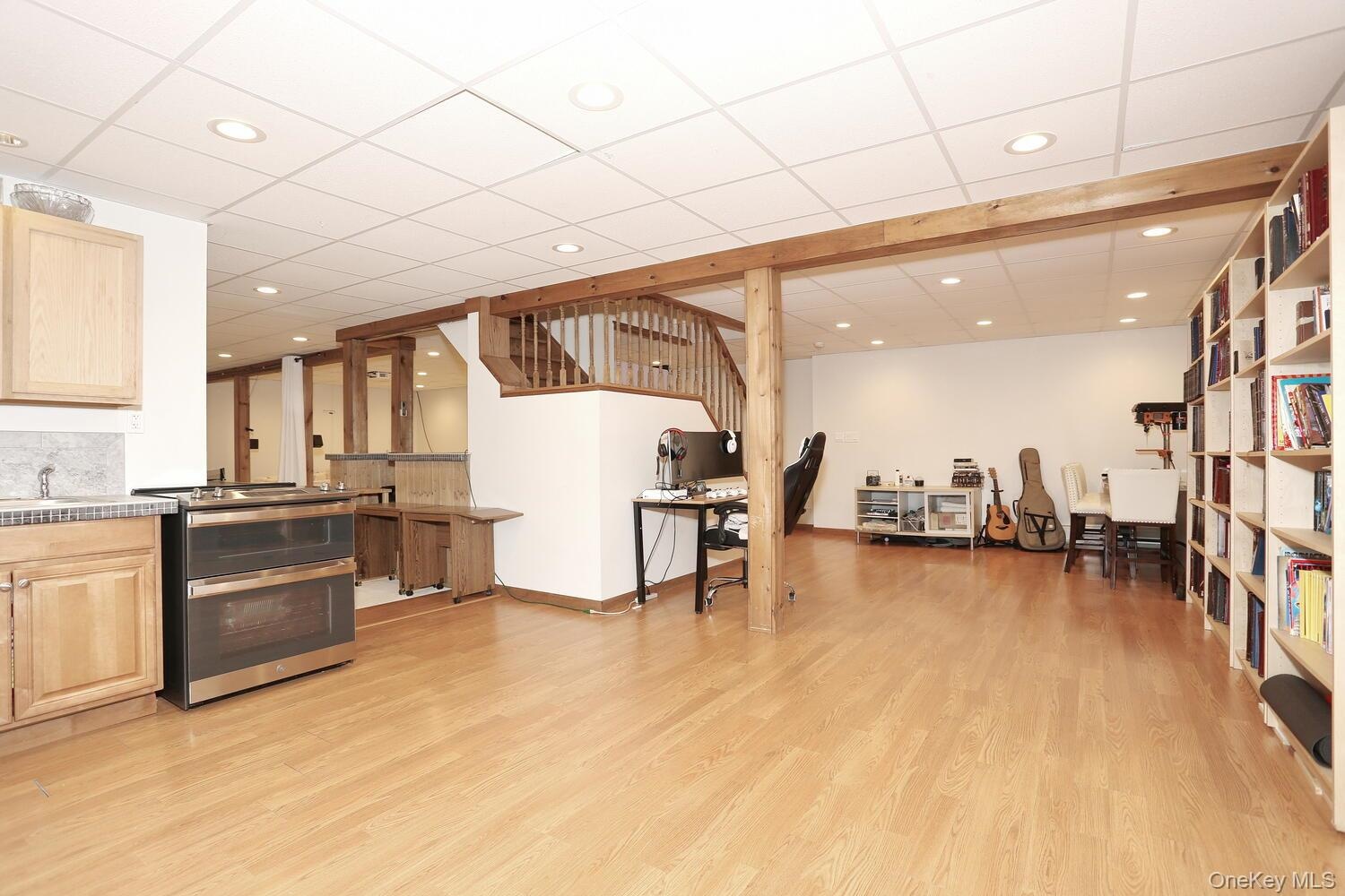 - Playroom featuring a drop ceiling and recessed lighting