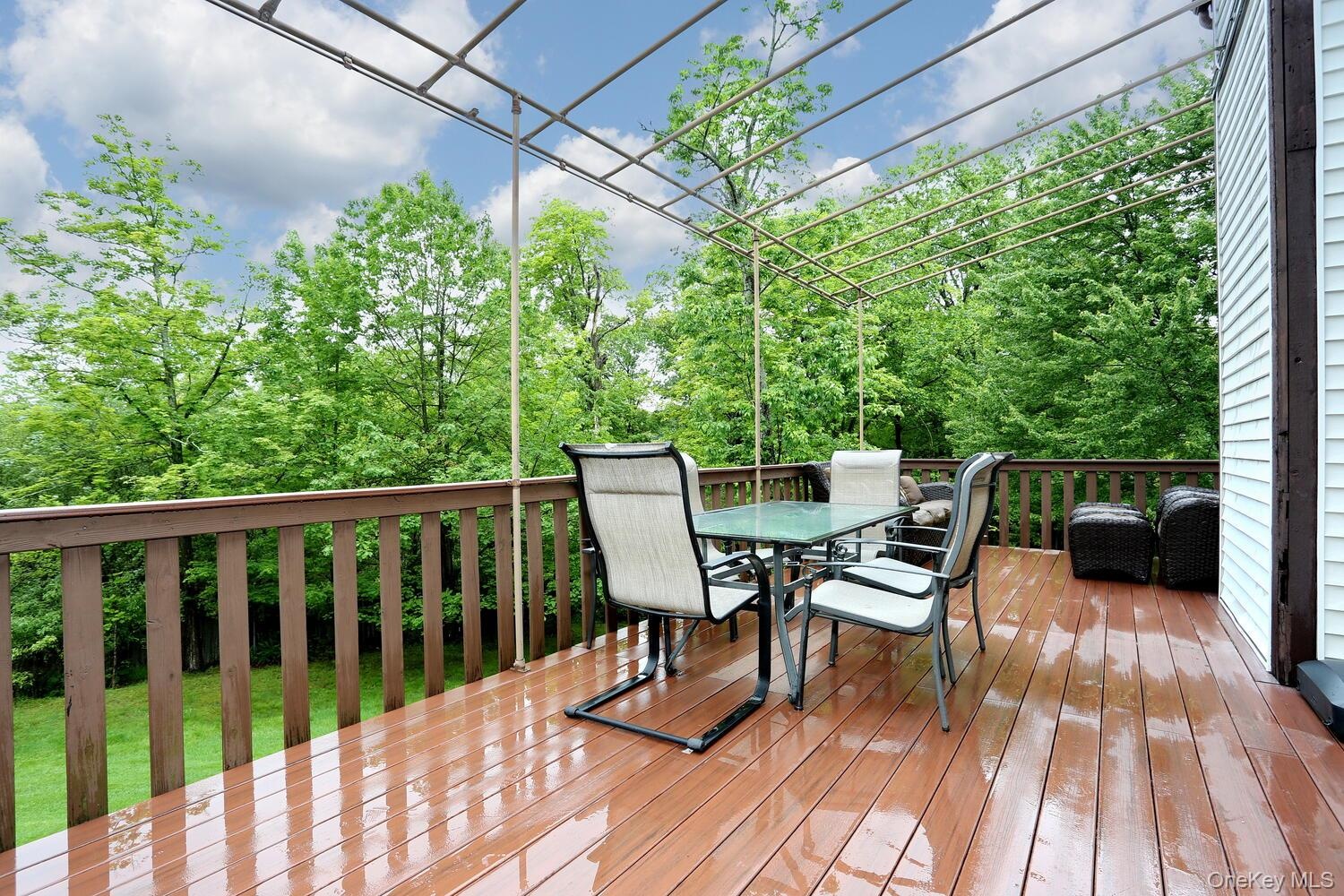 - Wooden terrace featuring outdoor dining space