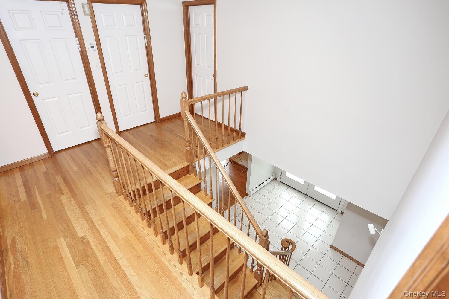- Stairs with wood finished floors and baseboard heating