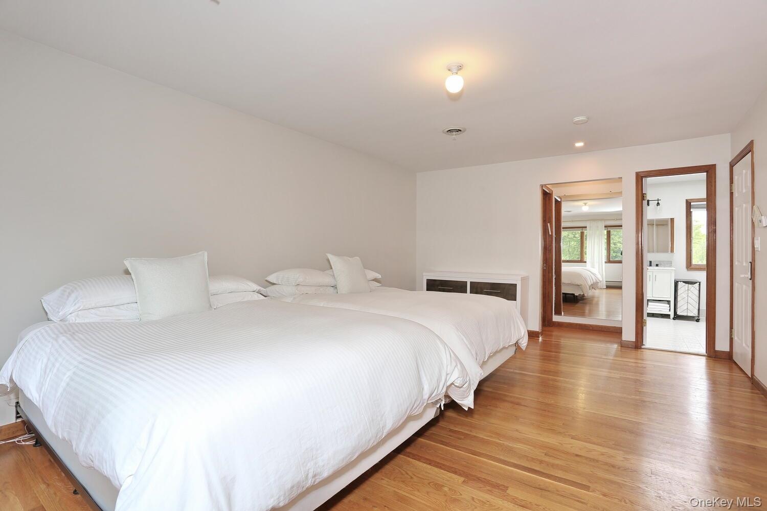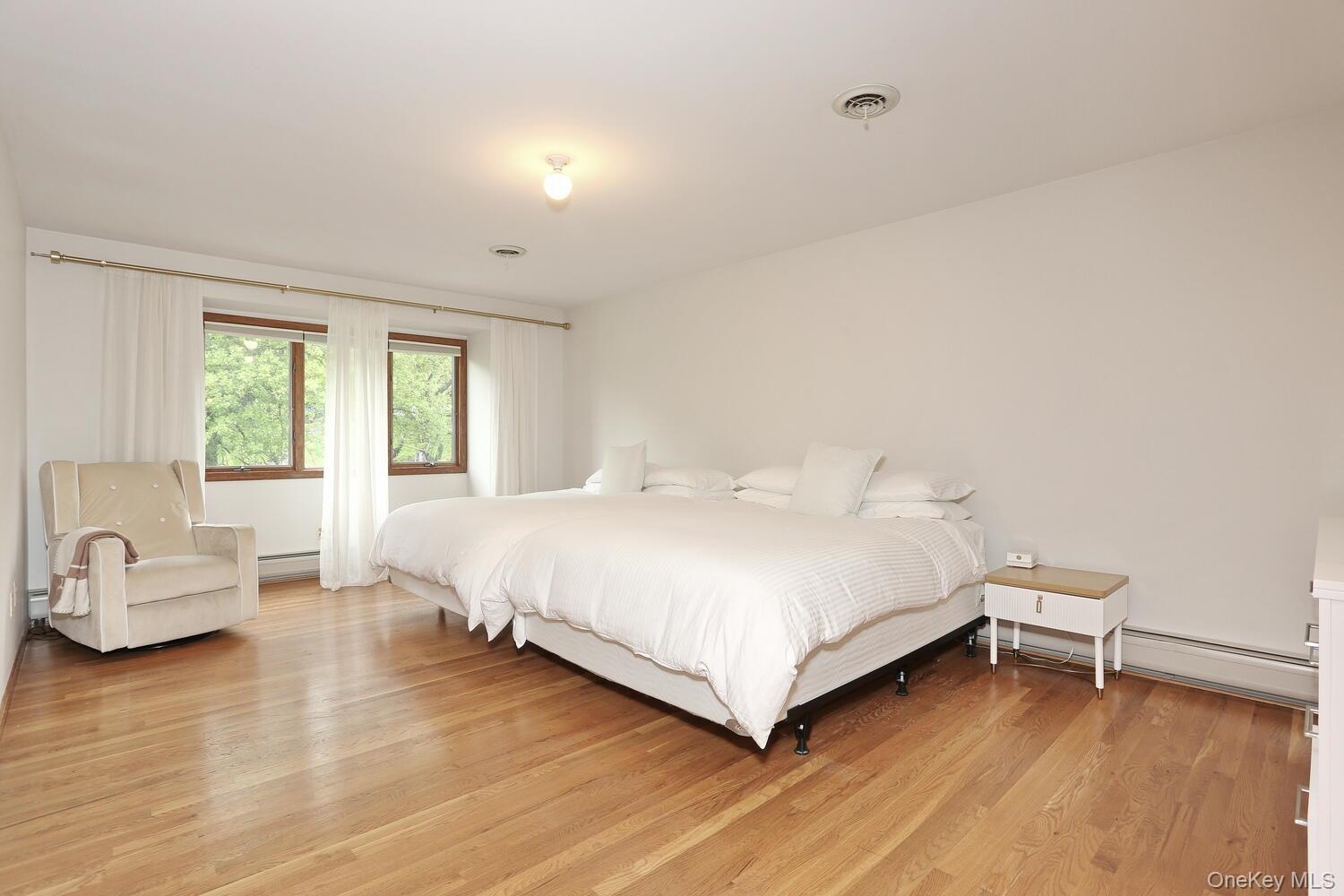 - Bedroom with light wood-style floors and baseboard heating