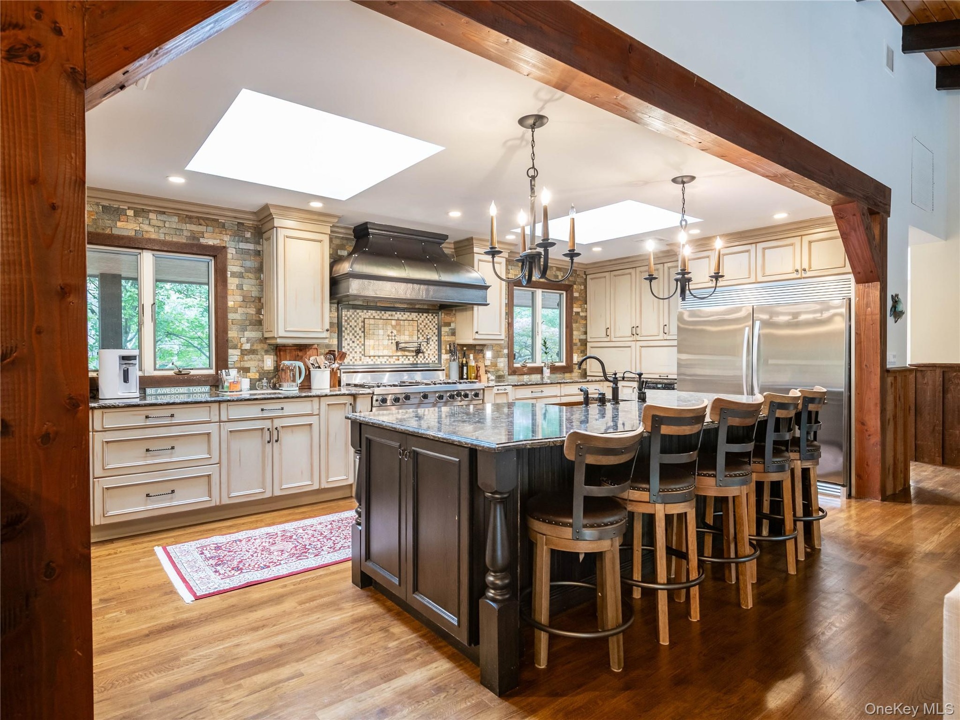 Experience luxury living in this expansive Farm Ranch, perfectly situated on more than two private acres. The open-concept floor plan showcases a beautifully designed chef’s eat-in kitchen with custom cabinetry and high-end finishes, flowing seamlessly into a magnificent great room featuring vaulted ceilings and a wood-burning fireplace.