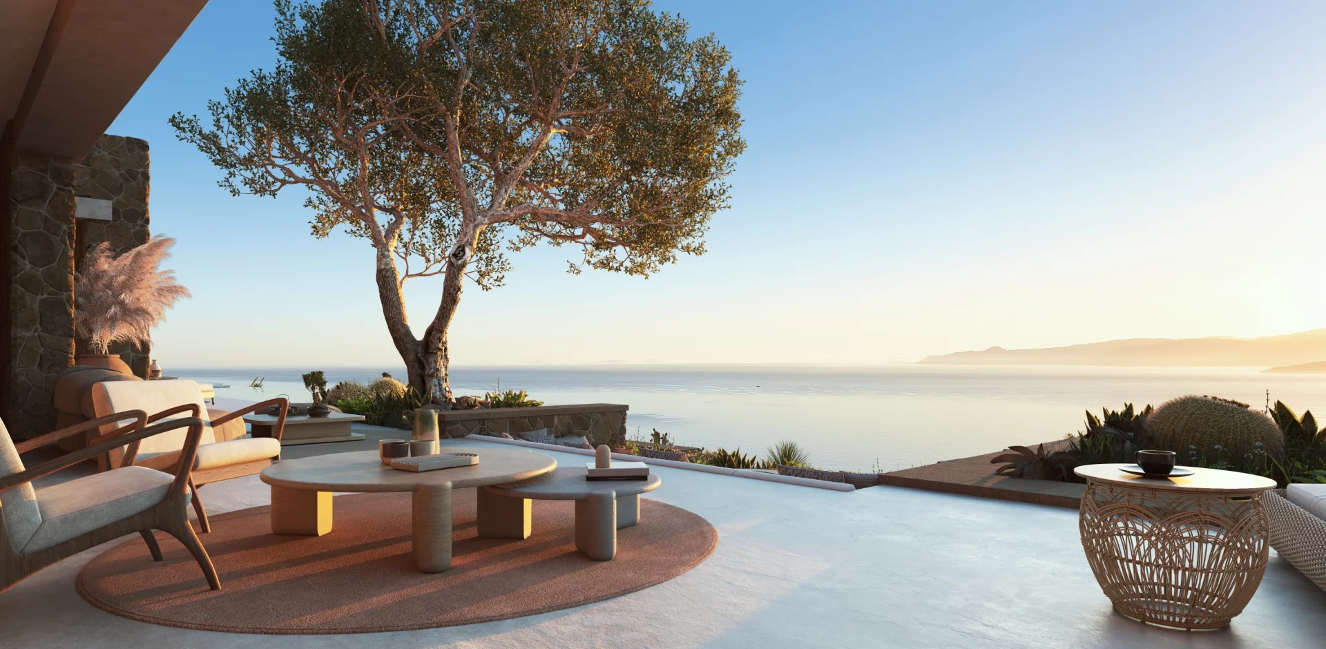 Biophilic Architecture: Designed to connect you with nature using organic materials, open spaces, and panoramic sea views.