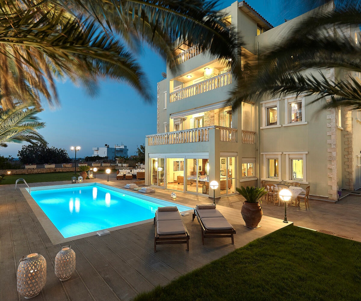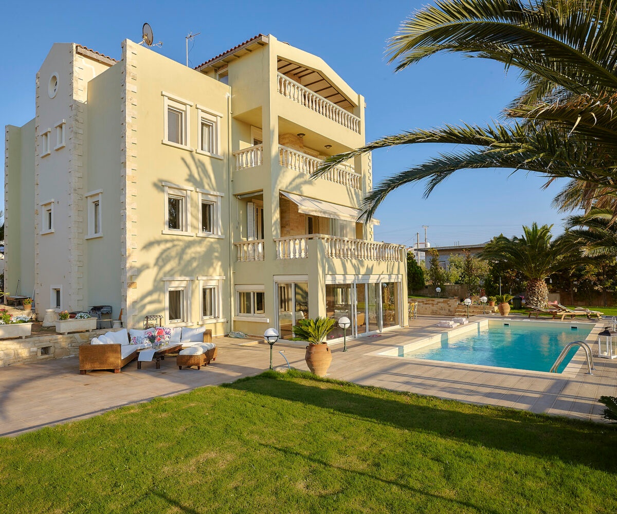 Nestled in the heart of the seaside village of Gournes, just 15 km east of Heraklion, Crete's main city, and only 12 minutes from Kazantzakis International Airport, this magnificent 520 sqm villa stands proudly on a 2,140 sqm plot within the settlement — offering the perfect blend of privacy, luxury, and convenience, moments away from some of Crete's finest beaches and resorts.