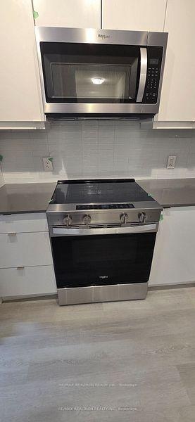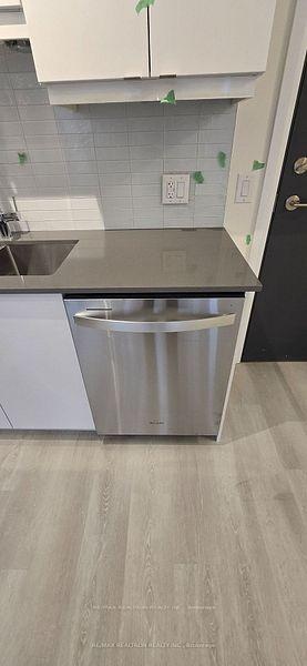Beautiful & Spacious Never-Lived-In 705 Sf + 30 Sf balcony unit offers a highly functional layout where the spacious den can easily serve as a second bedroom. The stylish L-shaped kitchen features tall, high-gloss designer cabinetry, full-size Whirlpool stainless steel appliances, quartz countertops, under-cabinet lighting, glass tile backsplash, and a double under-mount stainless steel sink - all combining elegance with functionality. Enjoy a sun-filled living and dining area with floor-to-ceiling windows and a walk-out to a private balcony. The 9-foot ceilings enhance the airy, open feel throughout. Locker and parking included. Move-in ready comfort with a contemporary touch!