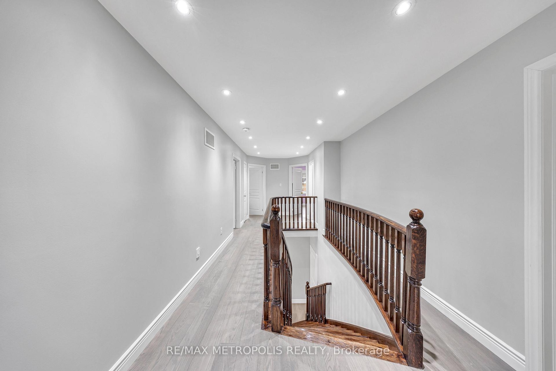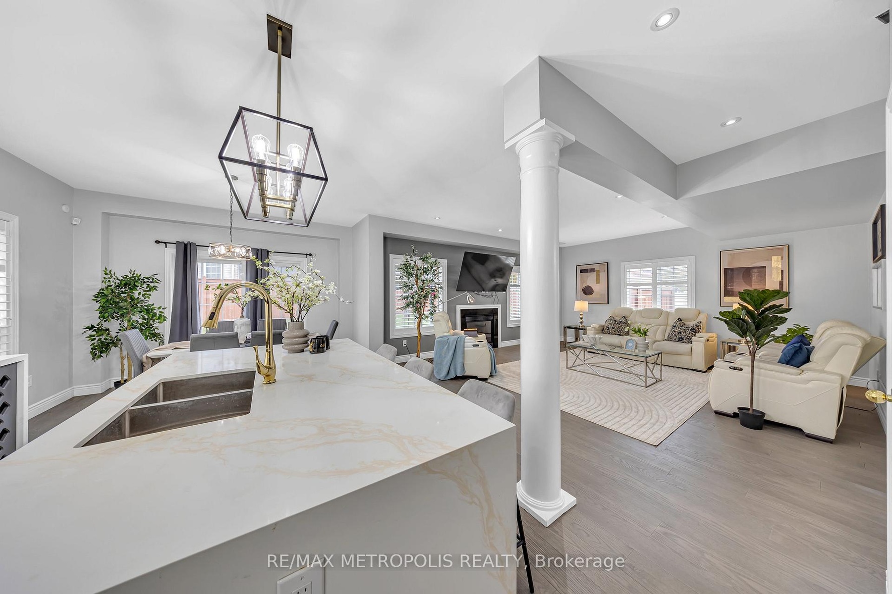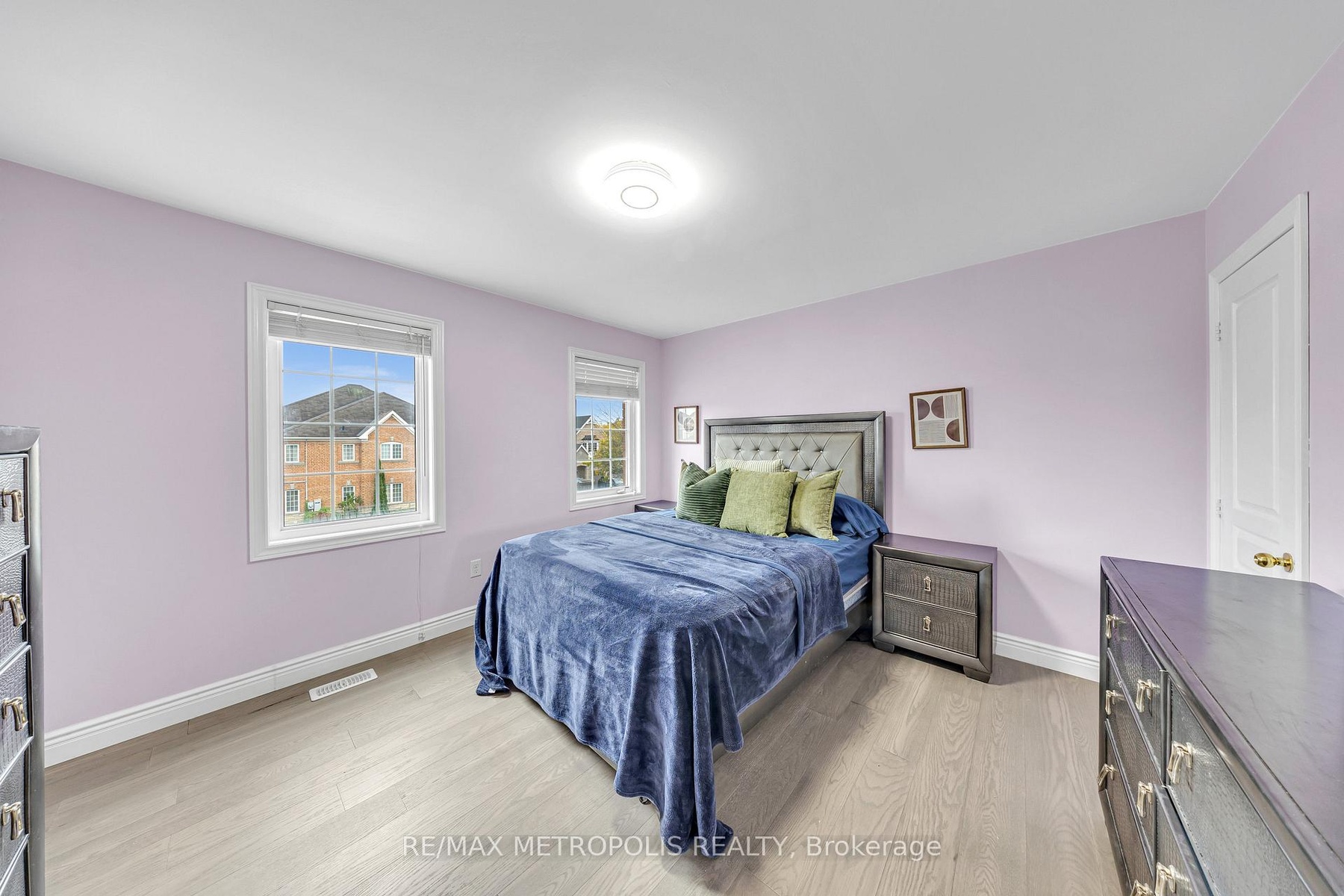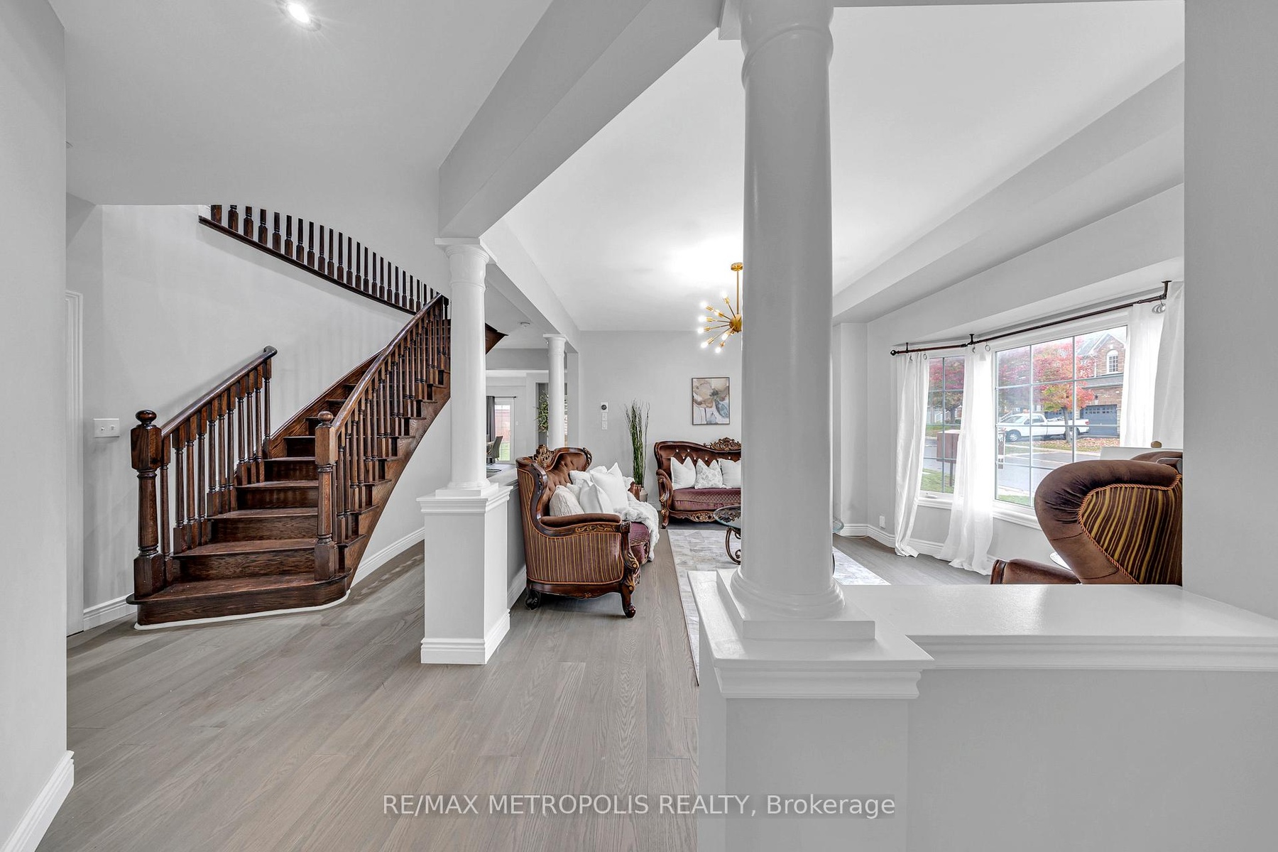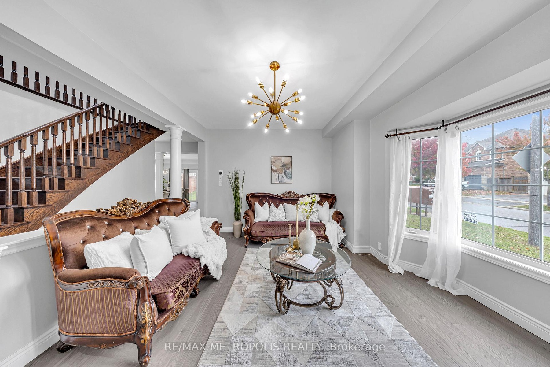 This beautifully upgraded home sits on a premium corner lot with no sidewalk, offering extra space, privacy, and outstanding curb appeal. Featuring a double car garage and parking for four additional cars on the driveway, this home perfectly blends style and functionality. Upgrades include a modern kitchen with a large island and stainless steel appliances, four renovated washrooms, engineered hardwood flooring, fresh paint throughout, pot lights on the second floor, and elegant light fixtures on the main level. The main floor offers a spacious family room ideal for gatherings, a bright living area, and a modern kitchen with ample cabinetry. An elegant chocolate oak staircase leads to the second level, featuring four spacious bedrooms plus an optional fifth bedroom or office, providing flexibility for growing families or remote work. The primary suite showcases a luxurious 5-piece ensuite and walk-in closet, while the second floor includes two additional full bathrooms for ultimate convenience.Enjoy outdoor living in the fenced backyard complete with a beautifully interlocked patio, perfect for entertaining family and friends. Additional highlights include central vacuum, garage access from inside, and a large unfinished basement offering endless potential to design your dream space.