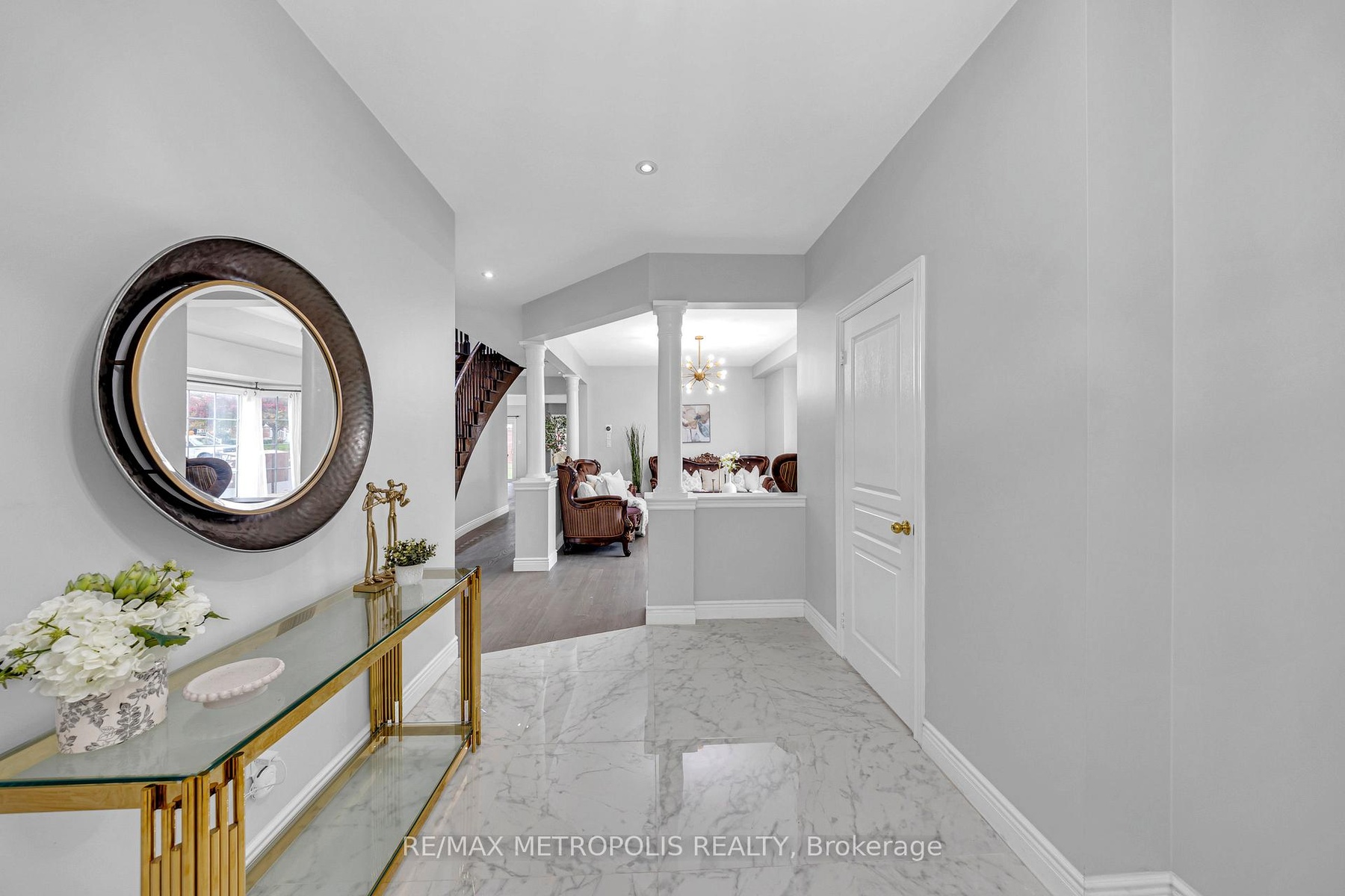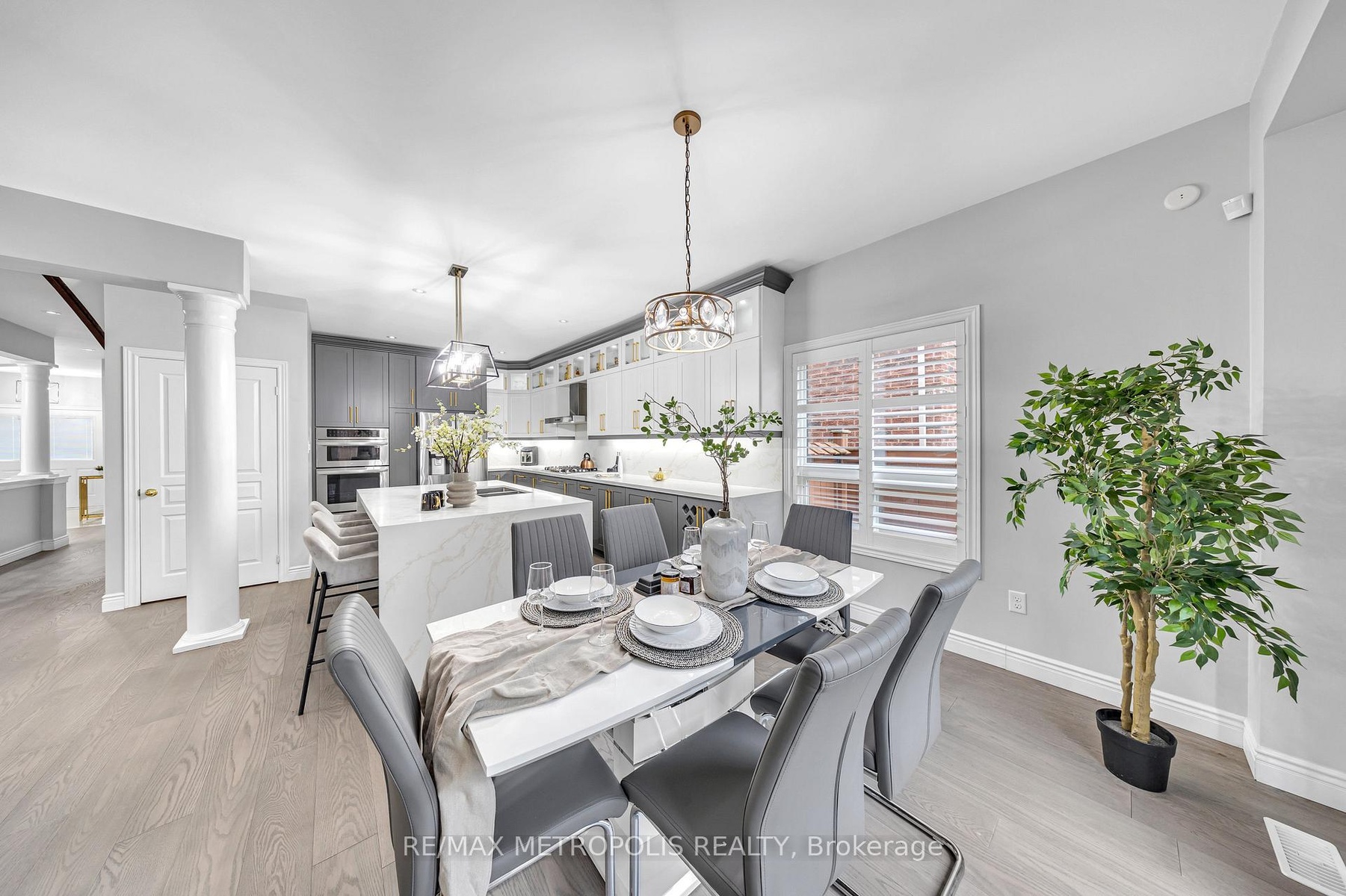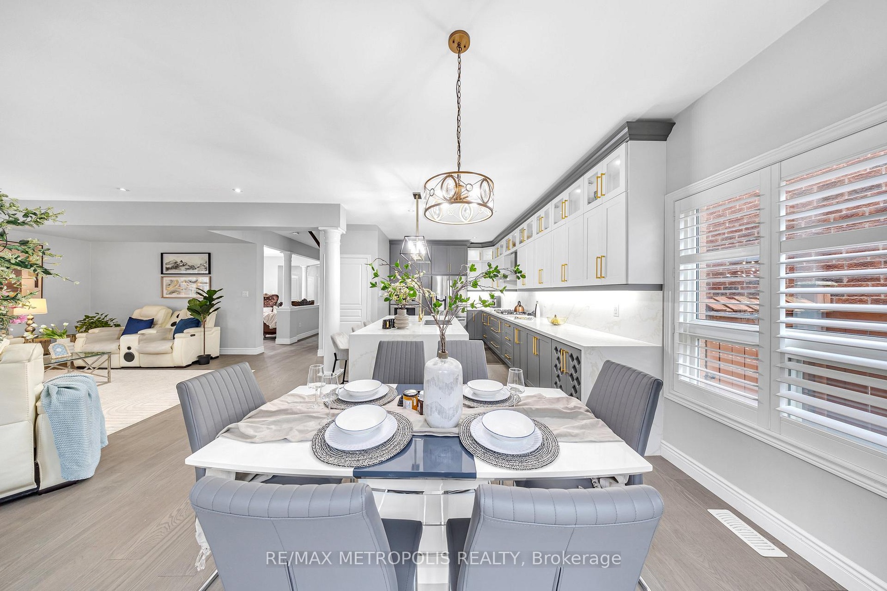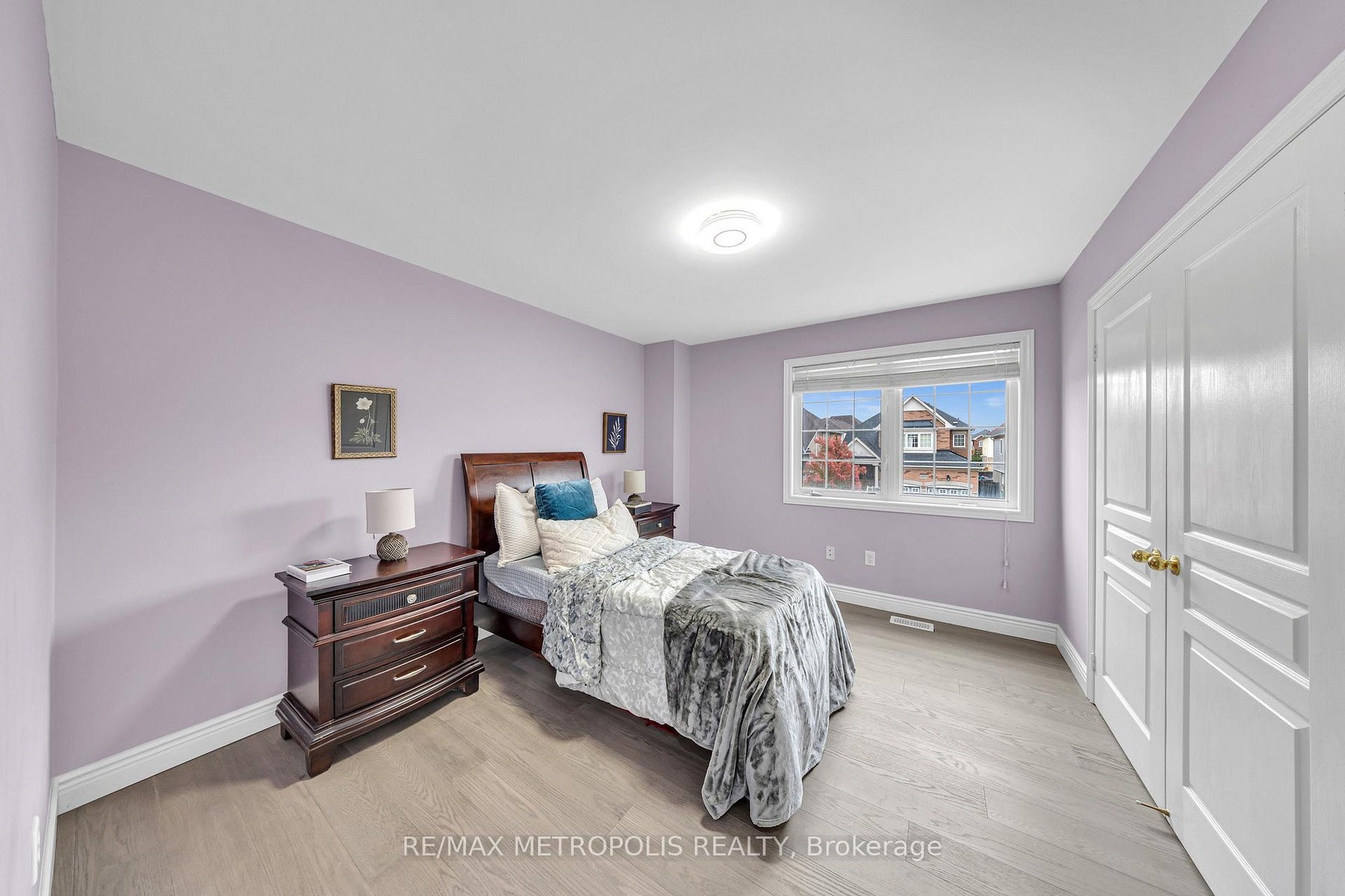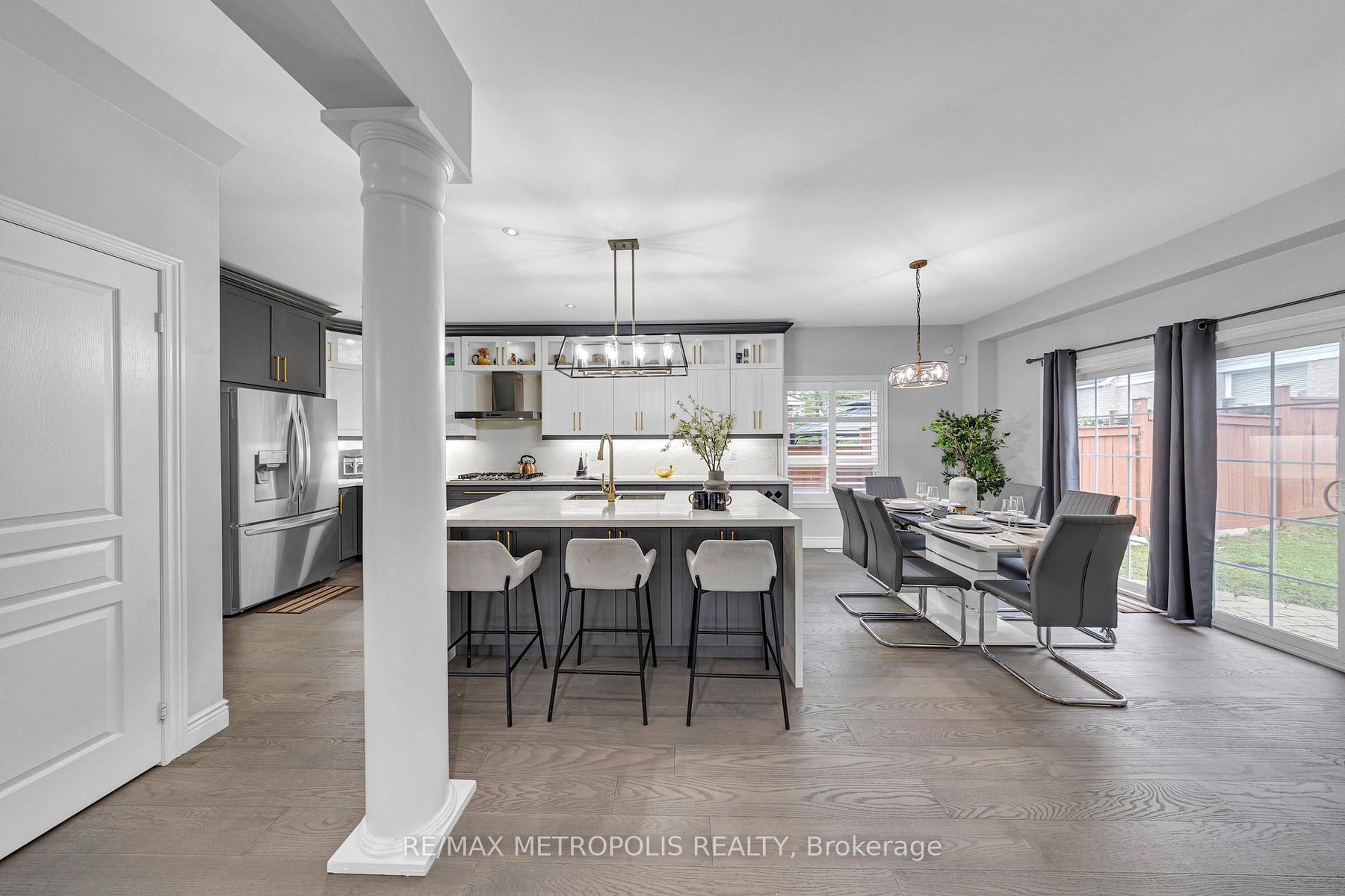 This beautifully upgraded home sits on a premium corner lot with no sidewalk, offering extra space, privacy, and outstanding curb appeal. Featuring a double car garage and parking for four additional cars on the driveway, this home perfectly blends style and functionality. Upgrades include a modern kitchen with a large island and stainless steel appliances, four renovated washrooms, engineered hardwood flooring, fresh paint throughout, pot lights on the second floor, and elegant light fixtures on the main level. The main floor offers a spacious family room ideal for gatherings, a bright living area, and a modern kitchen with ample cabinetry. An elegant chocolate oak staircase leads to the second level, featuring four spacious bedrooms plus an optional fifth bedroom or office, providing flexibility for growing families or remote work. The primary suite showcases a luxurious 5-piece ensuite and walk-in closet, while the second floor includes two additional full bathrooms for ultimate convenience.Enjoy outdoor living in the fenced backyard complete with a beautifully interlocked patio, perfect for entertaining family and friends. Additional highlights include central vacuum, garage access from inside, and a large unfinished basement offering endless potential to design your dream space.