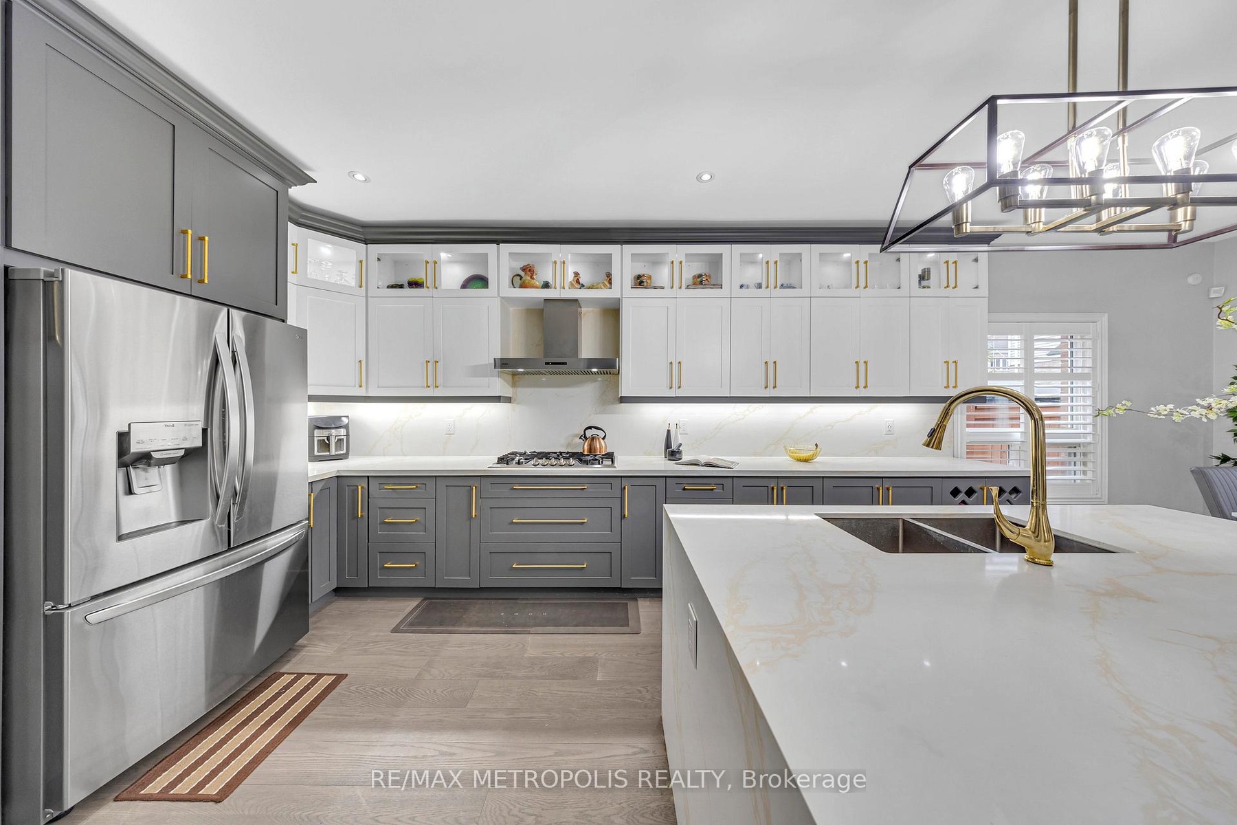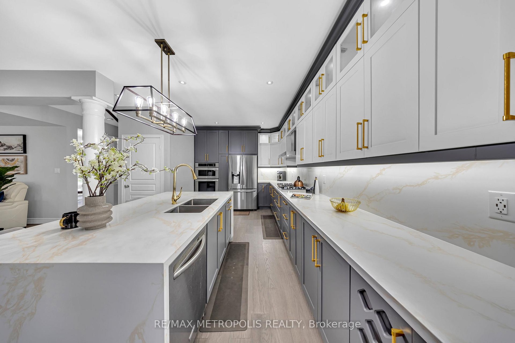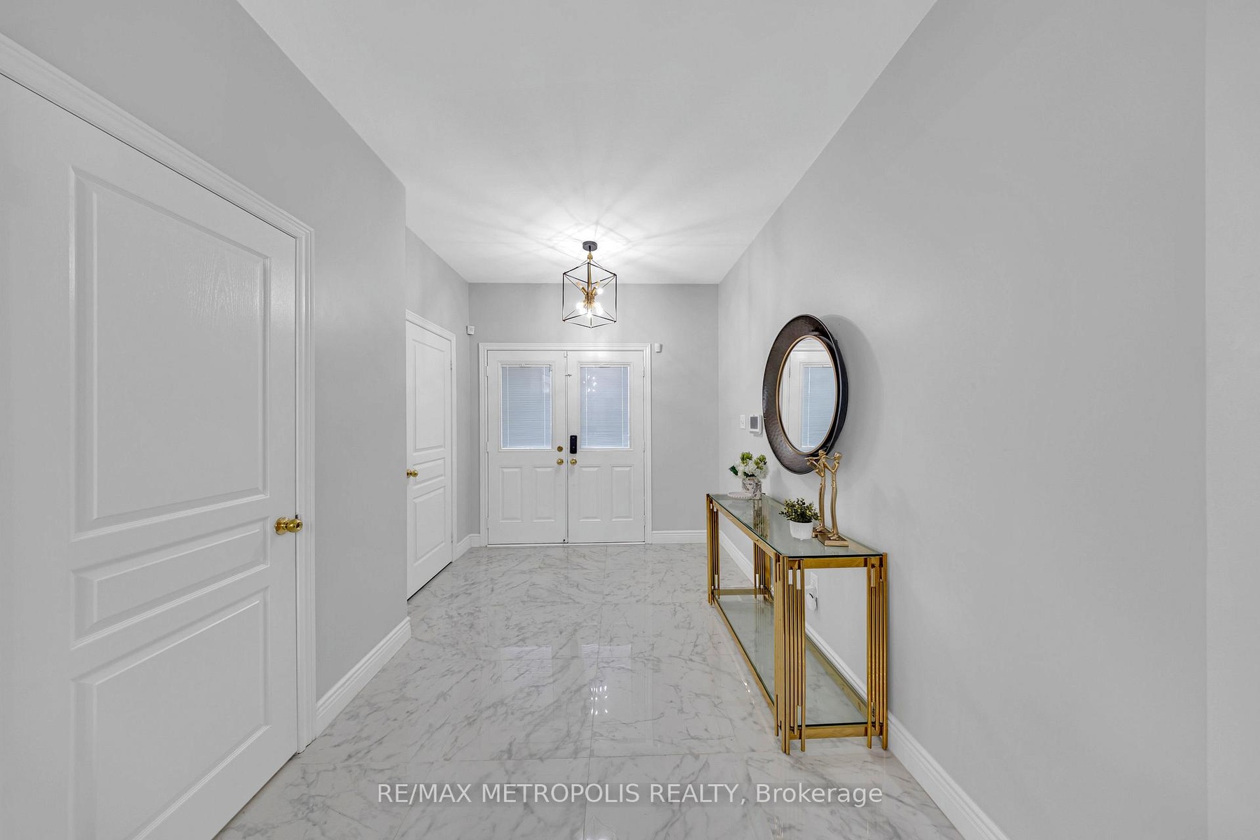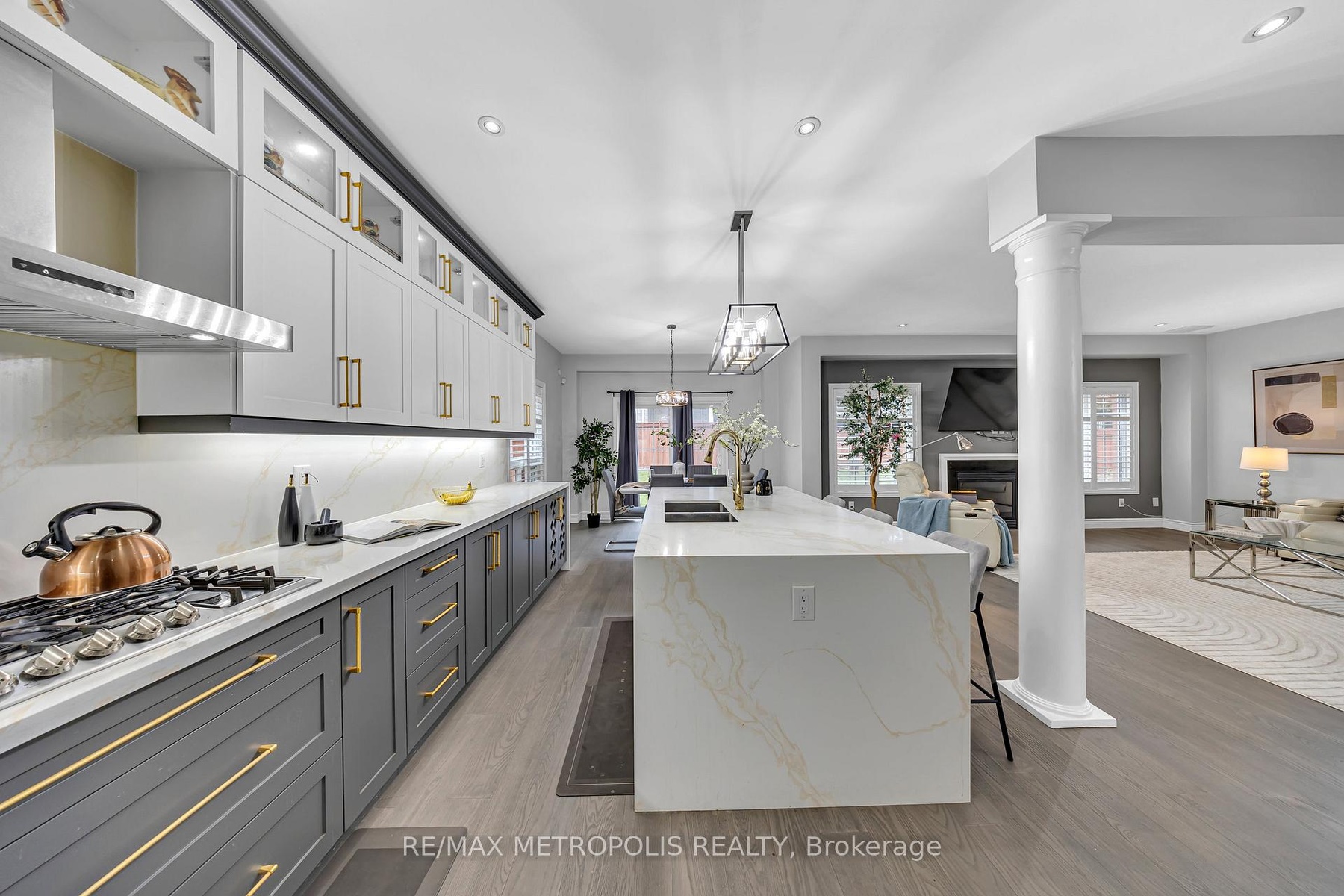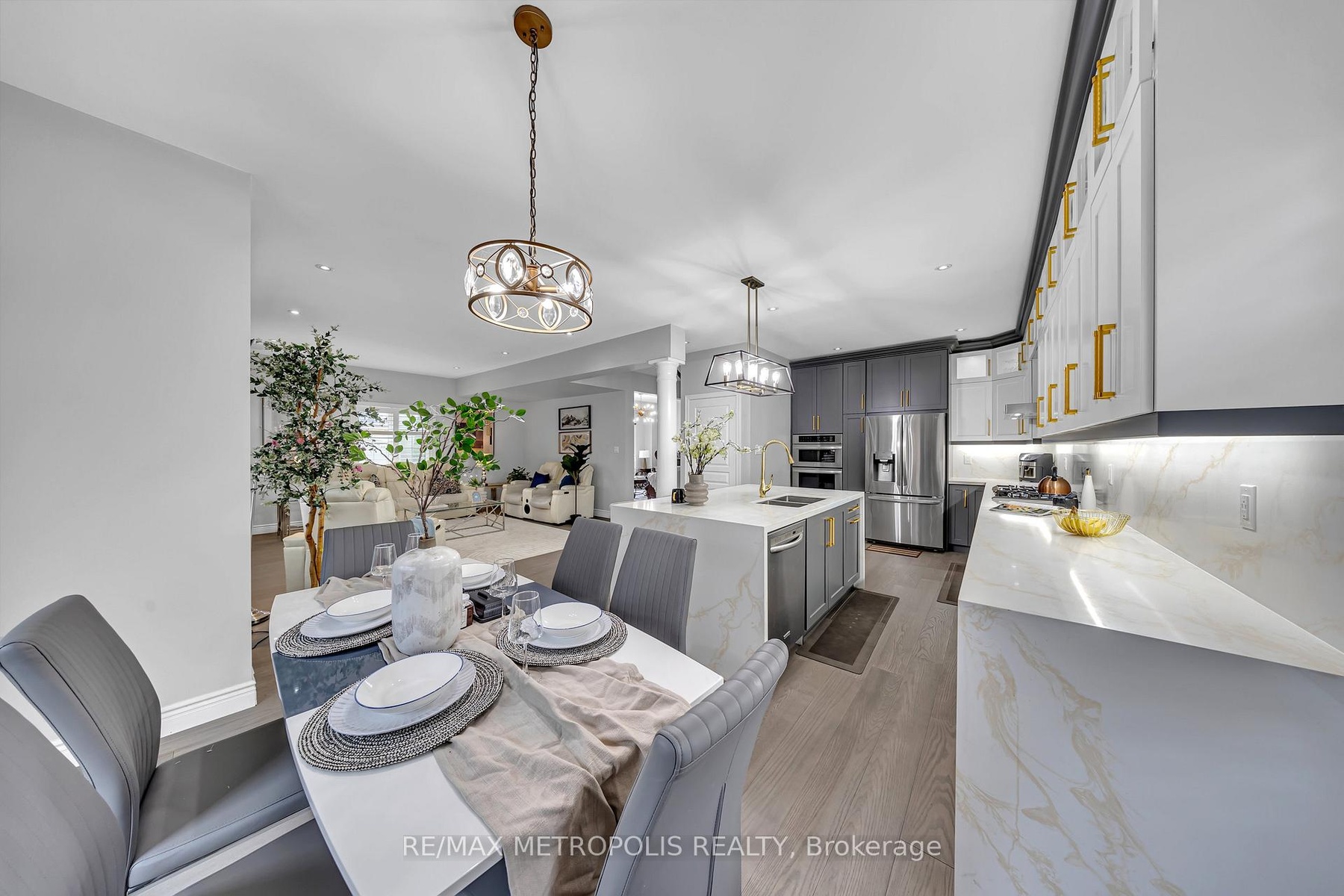 This beautifully upgraded home sits on a premium corner lot with no sidewalk, offering extra space, privacy, and outstanding curb appeal. Featuring a double car garage and parking for four additional cars on the driveway, this home perfectly blends style and functionality. Upgrades include a modern kitchen with a large island and stainless steel appliances, four renovated washrooms, engineered hardwood flooring, fresh paint throughout, pot lights on the second floor, and elegant light fixtures on the main level. The main floor offers a spacious family room ideal for gatherings, a bright living area, and a modern kitchen with ample cabinetry. An elegant chocolate oak staircase leads to the second level, featuring four spacious bedrooms plus an optional fifth bedroom or office, providing flexibility for growing families or remote work. The primary suite showcases a luxurious 5-piece ensuite and walk-in closet, while the second floor includes two additional full bathrooms for ultimate convenience.Enjoy outdoor living in the fenced backyard complete with a beautifully interlocked patio, perfect for entertaining family and friends. Additional highlights include central vacuum, garage access from inside, and a large unfinished basement offering endless potential to design your dream space.