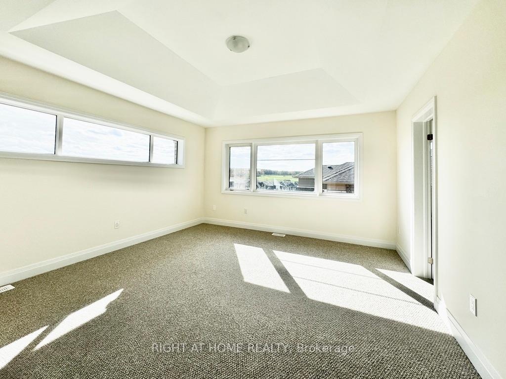 Welcome to this beautiful brand new home filled with natural light from its many windows and corner lot location. The main floor features a separate dining room, private office, and a spacious kitchen with stone countertops, stainless steel appliances, and a walkout to a raised deck, perfect for entertaining. A cozy gas fireplace adds warmth and charm to the main living area.Upstairs, enjoy brand new carpet in all bedrooms. The primary bedroom offers a large 5-piece ensuite, walk-in closet, and stunning sunset views over the golf course. The second bedroom includes a private ensuite, while the third and fourth bedrooms share a convenient Jack-and-Jill bathroom. The fourth bedroom also features a balcony overlooking a new park.Additional highlights include a two-car garage, parking for two more vehicles on the driveway, and a bright, open layout ideal for modern family living. Available immediately. Basement is not included.
