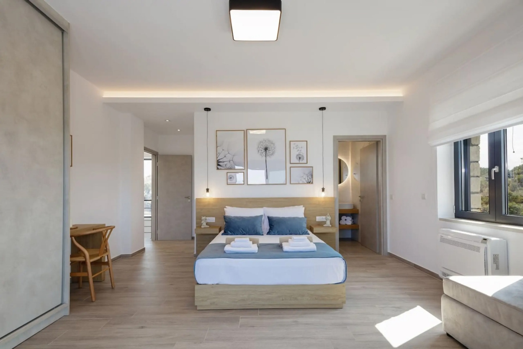 Multiple bedrooms and bathrooms, each with luxury touches and views that extend to the sea