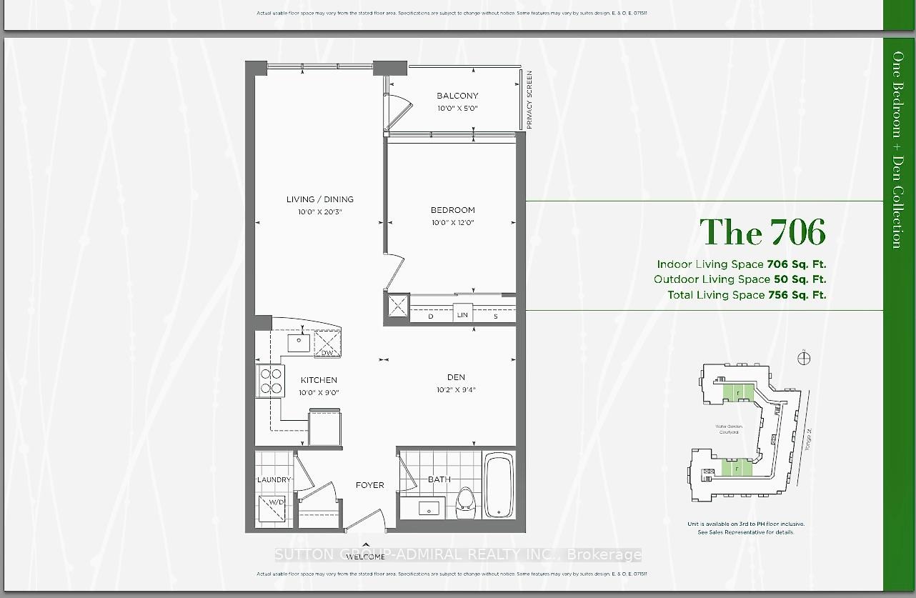 Welcome to Minto Watergarden, a luxurious boutique condo in the heart of Thornhill on Yonge Street, surrounded by prestigious multi-million-dollar homes. This stunning one-bedroom plus den suite redefines modern living with its seamless blend of indoor comfort and outdoor elegance.Boasting over 700 sq. ft. of interior space and a cozy 50 sq ft balcony . Enjoy 9-foot ceilings, laminate flooring and a modern kitchen with a centre island and breakfast bar. The spacious den can be easily converted to a bedroom or used as a perfect home office. The spacious primary bedroom features a full-length mirrored closet for a touch of sophistication. Additional highlights include an in-suite washer/dryer, 1 parking and 1 locker . Residents enjoy access to resort-style amenities: a two-storey fitness centre with cardio and free weights, aerobic studio, Wi-Fi cafe and library lounge, media room, board and dining rooms, party lounge with fireplace and bar, furnished guest suites, and a beautiful outdoor garden with BBQ patio and water features. Underground parking and visitor parking are included for added convenience. Perfectly located within walking distance to transit, restaurants, shops, and parks, with easy access to major highways and top-rated schools, this residence offers an exceptional balance of luxury, lifestyle, and location.