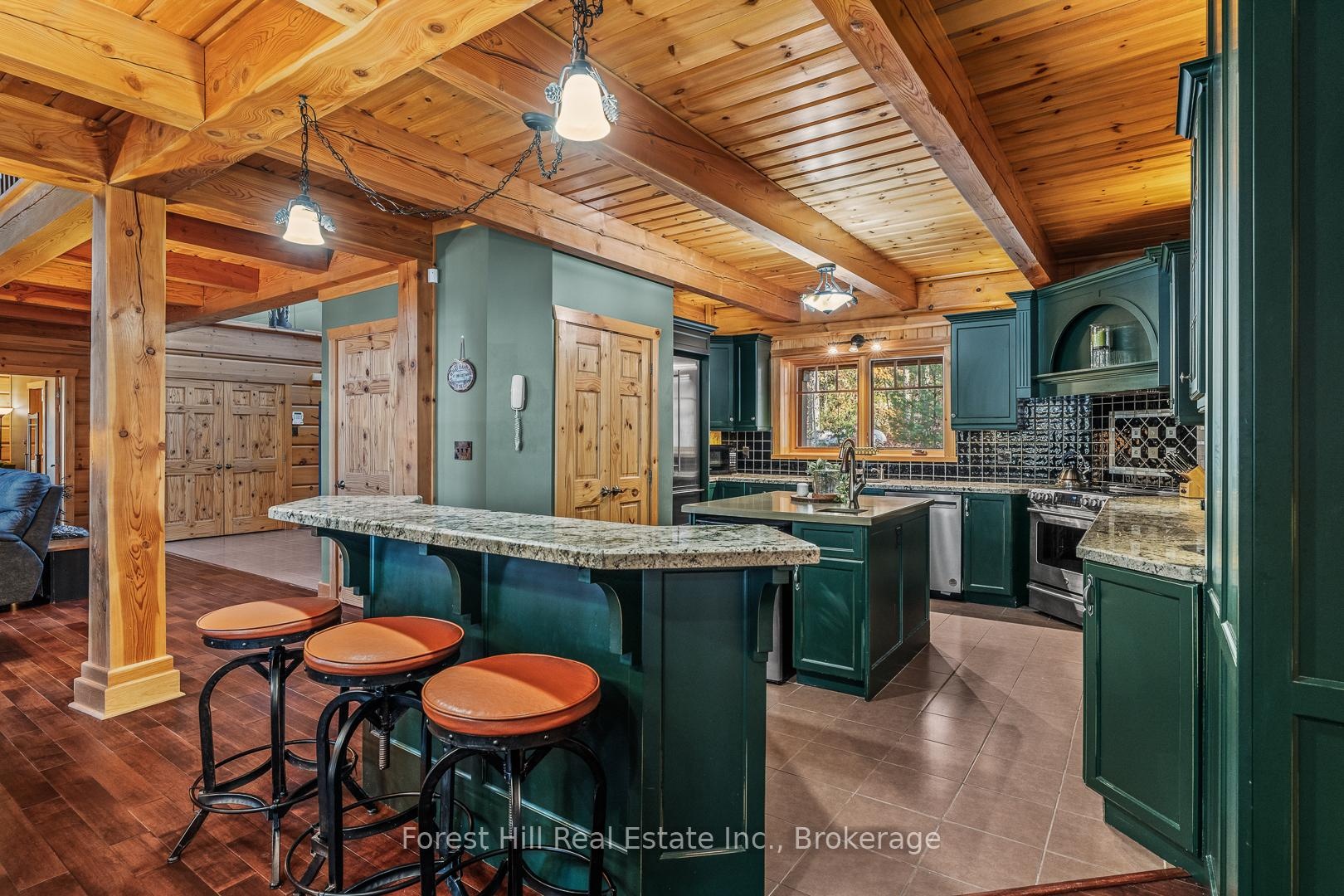 Impressively magnificent custom-built log home (True North - 4,560 sf ft) and over-sized, triple-car garage with a 2-bedroom guest loft on 8+ acres with 500+ feet of shoreline PRIVACY + 90' dock system! Pride of ownership, care and maintenance of the buildings and property are quite evident, as one explores this special listing on the south shore of Kawagama Lake, the largest lake in Haliburton with 240' of depth which supports lake trout & bass. This winterized log home is quite visually-striking with features that include its King Post designed entrance, lofted great room with a floor-to-ceiling granite stone fireplace, hardwood + pine flooring and pine accents throughout. The living area is an open concept and shared with a custom-designed kitchen and dining area with walkout to a screened-in gazebo area. The cottage has once slept 16 people and has 6-bedrooms and 4 bathrooms. The basement is finished with in-floor radiant heating and has a lakeside walkout on the ground level. Heated/covered breezeway from main dwelling to the garage/guest quarters. Drilled well, 2 septic systems (i.e. main cottage/home and for the guest area above the garage), geo-thermal heating & cooling system via lake water, backup generator, security system, high-speed internet, etc. The spacious primary bedroom is on the main floor and boasts a sunrise, soaking/jet~streamed Azzura tub, 5-piece bathroom, extra insulation in ceiling and wall for sound reduction and walk-in closet. Beautifully landscaped with granite rock stairs to the lake and a separate trail for an ATV or golf cart. Granite rock designed, outdoor fire pit, located under dark skies, bright stars and planets above. There is a vast network of trails on crown land nearby for hiking, ATVing, snowshoeing, snowmobiling and so much more! Convenient 4-season road access. This fantastic property is located just under 3 hours from Toronto. The SUNSETS and calls of loons, wolves and owls are FREE! Buy-in tennis crt option.