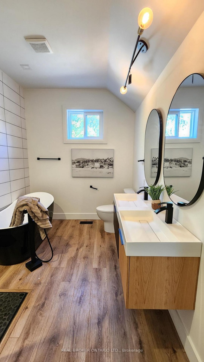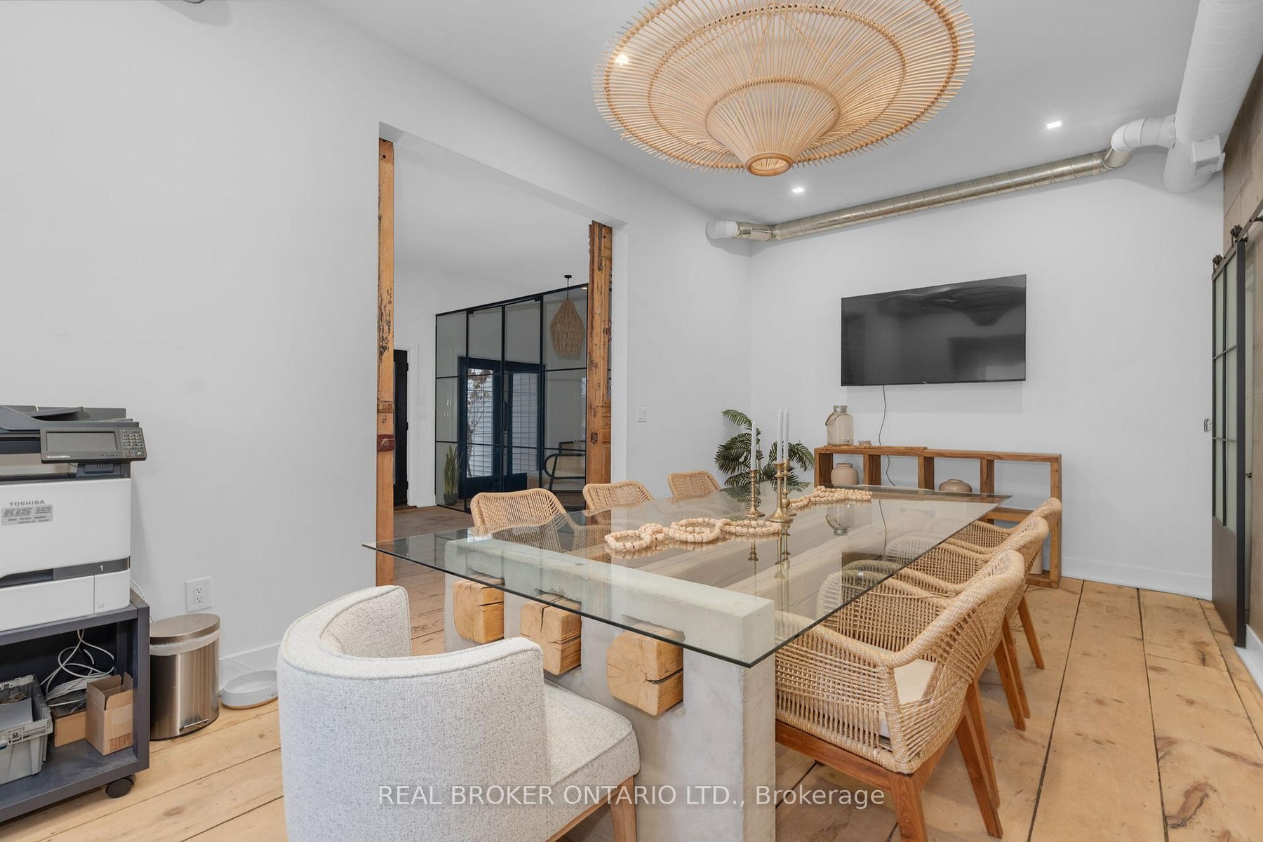 One-of-a-kind mixed property with retail/office space plus two completely separate apartments, each with their own main floor laundry. Located in the heart of quaint Cookstown just 5 minutes from the 400 HWY this property has had many successful businesses over the years. Fully gutted and renovated in 2021 and 2022 all 3 units offer different character to the space. The main commercial unit has huge wide plank wood flooring and a wrap-around covered porch. You enter through garden doors to a glassed in office space with 10-foot ceilings and to your right a ship lapped wall perfect for your businesss logo. Through the Egyptian antique doors to the huge board room with Balinese light fixture (and pot lights) and industrial style tile work. A small kitchenette area and 3-piece bathroom are also in this space as well as a huge storage area with garage door and back door for all of your storage needs. To the north of the storefront, you will find two additional doors. The closest door will take you to a one-bedroom apartment with soaring cathedral ceilings, with sleek modern kitchen and quartz waterfall Cambrian countertops. The bedroom has a massive walk-in closet which could also double as a gym or office space/nursery etc. as well as another closet. The 5-piece bathroom has a huge shower and stand-alone soaker tub with dual bathroom vanity. To the next door you will find an adorable one-bedroom apartment with barn doors, massive shower with floating vanity and main floor laundry. With tons of parking around back, a garage, as well as on the boulevard in front of the property your tenants or commercial visitors will never be at a loss for parking. Endless opportunities for this property. What business will you open up? Vacant building open to any closing date. Both apartments painted 2025. Ac 2024