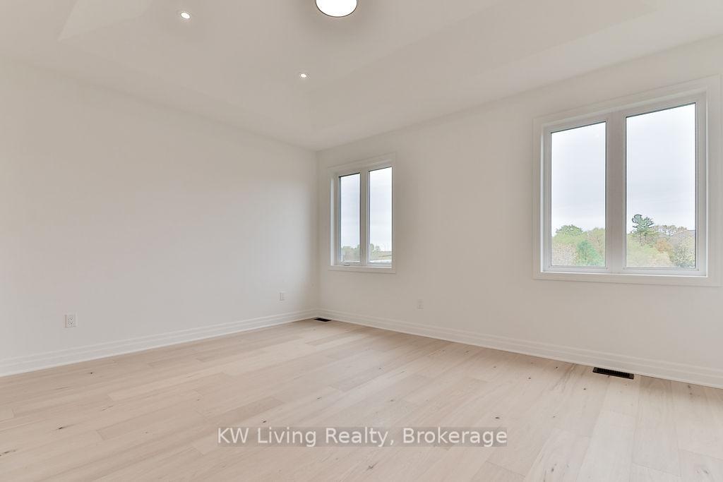 Experience modern living in this newly built luxury home, perfectly situated at the top of a quiet crescent in Markham's most sought-after development. Premium ravine lot backing onto beautiful greenspace with no neighbours to the immediate north or west, the home offers rare, peaceful natural views. With almost 2,500 sq. ft. of thoughtfully designed space, it features 9' ceilings on both the main and second floors, oversized windows, and an open-concept lay out that creates a bright and airy feel throughout. Premium upgrades enhance every corner of the home-including sleek metal railings, extensive pot lighting, upgraded hardwood and tile flooring, and elevated cabinetry, plumbing fixtures, and hardware. The kitchen is a modern showpiece with two-tone cabinetry, quartz surfaces, and refined gold-accented finishes. All bathrooms continue the same upscale aesthetic, featuring upgraded tilework, coordinated finishes, and spa-style fixtures, including a freestanding tub in the primary ensuite. With spacious bedrooms, a third ensuite bath offers flexibility for guest comfort or family privacy. This home offers a blend of contemporary design, natural surroundings, and luxury living in one of Markham's most desirable communities.