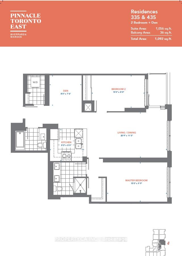 Spacious and stylish, this 2-bedroom + Den condo at Pinnacle Toronto East offers the perfect blend of comfort and convenience. Located at 3270 Sheppard Ave E #435, this 1,092 sq ft unit (1056 sqft living space and 36 sqft balcony) features a smart, functional layout ideal for families, professionals, or anyone needing extra space to work from home. The open-concept living/dining area (20'9" x 11'3") flows seamlessly into a modern kitchen equipped with full-size stainless steel appliances. The primary bedroom features a walk-in closet and private en-suite, while the second bedroom and enclosed den provide flexibility for guests, children, or a dedicated home office. Enjoy peaceful east-facing views from your private balcony. Additional conveniences include in-suite laundry, parking, and a locker. Residents have access to top-tier amenities: a 24-hour concierge, fitness centre, yoga room, outdoor pool and hot tub, party room, kids' play area, outdoor BBQ terrace, guest suites, and visitor parking. Located steps from TTC and just minutes to Hwy 401/404, Fairview Mall, grocery stores, parks, and schools, this home checks every box.Water and the Internet are included in the rent. Hydro is in addition to the rent.