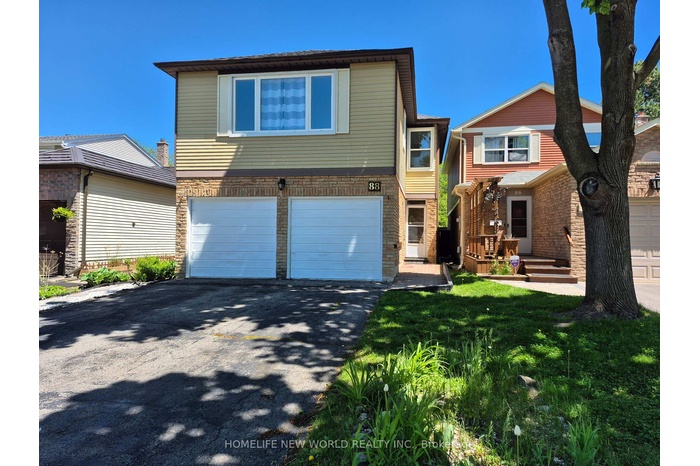 LUCKY NUMBER 88! GREAT LOCATION IN THE CENTER OF MARKHAM. ENJOY THE QUIET NEIBORHOOD OF MARKVILLE WITH EASY AND CONVENIENT ACCESS TO ALL AMENITIES. PERFECT FOR LIVING AND RAISING YOUR FAMILY OR RENT OUT TO OBTAIN INVESTMENT INCOME. TOP RANKED SCHOOLS INCLUDE MARKVILLE SECONDARY SCHOOL AND CENTRAL PARK PUBLIC SCHOOL. DOUBLE GARAGE AND LONG DRIVEWAY CAN PARK 6 CARS IN TOTAL. NO SIDE WALK! BEAUTIFUL BACKYARD AND SIDE YARD GARDENS. THIS PROPERTY BOASTS 3 SPACIOUS BEDROOMS AND TWO 4PC BATHROONS ON 2ND LEVEL. THE OVERSIZED 300 SQ FT PRIMARY BEDROOM HAS A LARGE WINDOW AND A SECONDARY WINDOW, A ROOMY AND SUNFILLED 4 PC ENSUITE BATHROOM, AND A GOOD SIZED WALK-IN CLOSET. THE IN-LAW SUITE IN THE BASEMENT FEATURES A BIG BEDROOM, 3PC BATHROOM, A MINI KITCHEN AND AN EATING AREA. THIS PROPERTY HAS A LOT OF UPGRADES INCLUDING: UPGRADED KITCHEN CABINETS OCT 2025, PROFESSIONAL PAINT MAY 2025, QURTZ COUNTERTOP APRIL 2025, NEW VINYL FLOOR IN KITCHEN MAY 2025, NEW LAMINATE FLOOR IN LIVING AND DINGING MAY 2025, NEW PATIO DOOR APRIL 2025, NEW DOORS FOR ALL 3 BEDROOMS ON 2ND LEVEL AND GARAGE SIDE ENTRANCE MAY 2025, LAMINATE FLOOR ON 2ND LEVEL INCLUDING ALL 3 BEDROOMS AND HALLWAY AUG 2022, HARDWOOD STAIRCASE AUG 2022, HIGH EFFICIENCY FURNACE OCT 2019, ROOF NOV 2018, FENCE MAY 2016, AND SO MUCH MORE. WALK TO MARKVILLE MALL, CENTENNIAL PARK AND COMMUNITY CENTRE, CLOSE TO HWY 407, BUS ROUTES, BANKS, CENTENNIAL GO STATION, RESTAURANTS, GROCERY, MAIN ST UNIONVILLE, BIG RETAILERS AND MORE.