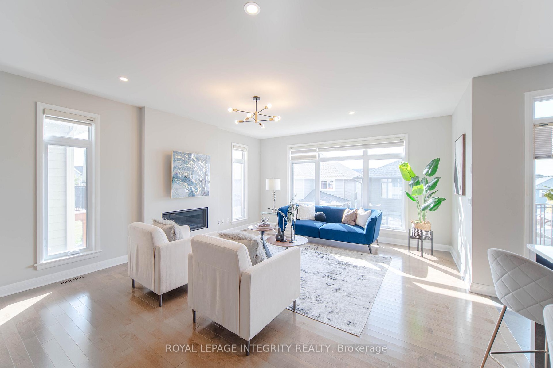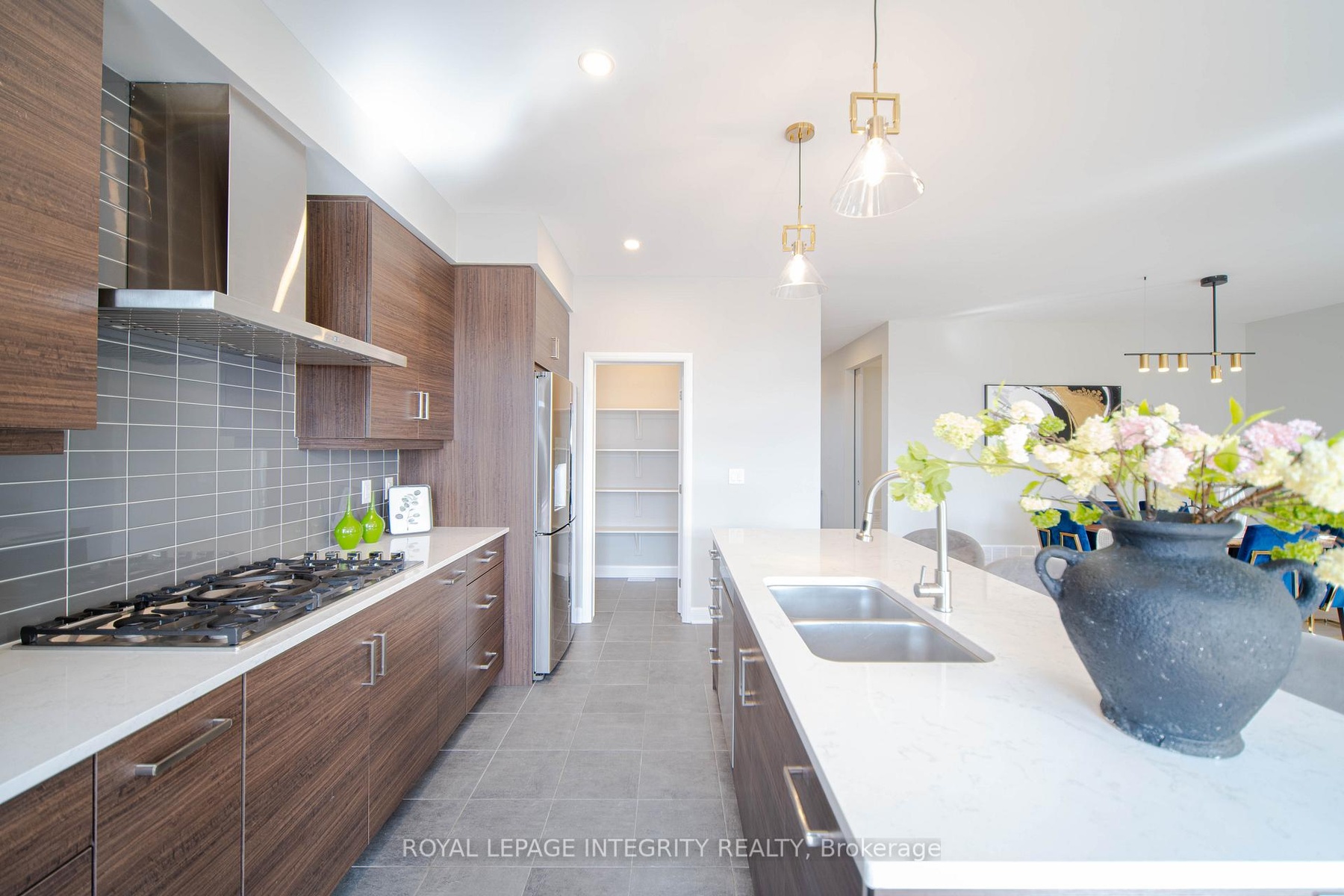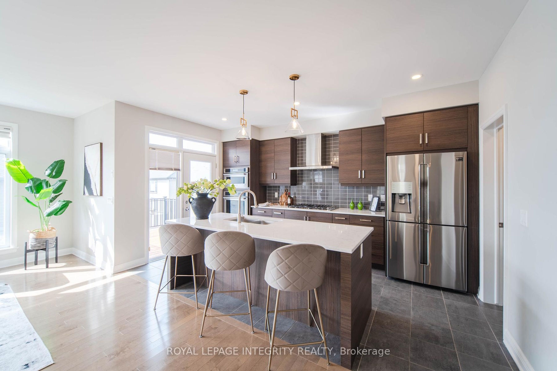 Detached home in Richardson Ridge built in 2019 by Uniform. WALK-OUT BASEMENT! TWO ENSUITES! Situated on a fan-shaped lot with a backyard measuring 43.88 ft wide, this home combines modern design with functional living. Enjoy a welcoming front porch, a bright and spacious tiled foyer, and a mudroom with a walk-in closet and powder room. The main level features 9' smooth ceilings, natural oak hardwood floors, quartz countertops, and abundant pot lights throughout. A main-level den is ideal for professionals working from home. The open-concept living and dining area includes a gas fireplace, TV wall mount, and a large southwest-facing window overlooking the backyard. The modern kitchen offers a large island, tile backsplash, walk-in pantry, undermount stainless steel double sink, and premium stainless steel appliances. Smart cabinetry with seasoning racks and a hidden trash bin ensures a clean, functional space. The patio door opens to the deck. Upstairs boasts four spacious bedrooms, including a primary suite with a coffered ceiling, walk-in closet, and luxurious 5-piece ensuite. An upgraded floor plan adds a second bedroom with its own ensuite plus a shared 3-piece bath with direct access from another bedroom. The walk-out basement includes a 3-piece rough-in, ready for future customization. Located within top school boundaries and close to shopping, parks, and transit - this home offers luxury, functionality, and convenience all in one.