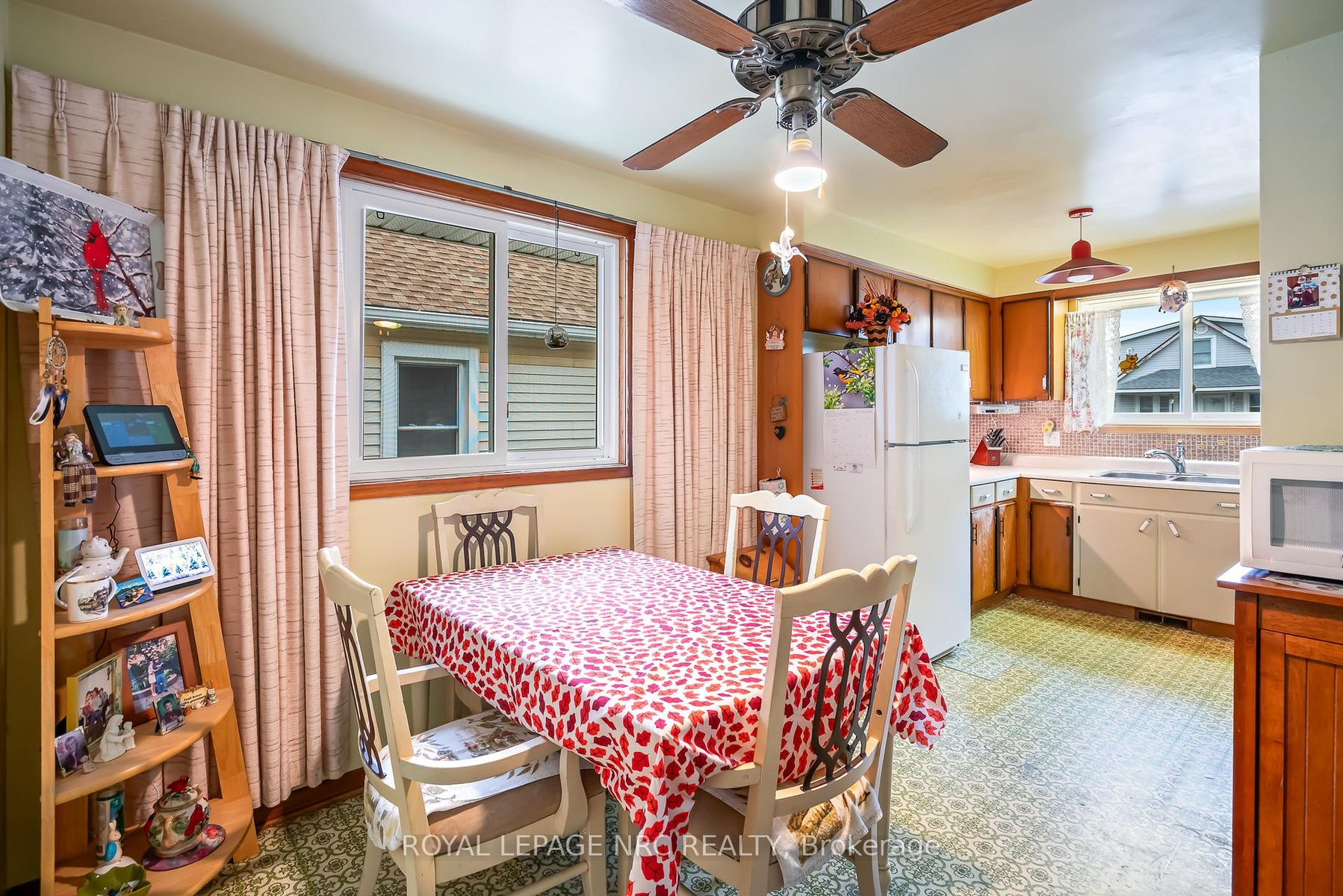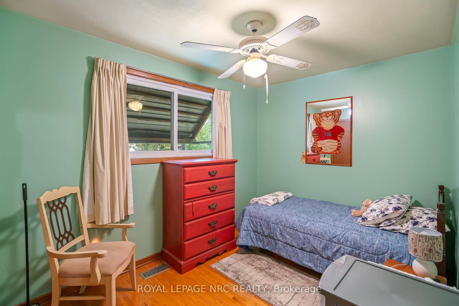 This solid original owner home is ready for a new owner seeking a small village location with easy access for Niagara's 3 largest cities. The friendly cul-de-sac location is your ideal destination for starting out or down-sizing for affordable living. The traditional floor plan includes an east facing livingroom for morning sunrises, open kitchen/dining area, 3 bedrooms, original hardwood floors & updated bathroom. The basement is divided into a large open area with laundry/utility set at one end, recroom, the 4th bedroom PLUS a rough-in for future bathroom. The side entrance provides potential for a basement inlaw set up. The detached garage with hdyro is an ideal workshop hobbiest location. This home features newer siding (with insulation added), low maintenance vinyl windows, entry doors, shingles & poured concrete driveway/front walkway '24.