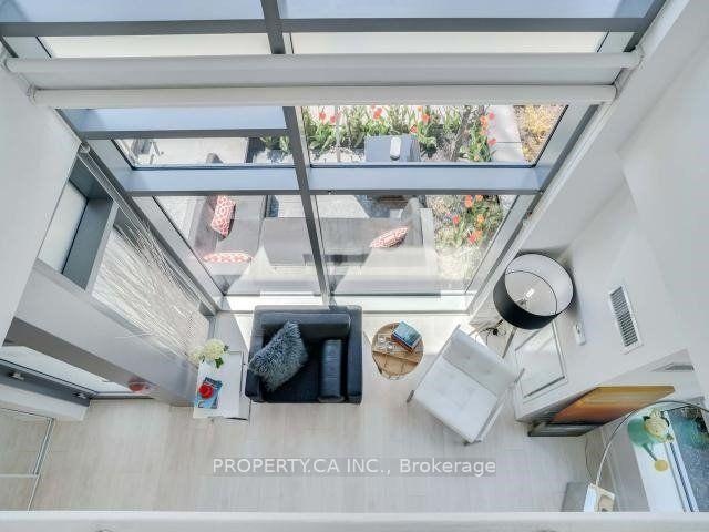 Stunning Modern 2-Storey Corner Loft Style Condo with 2 Parking Spaces, Locker, Terrace & Steps from the Waterfront. This sun-filled,architecturally striking corner loft feels like a walk-up townhouse, spanning two stylish levels in one of Torontos most vibrant waterfrontcommunities. Soaring 20-ft ceilings and expansive windows flood the space with natural light, creating an open and elevated atmosphere. Enjoya rare, dual access suite with private street-level entry after taking a short stroll down along the Lake Ontario Waterfront Trail as well as interioraccess through the building. Step out to your private terrace, perfect for enjoying warm summer evenings after enjoying the waterfront, withsweeping skyline views of Toronto just steps away. This suite includes two parking spots and a locker, along with access to exceptionalamenities, including a 24-hour concierge, a fully equipped exercise room, an indoor pool, and a rooftop deck and garden. All of this is ideallylocated just moments from transit, highways, great restaurants, shops, and fantastic trails along the scenic waterfront.
