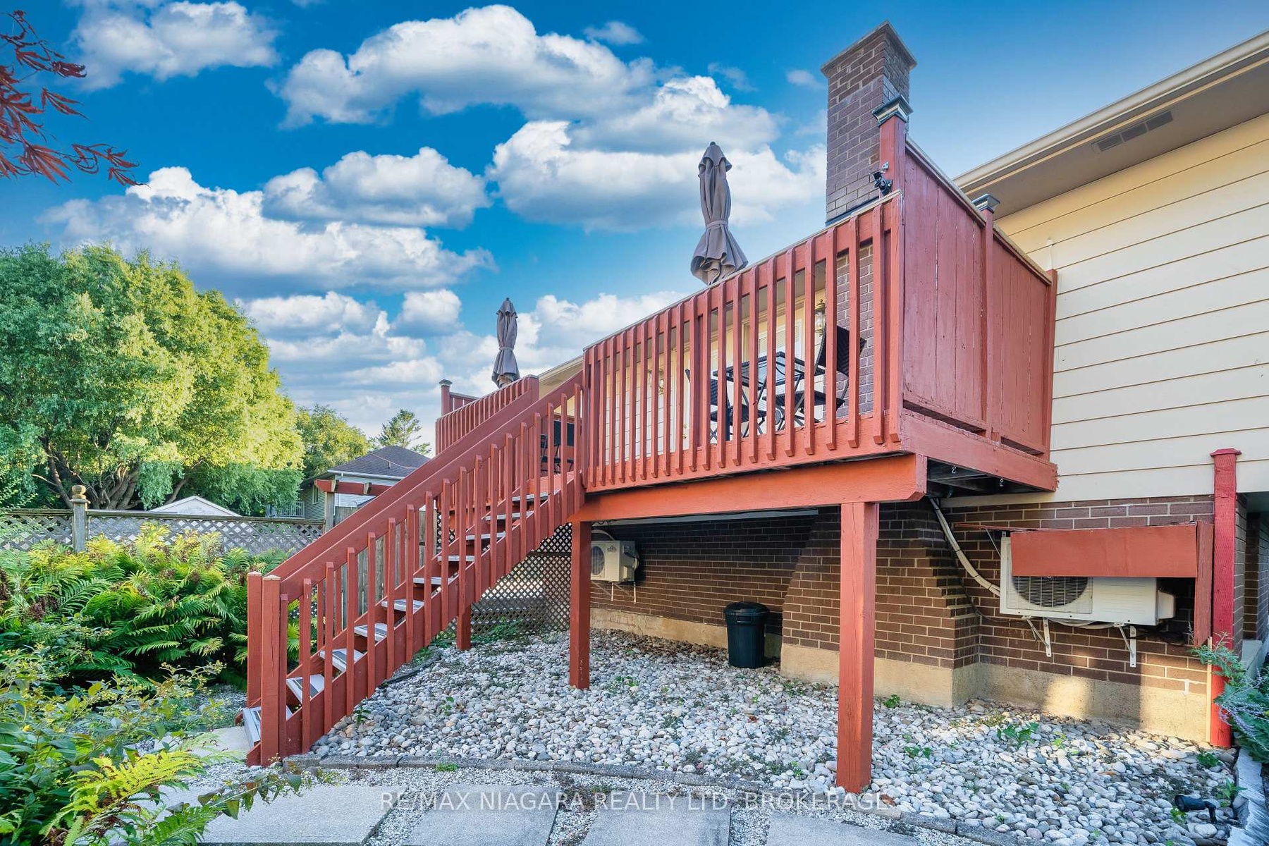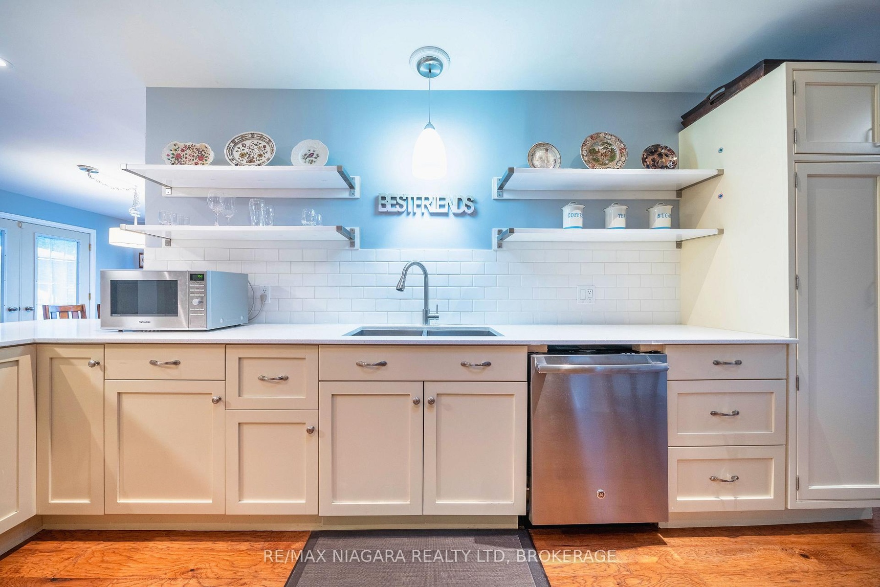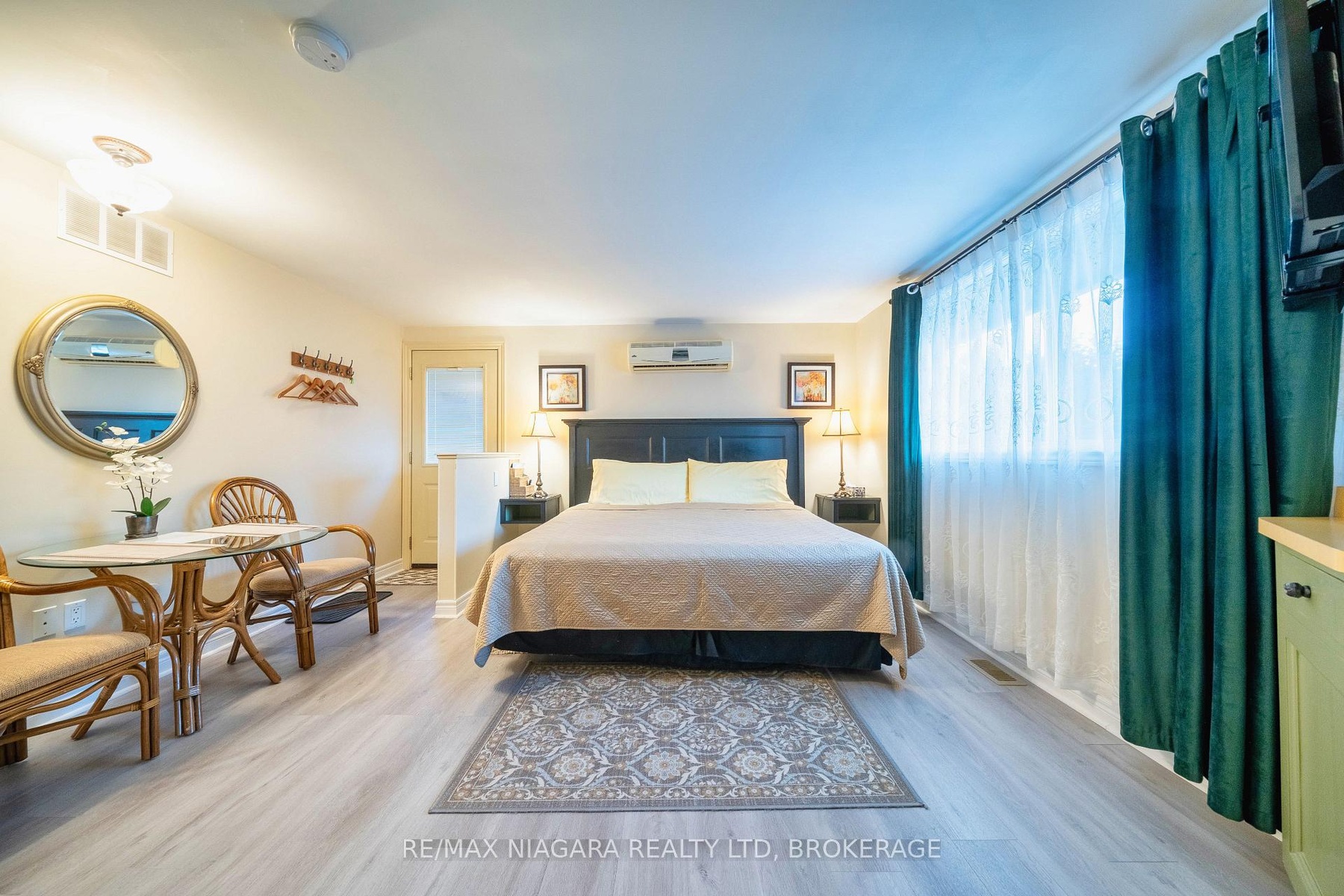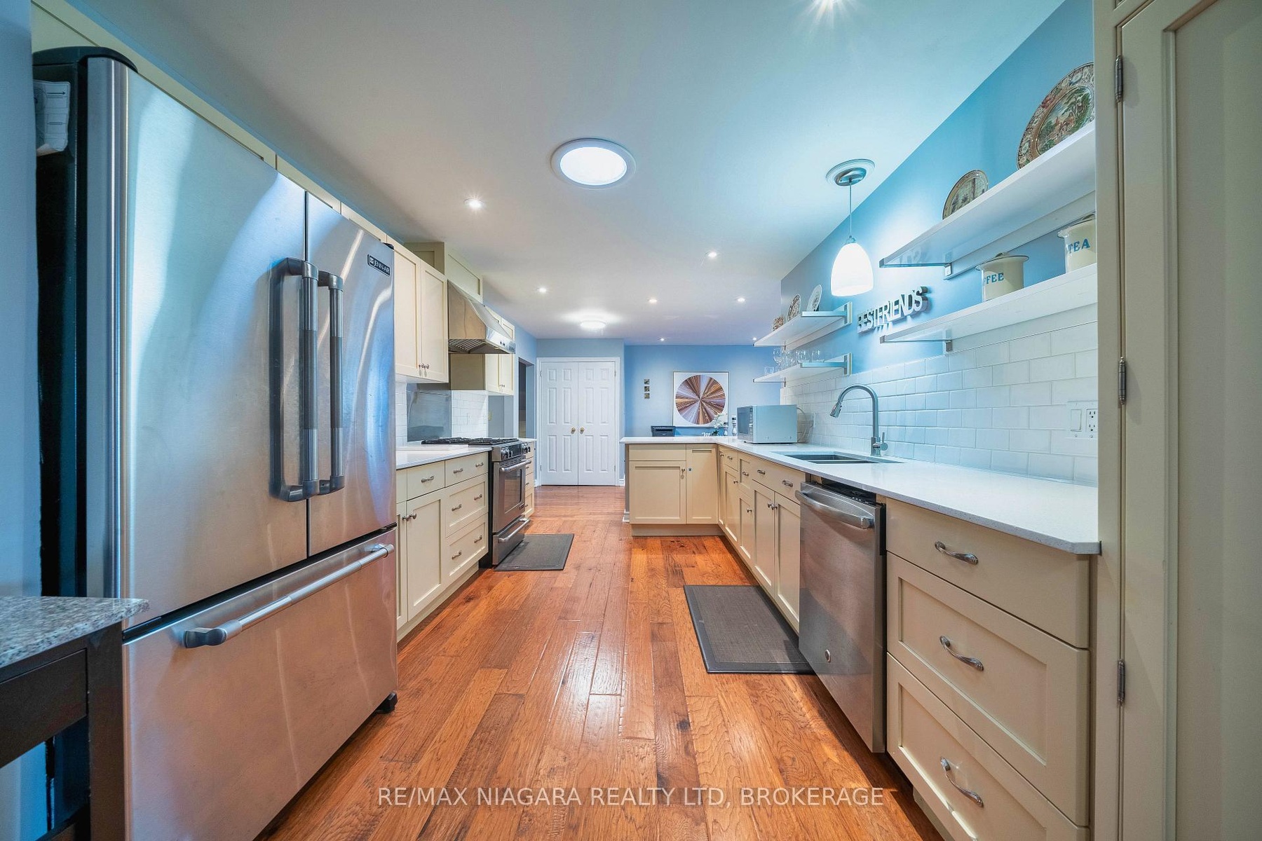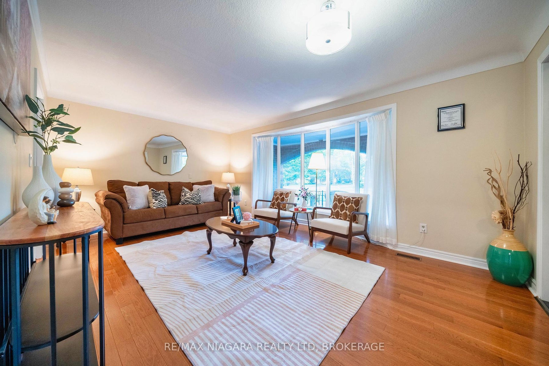 Welcome to this stunning, meticulously maintained home, ideally located in one of Niagara-on-the-Lakes most sought-after neighborhoods. Set among mature landscaping and situated on a large lot, this property offers exceptional privacy both front and back.Flooded with natural light from an abundance of windows, this carpet-free home features a spectacular main-level layout. Enjoy a spacious living room with a cozy fireplace, a formal dining area, and an open-concept kitchen complete with stainless steel appliances, quartz countertops, and ample cabinetry. A bright and inviting family room provides plenty of space for gatherings and entertaining.Upstairs, youll find two generously sized bedrooms, each with its own private 4-piece ensuite bathroom. Just a few steps down, two additional beautifully appointed bedrooms share a 3-piece bathroom.The fully finished lower level offers even more living space, including a fifth bedroom, a laundry room, and a large recreation roomperfect for a home gym, media room, or play area.An extra-long circular driveway provides parking for up to 8 vehicles, in addition to a double attached garage.This unique 4-level side-split home is within walking distance of The Commons, the Heritage Trail, Niagara Parkway, several renowned wineries, and the charming shops, restaurants, and theatre of Old Town.Whether you're looking for a peaceful retreat, a retirement haven, or an income-generating property, this home is full of opportunity.
