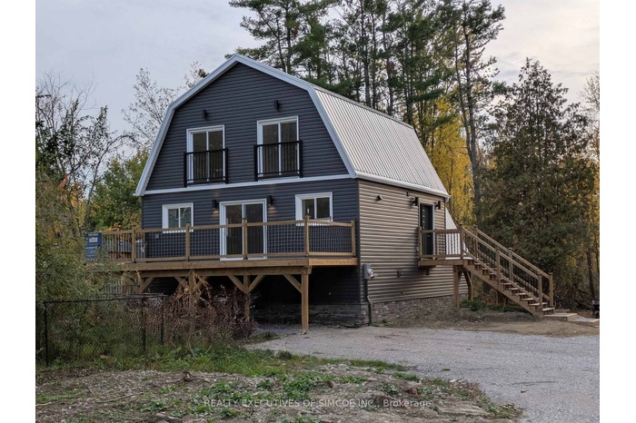 Nestled in the peaceful community of Cumberland Beach, Severn Township, this home is where modern living meets natural beauty. Set on a half-acre lot with municipal water and sewer. At the heart of the home is a beautiful kitchen featuring a large center island with sink, a second sink for convenience, and an easy flow into the family room, creating a space that feels both social and serene. Step through the patio doors and onto a huge deck - perfect for morning coffee, evening dinners, or simply enjoying the peaceful backdrop of the surrounding trees. The main-floor primary bedroom includes a 4-piece ensuite, walk-in closet, and a private balcony with serene treed views. Upstairs, two bedrooms with soaring ceilings and ceiling fans offer space for everyone, while the loft-bright and versatile-can become a home office, reading nook, or creative retreat. Second floor in addition features a 4-piece bath, second-floor laundry room. Exterior features include a metal roof, two large decks, and a driveway for up to 10 vehicles.Fantastic location near boat launches, beaches, and quick Hwy 11 access. A beautiful home that offers style, space, and privacy - all in one.