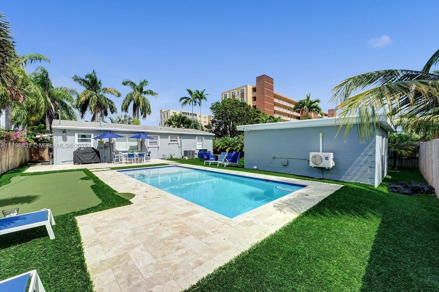 Fall in love with this charming 3-bedroom, 2-bath home in Hallandale Beach, featuring a versatile back house that’s perfect for an office, guest suite, or extra bedroom. The open-concept kitchen flows effortlessly into the bright, inviting living area—ideal for entertaining and everyday comfort. Sunlight fills every corner, enhancing the home’s warm ambiance. Step outside to enjoy a beautiful pool and spacious patio, perfect for relaxation and gatherings. Conveniently located near beaches, shops, and restaurants, this property offers both flexibility and an unbeatable coastal lifestyle.