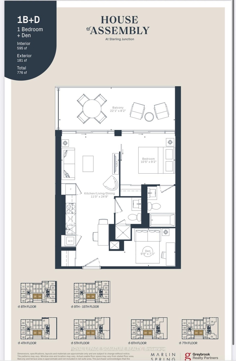 Welcome to Unit 1505 at House of Assembly Condos where modern living meets Torontos vibrant West End! Be the first to call this brand-new 1 Bedroom + Den, 2 Bathroom suite home. Bright and beautifully designed, this unit features floor-to-ceiling windows, 9' smooth ceilings, and laminate flooring throughout. Enjoy a spacious 181 sq. ft. terrace with breathtaking south-facing city views perfect for morning coffee or evening sunsets.The sleek, modern kitchen boasts quartz countertops, built-in stainless steel appliances, and an ensuite washer & dryer. A locker is also included for your convenience.Residents will love the premium building amenities: 24-hour concierge, fitness centre, yoga studio, party room, rooftop terrace with BBQs, and visitor parking.Perfectly situated just steps from UP Express (to Pearson or Union), Bloor GO Station, and Lansdowne/Dundas West TTC stations, this location offers unmatched connectivity. Explore the neighbourhoods best attractions from MOCA (Museum of Contemporary Art) to High Park, art galleries, local breweries, shops, restaurants, bars, and cafés all at your doorstep!