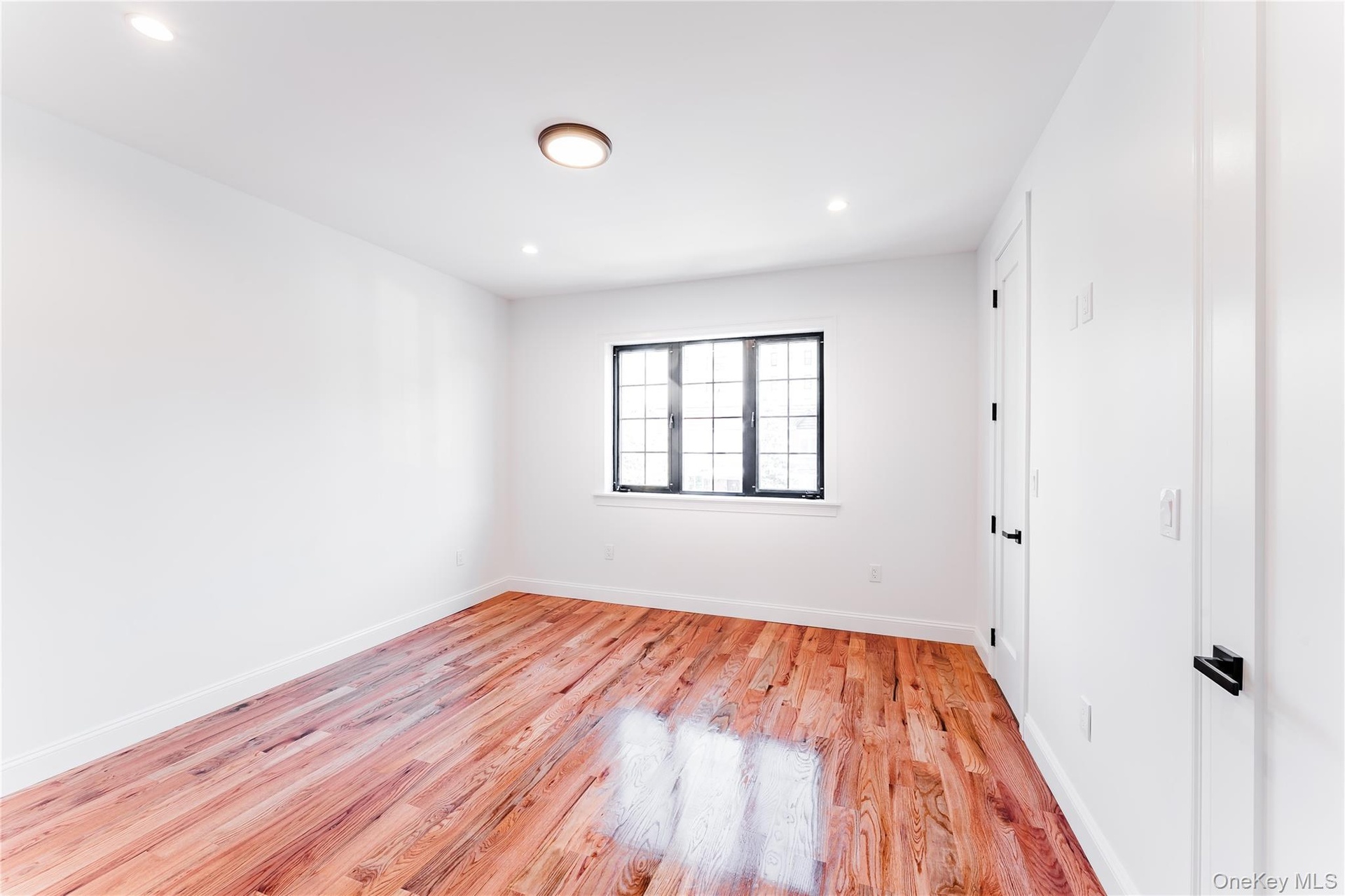 - Unfurnished room with light wood finished floors and recessed lighting