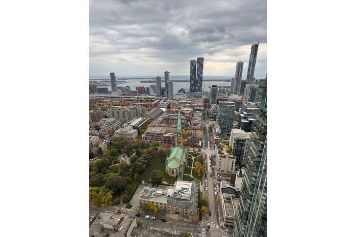 Perched on the 50th floor of The Saint by Minto Communities, this brand-new two-bedroom corner suite offers breathtaking southwest views of Lake Ontario and the Toronto skyline. Designed for modern luxury, it features 9-ft ceilings, floor-to-ceiling windows, and a rare 107sqft balcony that seamlessly extends the living space.The chef-inspired kitchen showcases quartz countertops, designer cabinetry, and integrated appliances, while spa-like bathrooms, custom closets, and smart home features add everyday comfort. The primary bedroom includes a private ensuite, and the second bedroom is perfect for guests or a home office. Full-size laundry, rare parking and locker combo for your convenient , and ample storage complete the home. Built with non-toxic materials and advanced HVAC, The Saint targets LEED and WELL certifications, ensuring clean air and sustainable living. Enjoy over 17,000 sq. ft. of amenities-from a wellness centre with infrared sauna and chromatherapy rain room to Zen gardens, co-working spaces, and terraces with BBQs and firepits .Located steps to the Financial District, St. Lawrence Market, and Queen Subway, this residence defines sky-high living in Toronto's downtown core. Window coverings throughout (to be installed).