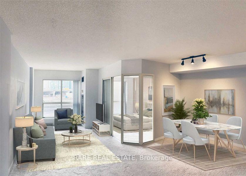 Water & Hydro Included In Rent. South Facing Jr 1 Bdrm. Open Concept Living Space. Open Kitchen W/Breakfast Bar, Floor To Ceiling Large Hall Closets, Renovated Large 4Pc Bath W/Separate Shower Stall & Soaker Tub, En-suite Laundry. Steps To Financial Core, Union Station, Underground Path, St Lawrence Market, Dining, Shop, Metro Grocery. Great Amenities! Rental Parking Available Underground Accessible Thru Building.