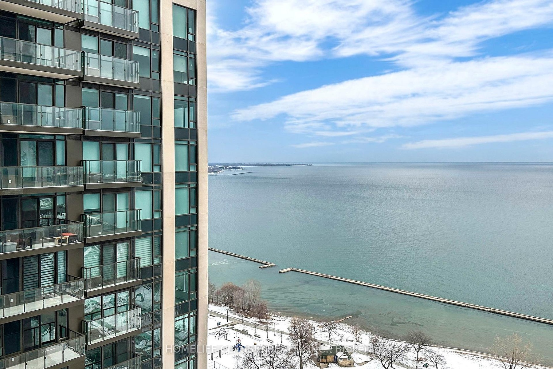 Welcome to this bright, spacious, and beautifully designed 2beds, 2-baths plus den corner suite (1,032 sq ft) offering unmatched value with two private balconies showcasing breathtaking Lake Ontario and Humber River views. Located in High Park -Swansea, on the edge of South Parkdale. The open-concept layout features a modern chef's kitchen with large island, full-size stainless steel appliances, and seamless flow into the sun-filled living and dining area - perfect for entertaining or working from home.. Located just steps from the waterfront, with easy access to the Gardiner, QEW, TTC , Downtown Toronto, transit, parks, trails, Shops, and cafes. This suite delivers the lifestyle and of course 5 Star Amenities including Pool gym and much more.