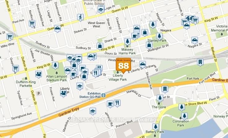Fantastic 1 Bedrm Upscale Condo In The Heart Of Liberty Village! Suite Offers 1 Parking & 1Locker! 9'Ft Ceilings, Extended Kit Cabinets, In-Suite Laundry & Approx 100 Sq Ft Balcony! Updated Vinyl floors and trim! Amazing Amenities Incl: Gym, 24 Hr Concierge, Indoor Pool and Jacuzzi, Rooftop Deck, Car Wash, Guest Suites, Tons of visitors parking, and more! Live Steps Away From Shopping, Restaurants, Pubs & Transit. Metro Supermarket Right Around The Corner Beautiful Lakeshore Waterfront & Trinity Bellwoods Park Just A Short 10 Min Walk.