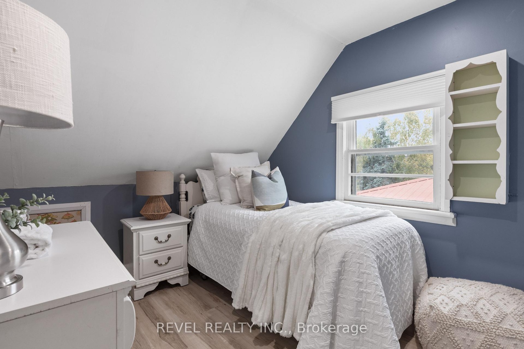 Charming upgraded home in a desirable Lindsay neighbourhood nestled on a quiet street close to all amenities. This beautifully updated home is move-in ready and full of charm. The main floor features upgraded flooring, a brand-new eat-in kitchen with quartz counters, a bright and inviting living room, a main-floor bedroom or office, a new 4-piece bath, and a cozy back porch-perfect for morning coffee looking over the backyard. Upstairs, you'll find three additional bedrooms and a new 2-piece bath, offering plenty of space for family or guests. The basement is a blank canvas awaiting your personal touch, with laundry conveniently located and plenty of potential for future living space. Recent updates include new roof, siding, and eaves (2023) along with some newer windows for added efficiency and peace of mind. Outside, the property shines with a large in town lot, a 20 x 17 immaculate detached garage/workshop, and an asphalt driveway with ample parking. Located just steps from the Scugog River, beautiful walking trails, parks, Lindsay Golf & Country Club, and the Recreation Centre, this home offers both comfort and convenience. Whether you're a first-time home buyer or looking to downsize, this lovely property could be your next perfect new home.