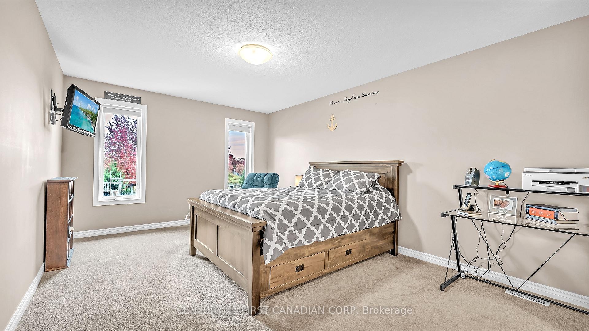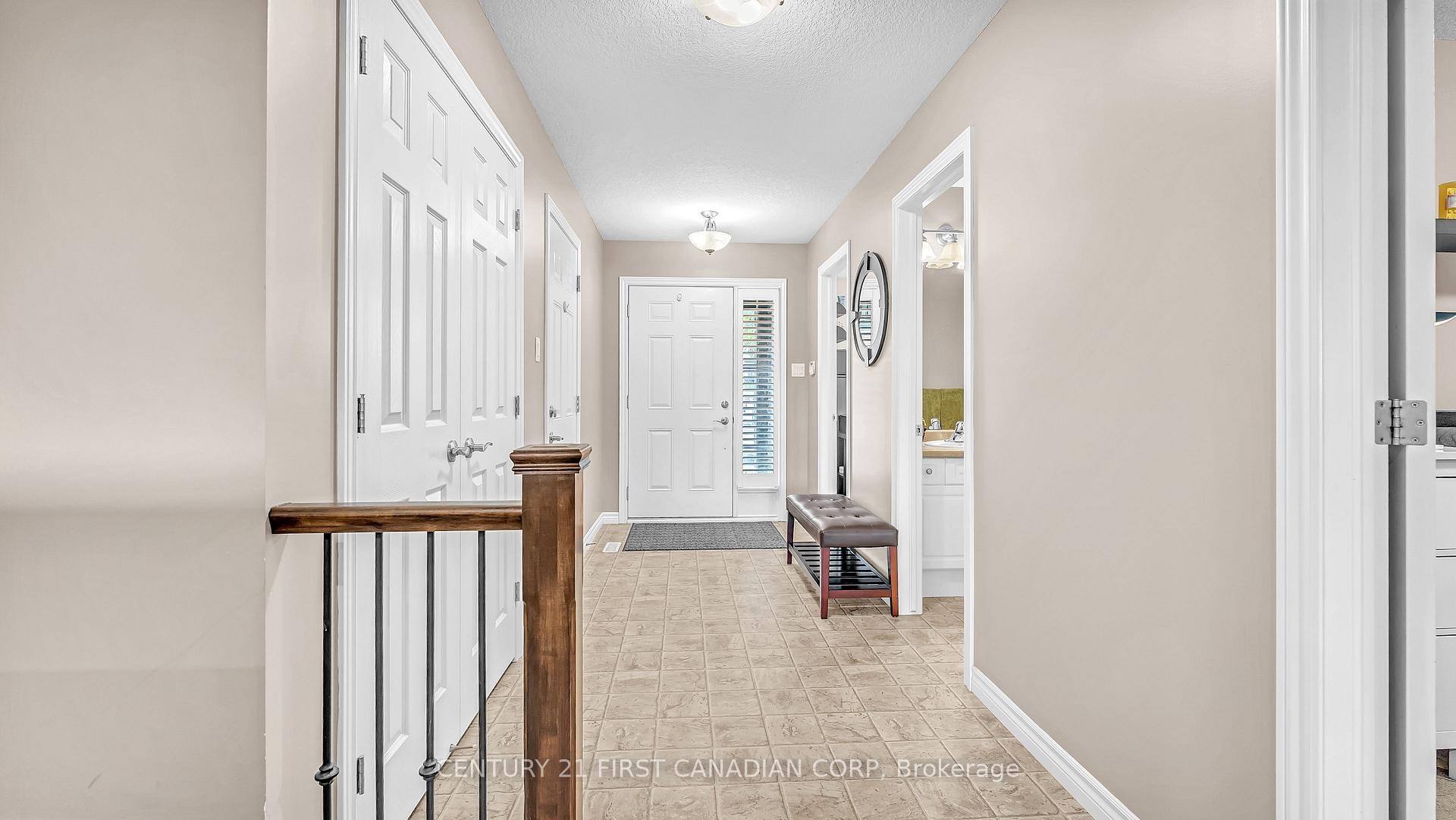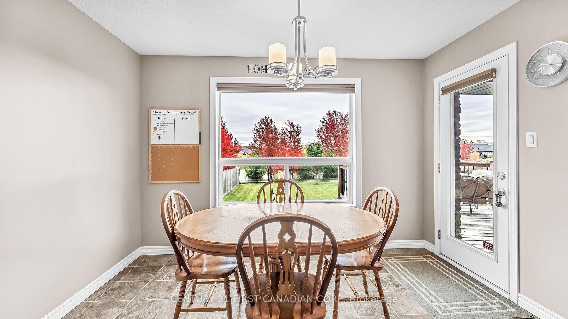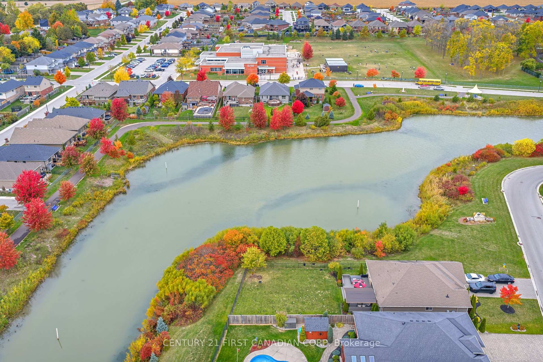 Welcome home to this fantastically positioned 3 Bedroom All-Brick Bungalow with Double Car Garage, on a RARE LOT backing onto Wye Creek Pond, right in the heart of the close-knit community of Thorndale. This home offers exceptional flow, including a spacious front foyer which leads to an open-concept floor plan, including an eat-in kitchen with tons of cupboard and counter space, together with an island and corner pantry, open to the eat-in area which overlooks picturesque views of the pond and stunning landscaping surrounding the walking trails. The dining area has a door out to the backyard deck and large fenced yard, views to enjoy while sipping your morning coffee, or host summer dinners on the deck with peace and ambiance. The main floor also showcases a vast living room area with a gas fireplace and trayed ceiling including pot lighting. The main floor is also complete with a large Primary Bedroom with 3PC ensuite, as well as two other main floor bedrooms and an additional 4PC washroom. The sprawling basement is unspoiled offering ample opportunity for another bedroom and a large family & rec room area, already framed or easily modified-plus tons of storage space! The lower level also features a good amount of sunlight with larger windows and the opportunity for another bathroom with an existing extra washroom rough-in. The water heater is owned. Thorndale offers quiet small town charm, with the convenience of being less than 15 mins to London city amenities. Excellent schools & parks in the area-just steps away from West Nissouri Public School. Garage fully insulated, as well as the garage door. Gas BBQ hook-up.