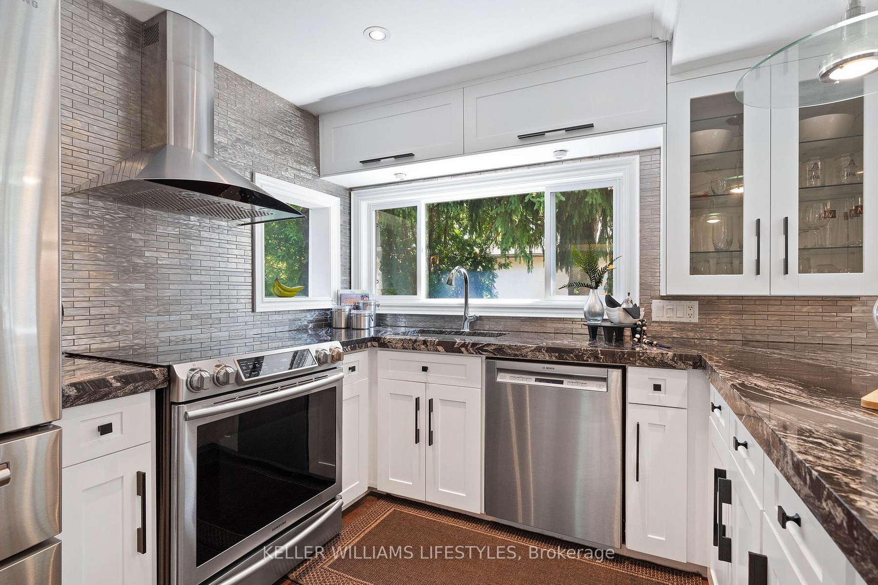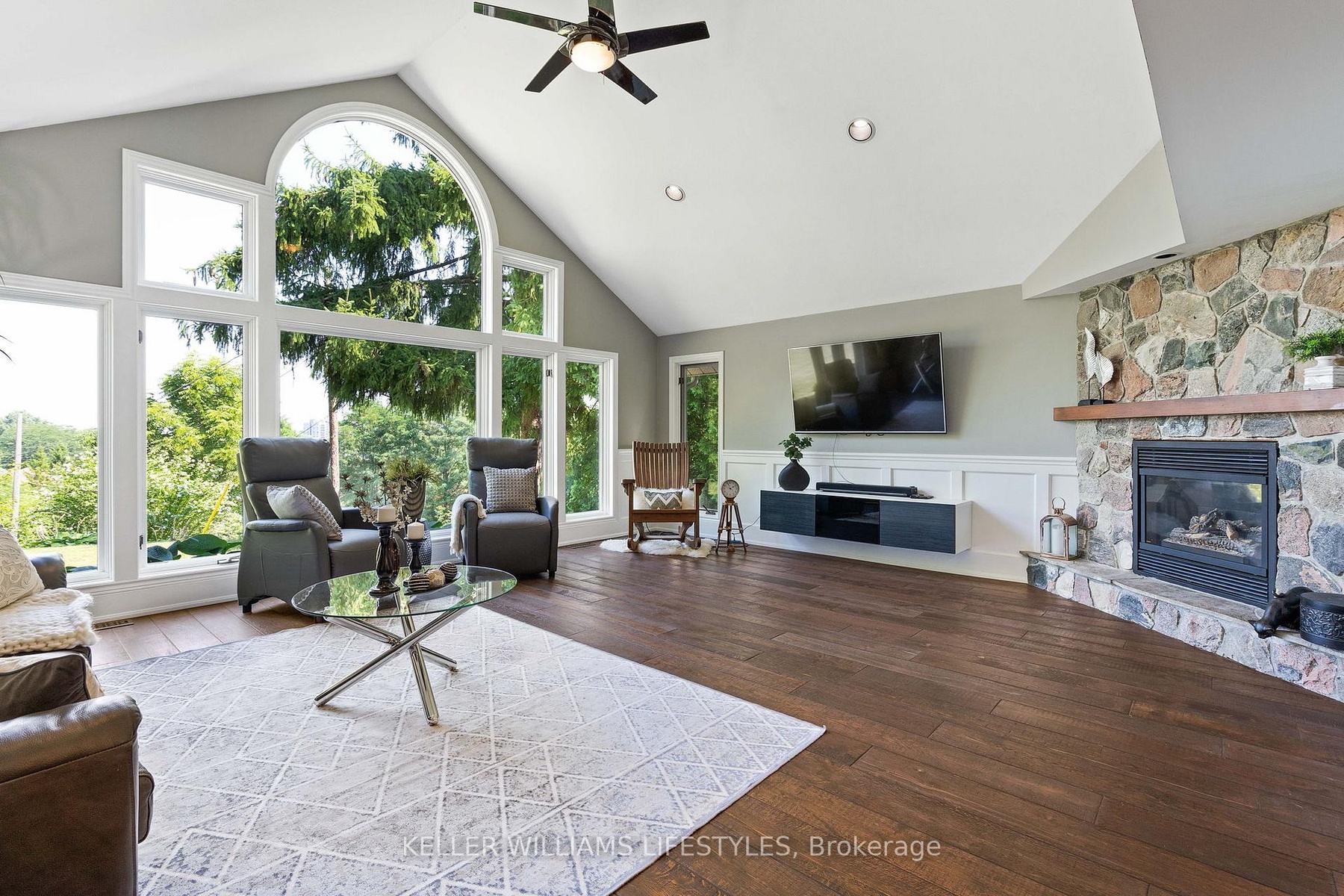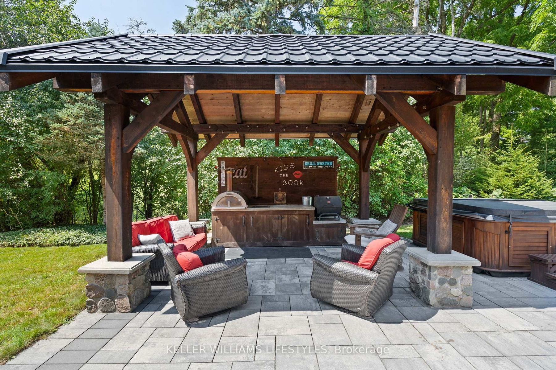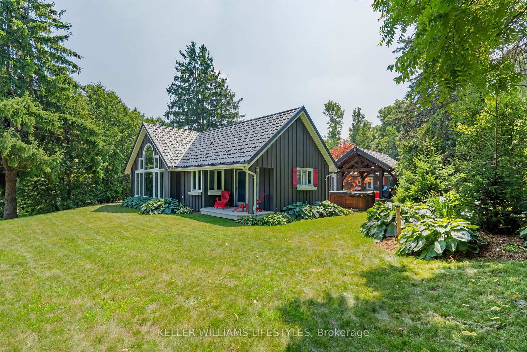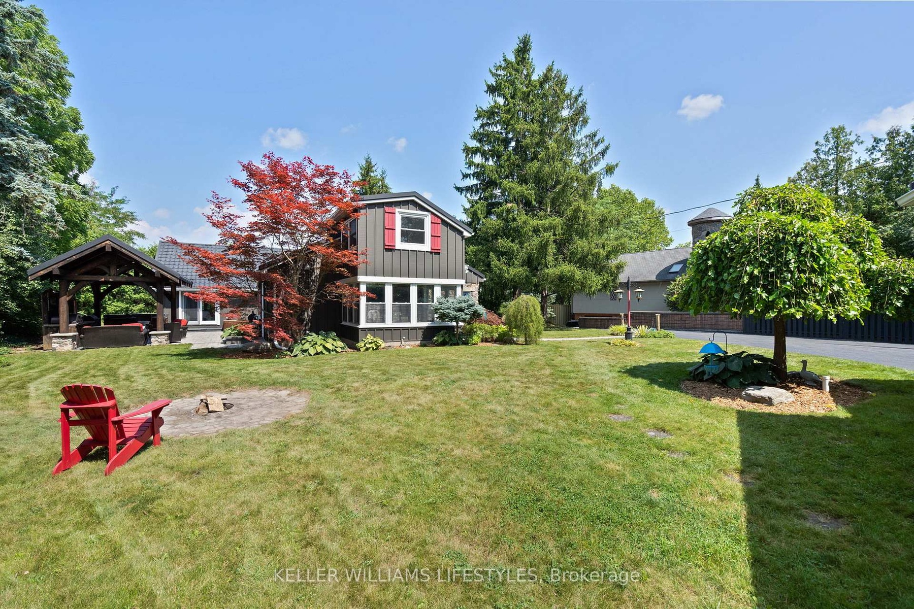 Country in the city. Combining the best of cottage living, country charm, and city amenities, all rolled into one. Welcome to 515 Jarvis Street. Set on a stunning 0.66-acre lot surrounded by mature trees and nature, this unique property offers an ultra-private lifestyle just minutes from downtown London, Springbank Park, shopping, dining, entertainment, and convenient access to both Highway 401 and 402. Professionally renovated with attention to detail, this 1.5-storey stone and board-and-batten home offers over 2,300 sq ft of above-grade living space. The main floor features a spacious primary bedroom with a 4-piece ensuite, a welcoming sunroom, large living and dining areas, a showstopper kitchen with granite counters, and a vaulted family room with a gas fireplace that creates a warm and inviting atmosphere. Upstairs, you'll find two additional bedrooms and a 2-piece bathroom, providing flexibility for family, guests, or a home office. Outside, the 18-by-14-foot timberframe pavilion with metal roof anchors the beautifully landscaped backyard, complete with a built-in outdoor kitchen and an Arctic Spa hot tub. The detached garage and workshop provide 774 sq ft of space, plus a finished 296 sq ft loft with its own gas fireplace, ideal for a guest suite, studio, or home business. The home is connected to the municipal sewer. It currently uses well water, but a municipal water line has already been brought into the basement, making conversion easy. With seasonal skyline views, natural privacy, and a central location close to everything, this property is a rare opportunity to enjoy the best of all worlds.