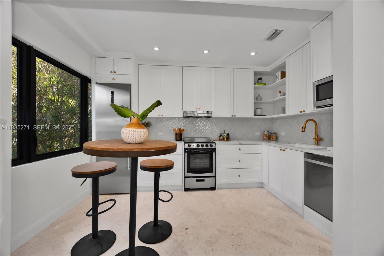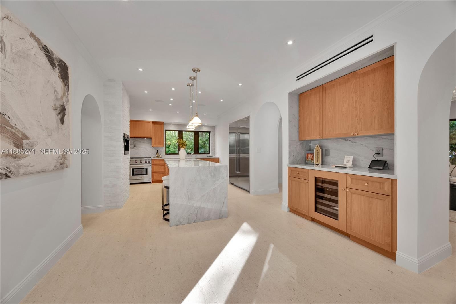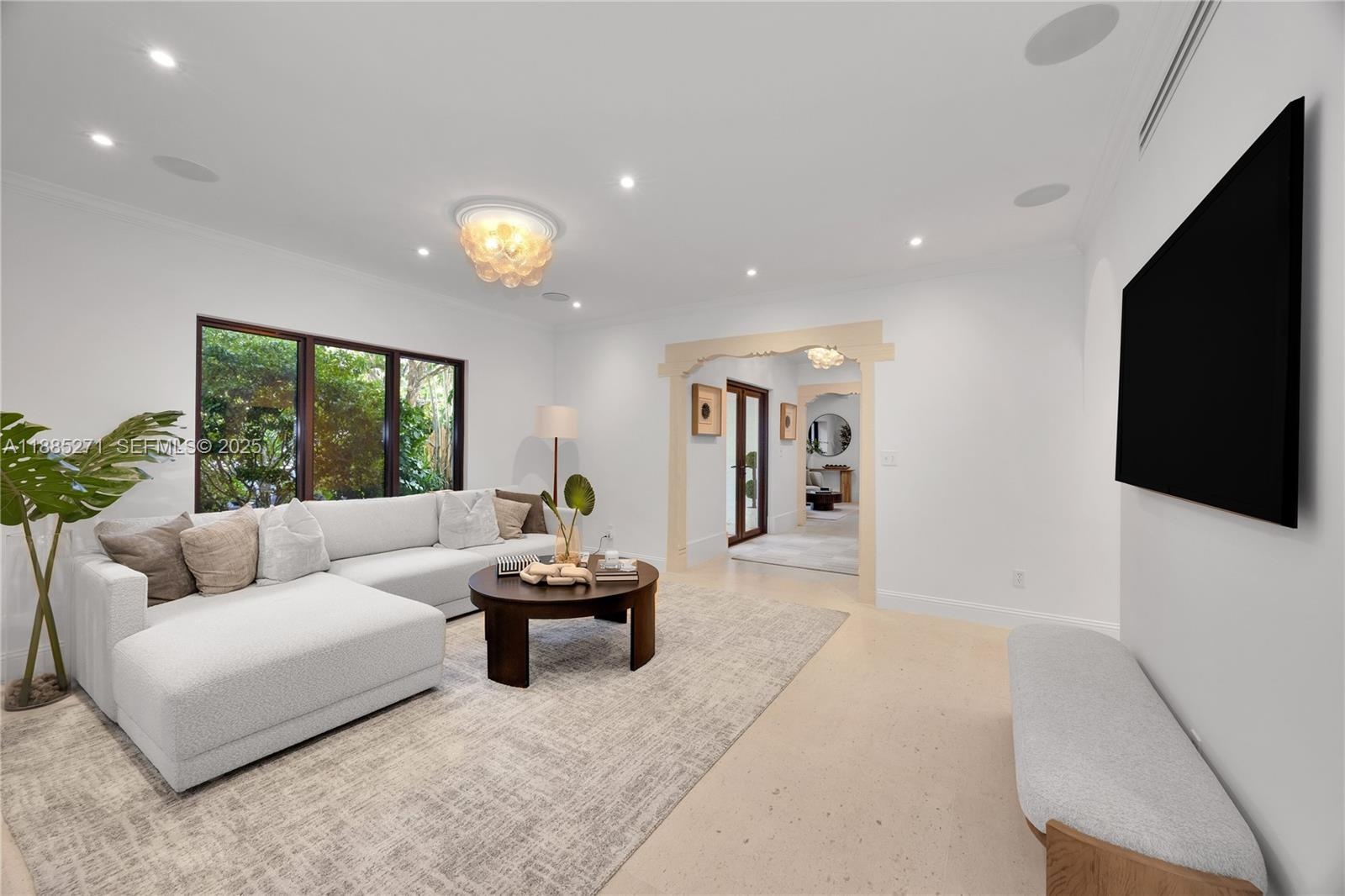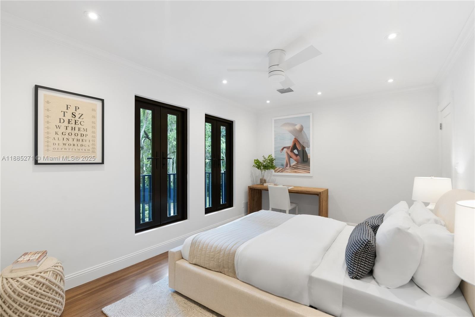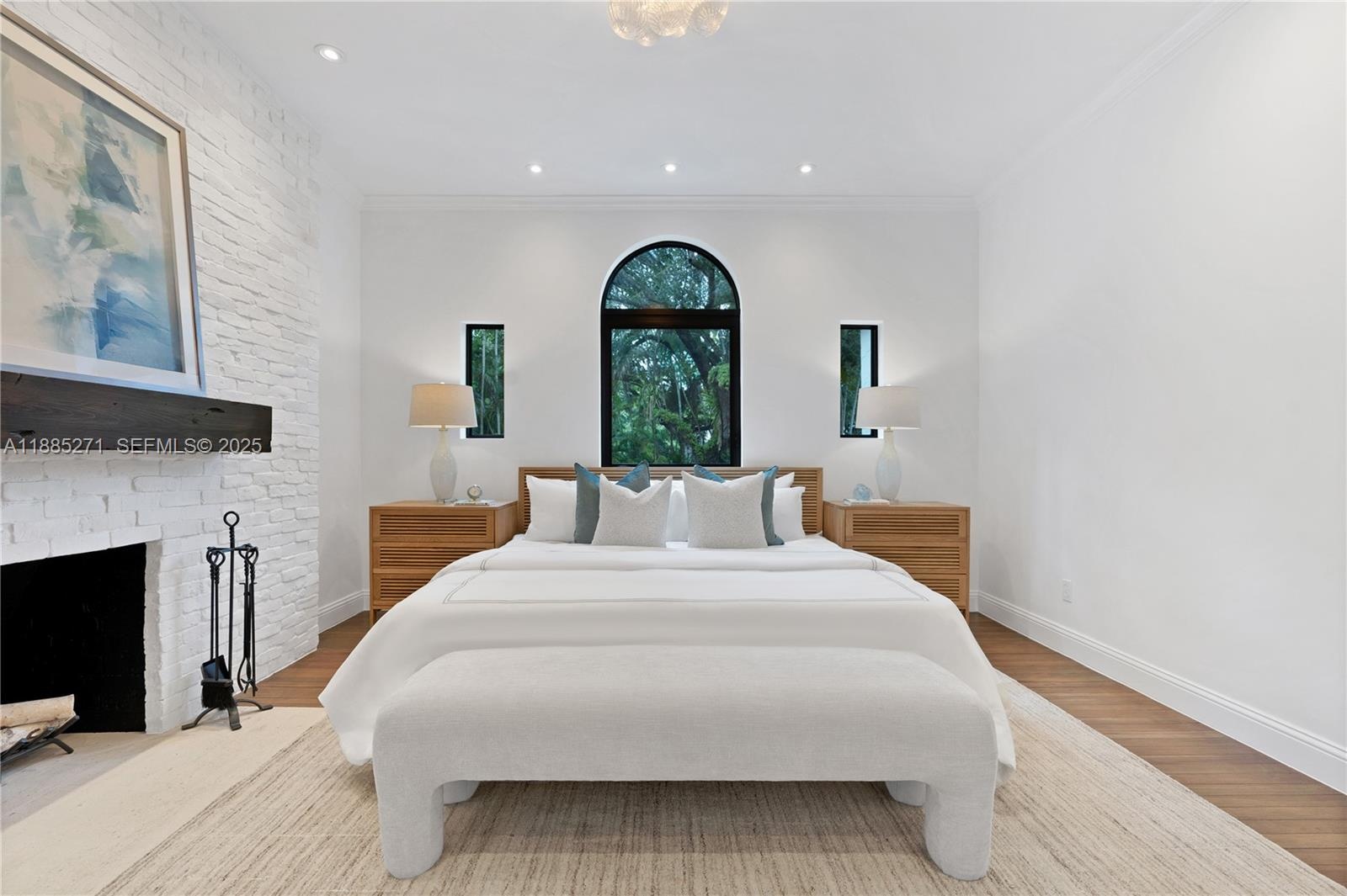 Set on a serene 21,000 sf gated estate in Coconut Grove, this Richard Kiehnel–designed Spanish Colonial home combines rich history with modern luxury. The main residence offers 5 ensuites, a living room w/ fireplace, open kitchen/dining w/ Sub-Zero/Wolf appliances & quartzite counters, wine room, laundry, and family room. The primary suite features dual walk-ins, original clawfoot tub, and two-person shower. The private guest house adds the 6th bedroom, sep. kitchen & living. Recent upgrades include new impact windows/doors, and roof w/ copper gutters. Outdoor amenities include a new pool w/ auto closer, covered patio, summer kitchen, and lush landscaping. With dual gated entrances and walking distance to top schools, this estate is a rare Grove sanctuary for elegant living & entertaining.