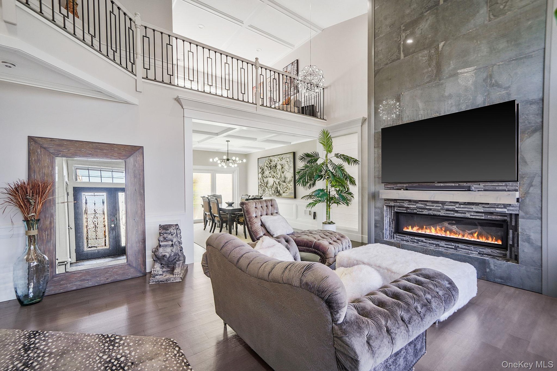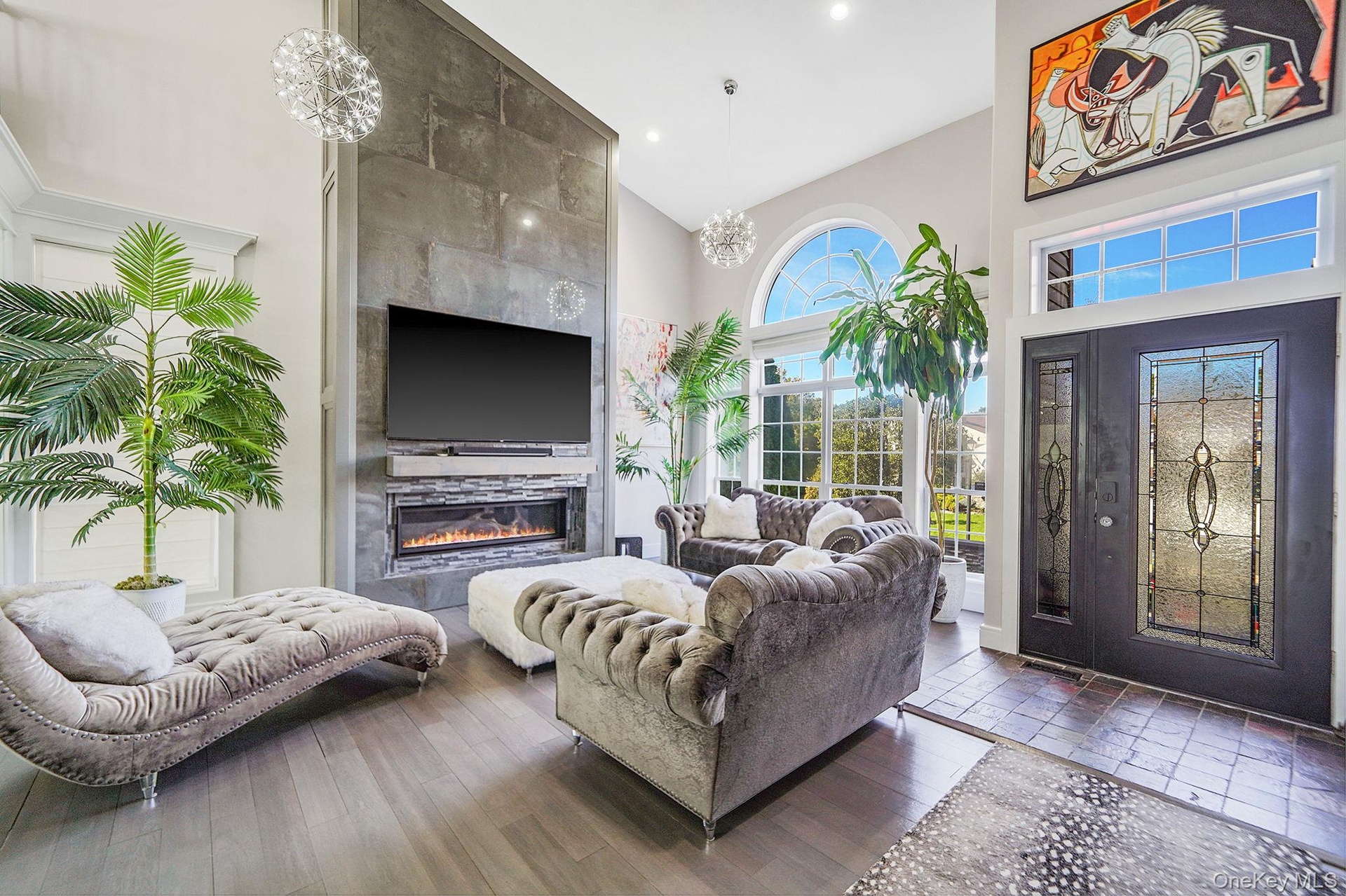 Welcome home to 14 Hamlet Dr! This luxury, diamond-renovated Alton model is the one you've been waiting to come to market. One of the largest units in the highly sought-after Hamlet of Hauppauge. Step inside as you're greeted with beautiful mahogany floors, cathedral ceilings, breathtaking floor-to-ceiling fireplaces, a formal dining room, a full movie room with a huge screen and projector, and so much more! An entertainer's dream of a kitchen with all upgraded custom cabinets, a waterfall peninsula with a bonus island, a gorgeous gas fireplace, and an open concept with room for seating and dining. Large windows letting in tons of natural light, with beautiful glass sliders leading you into your fenced-in private turf patio. Upstairs you'll find 3 bedrooms, 2 bathrooms, and an additional loft space. The primary suite features walk-in closets with California systems and a brand-new primary bathroom. Downstairs you have a fully finished basement with an additional full bathroom, a fully equipped home gym that is included, an electric fireplace, tons of room for storage, and your beautiful walk-out garage, all located on the ground level. Additional updates include a full home Sonos speaker system, new HVAC, a new washer and dryer, a fully heated driveway for those snowy days, & a full smart home. Residents get to enjoy the most beautifully landscaped property sitting atop Long Island's most stunningly gorgeous vistas. All being surrounded by one of Long Island’s most renowned semi-private golf courses. The private pool, gym, and tennis courts are meticulously maintained. Gently rolling hills dotted with 400 Bradford pear trees, perfectly manicured lawns, and stunning lakes and waterfalls complete the scene. Schedule your private showing today!!
