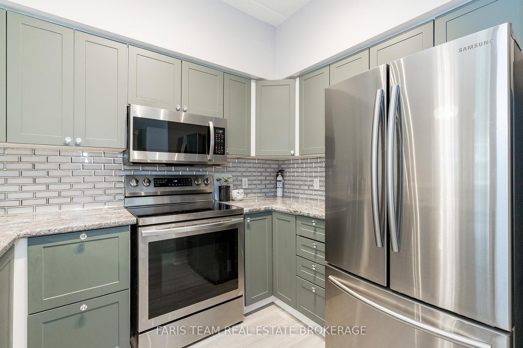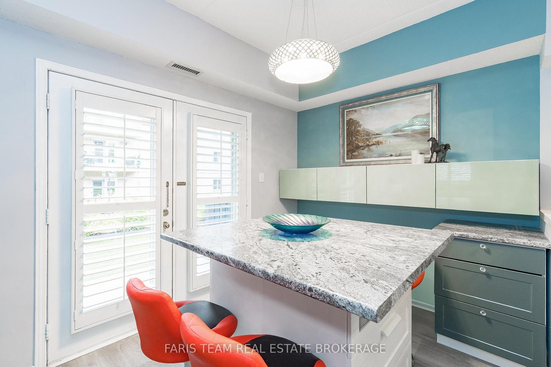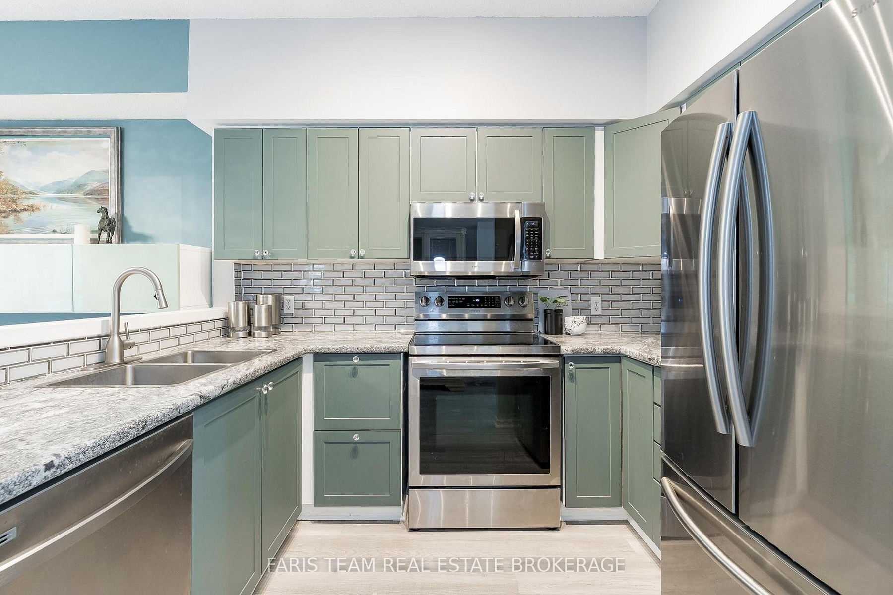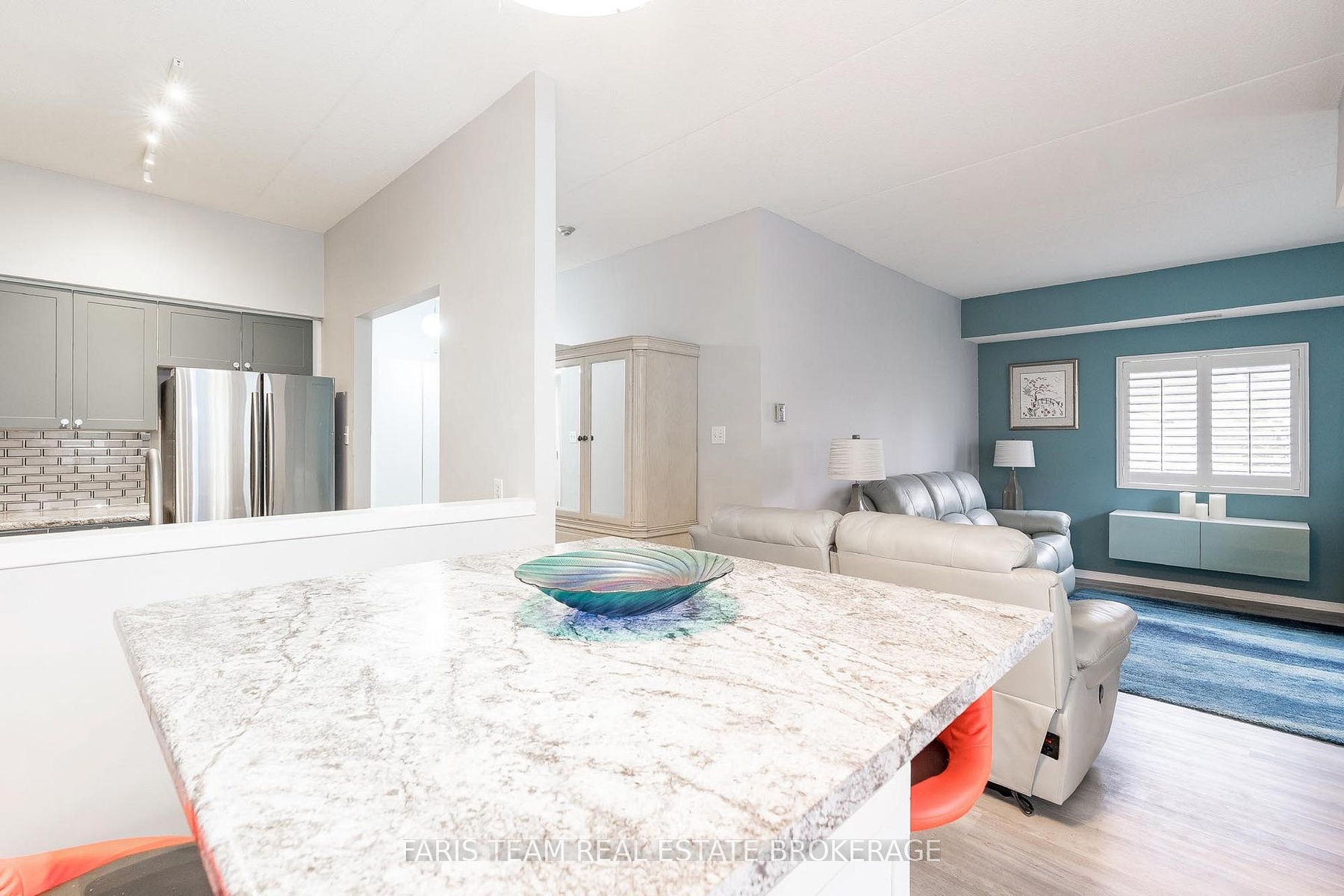 Top 5 Reasons You Will Love This Condo: 1) This stylish ground-level end unit presents modern comfort and exceptional convenience with no stairs, no hallway noise, and a private patio for effortless indoor-outdoor living 2) Soaring ceilings and thoughtful updates throughout, including new lighting, flooring, and a backsplash, creating a bright, contemporary atmosphere that feels both functional and inviting 3) Enjoy the ease of in-suite laundry, dedicated parking, and an innovative layout designed to maximize every square foot 4) Perfectly situated just steps from Lake Couchiching, Lake Simcoe, downtown Orillia, and a variety of restaurants and shops, everything you need is right at your doorstep 5) With quick access to Highway 11, commuting is effortless, whether you're heading to work, the cottage, or beyond. 817 fin.sq.ft.