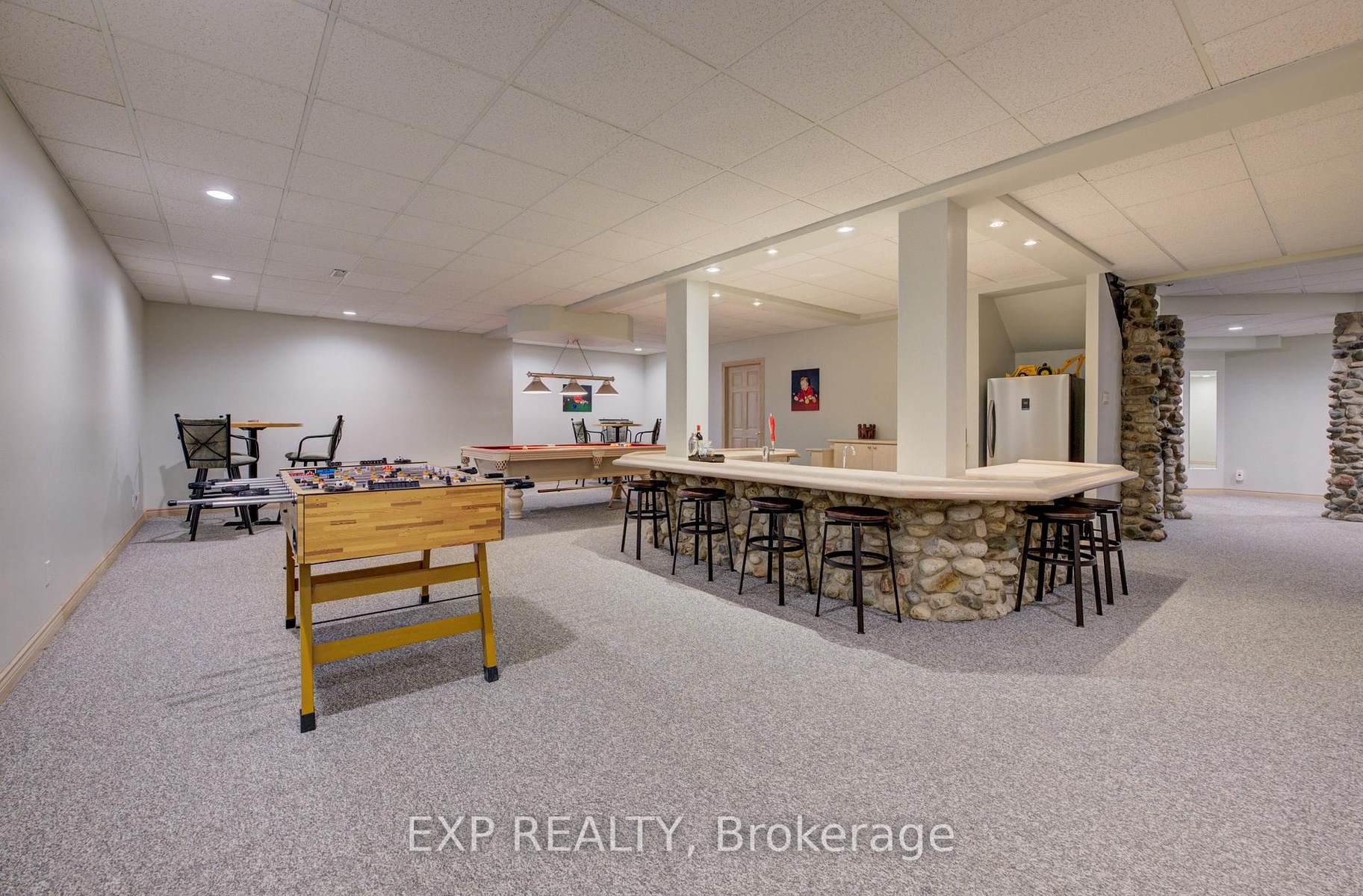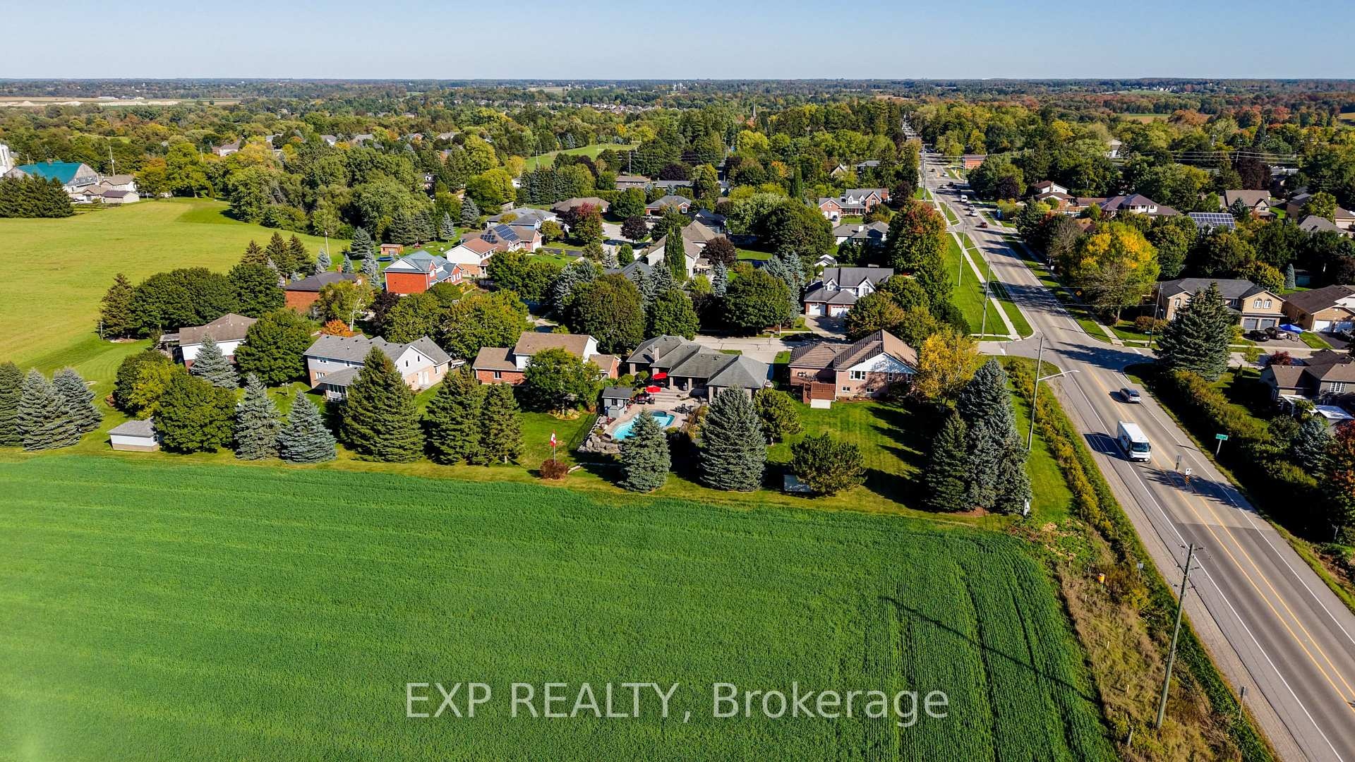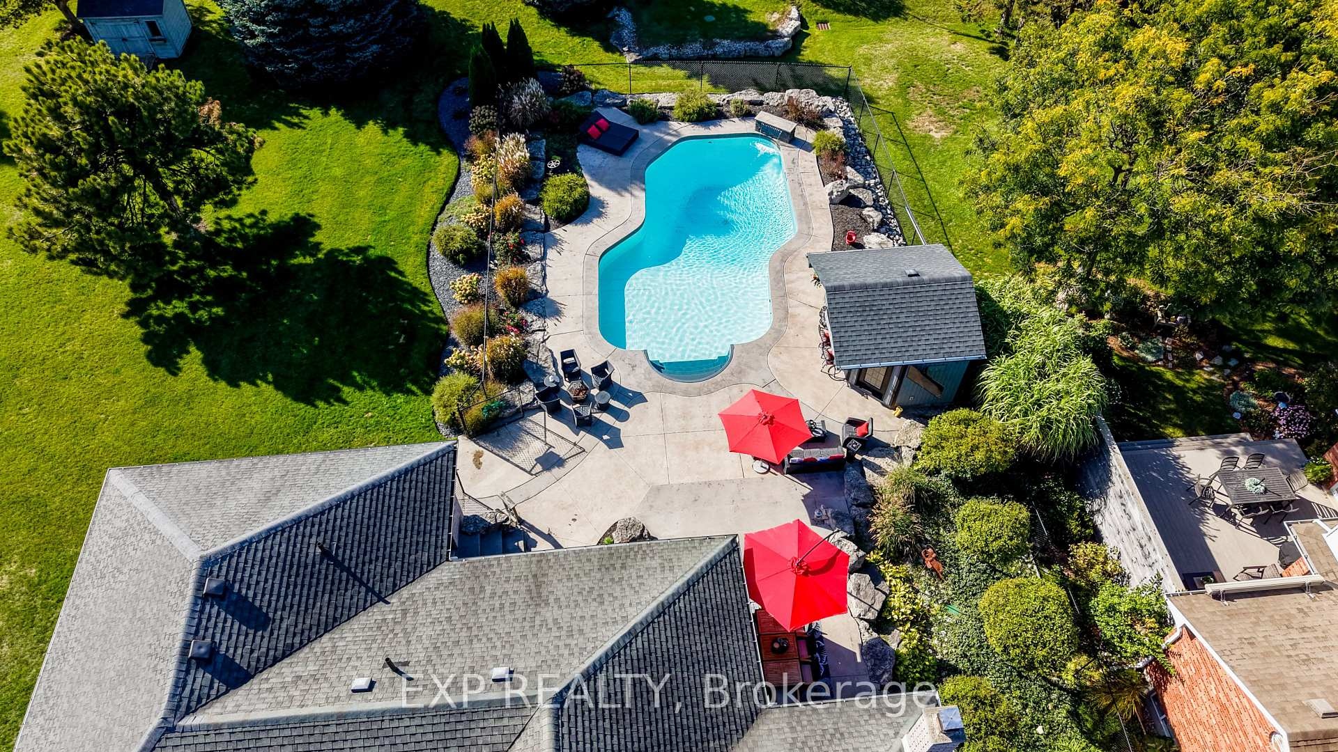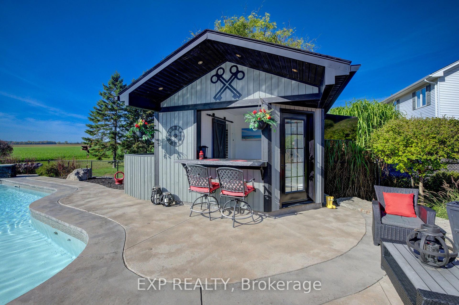 Welcome to 28 Musselman Crescent. Nestled on a peaceful crescent in the charming village of Conestogo, this stunning all-brick bungalow blends luxury, functionality, and serene country living. With 3 bedrooms, 3 bathrooms, and nearly 4,875 total square feet of finished living space, this home is a true showstopper inside and out. The professionally landscaped gardens, driveway with parking for 6, and a heated 2-car garage lead to the welcoming front entrance. Step inside to an inviting open-concept layout with hardwood floors, pot lights, and large windows that fill the home with natural light. The living room features a cozy gas fireplace and windows looking out to the backyard oasis, creating a seamless indoor-outdoor flow. The chef's kitchen boasts stainless steel appliances, quartz countertops, tiled backsplash, large pantry, and breakfast bar, connecting to the dining area with floor-to-ceiling windows and walkout to the patio. The main floor includes three spacious bedrooms. The primary suite offers his and hers walk-in closets and a spa-like ensuite with heated floor and custom tiled shower. A 4-piece main bathroom and large laundry/mudroom with heated tiled flooring complete the level. The finished basement provides exceptional additional living space with an oversized rec room featuring 8+ foot ceilings, a wood-burning fireplace and stone-accented wet bar, a 3-piece bathroom, and abundant storage. Your private backyard oasis boasts an in-ground pool with a waterfall feature and a cabana featuring a water closet and poolside bar. Imagine starting your day with coffee or winding down with stunning sunset views looking onto tranquil farmers' fields with no rear neighbors, a perfect blend of privacy and tranquility. This home offers rural peace while being minutes from Elmira, Waterloo, and St. Jacobs. Close to trails, schools, markets, and all amenities, this property captures the best of both worlds.
