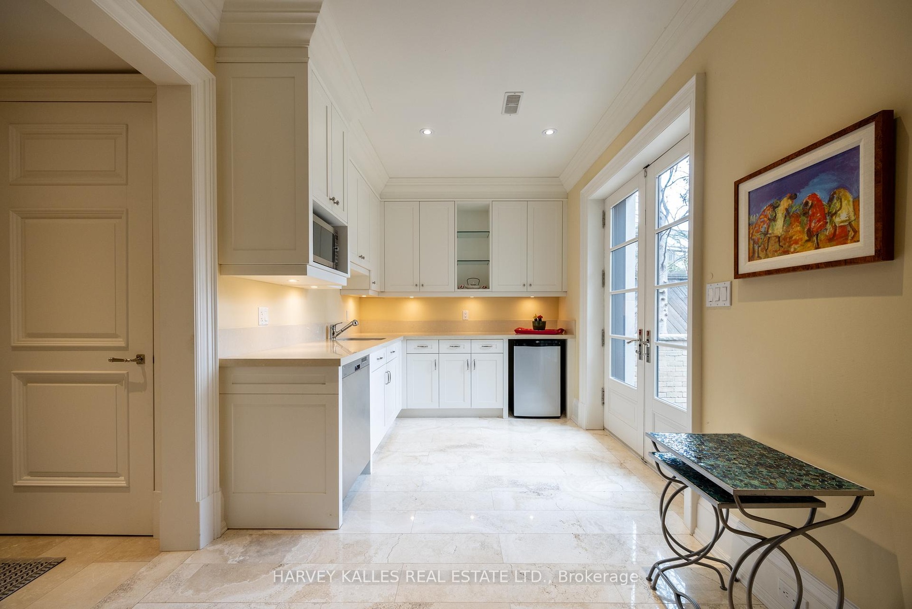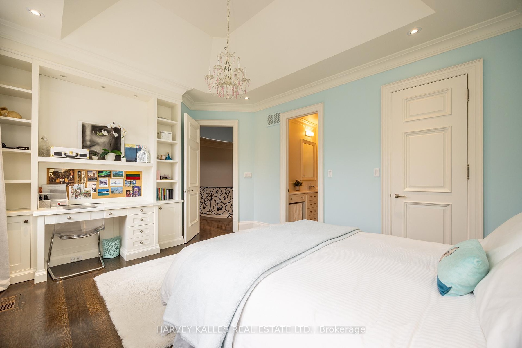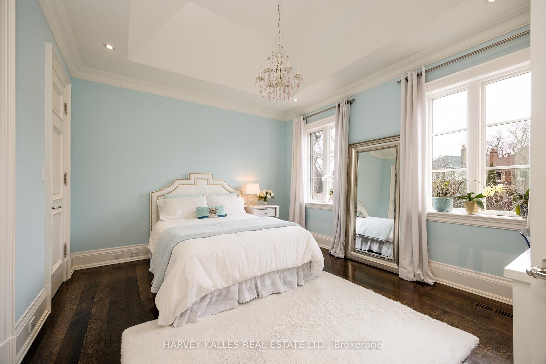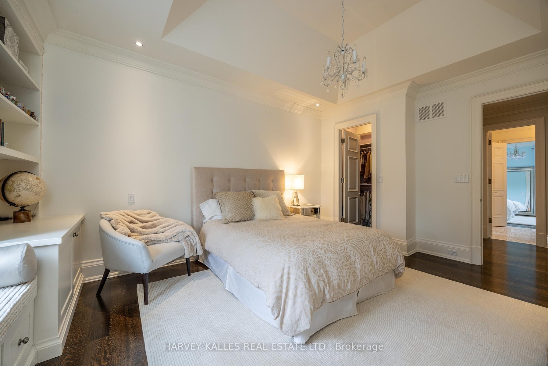 Welcome to 50 Lawrence Crescent a refined, custom-built residence in the heart of prestigious Lawrence Park. Completed in 2011, this timeless home was designed and executed by a dream team: Architect Lorne Rose, Interior Designer CMID, Landscape Architect the late Egils Dirdrichsons, and Project Manager LeBoeuf Jones. Set on a rare pie-shaped 50' x 151' lot that widens to 80 at the rear, the home is framed by perfectly manicured, professionally landscaped grounds featuring a Bona Vista saltwater pool with marblite finish, Lynx built-in BBQ, and elegant stone terrace creating a private, resort-style oasis in the city. Offering over 6,139 Sq. Ft. of interior living space, this home is designed with a classic centre hall layout and tremendous attention to detail throughout. The main floor boasts 10' ceilings, wide-plank oak hardwood, custom millwork, and sophisticated principal rooms, including a formal living room (or study), an oversized dining room, and a sun-filled family room with gas fireplace and built-ins. The gourmet kitchen features Sub-Zero, Wolf, and Bosch appliances, granite countertops, custom cabinetry, and a large centre island with bar seating. French doors provide a seamless connection to the backyard. The upper level offers a serene primary suite with vaulted ceilings, a large dressing room, and a 9-piece marble-clad ensuite with heated floors and steam shower. Three additional bedrooms feature ensuite or semi-ensuite baths and walk-in closets. The finished lower level includes radiant heated floors, a large rec room with wet bar, home gym, fifth bedroom with ensuite, and walk-up to the backyard. Impeccably maintained, this home exudes pride of ownership. Located in the top-rated Blythwood Junior Public School and Lawrence Park Collegiate Institute districts, and walking distance to Toronto French School, Lawrence subway, and in close proximity to Toronto's top private schools. A rare opportunity on one of Lawrence Parks most desirable streets.