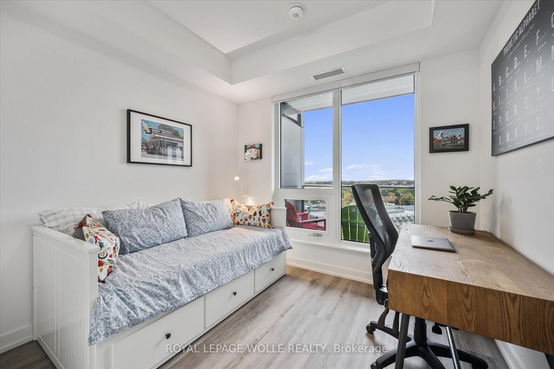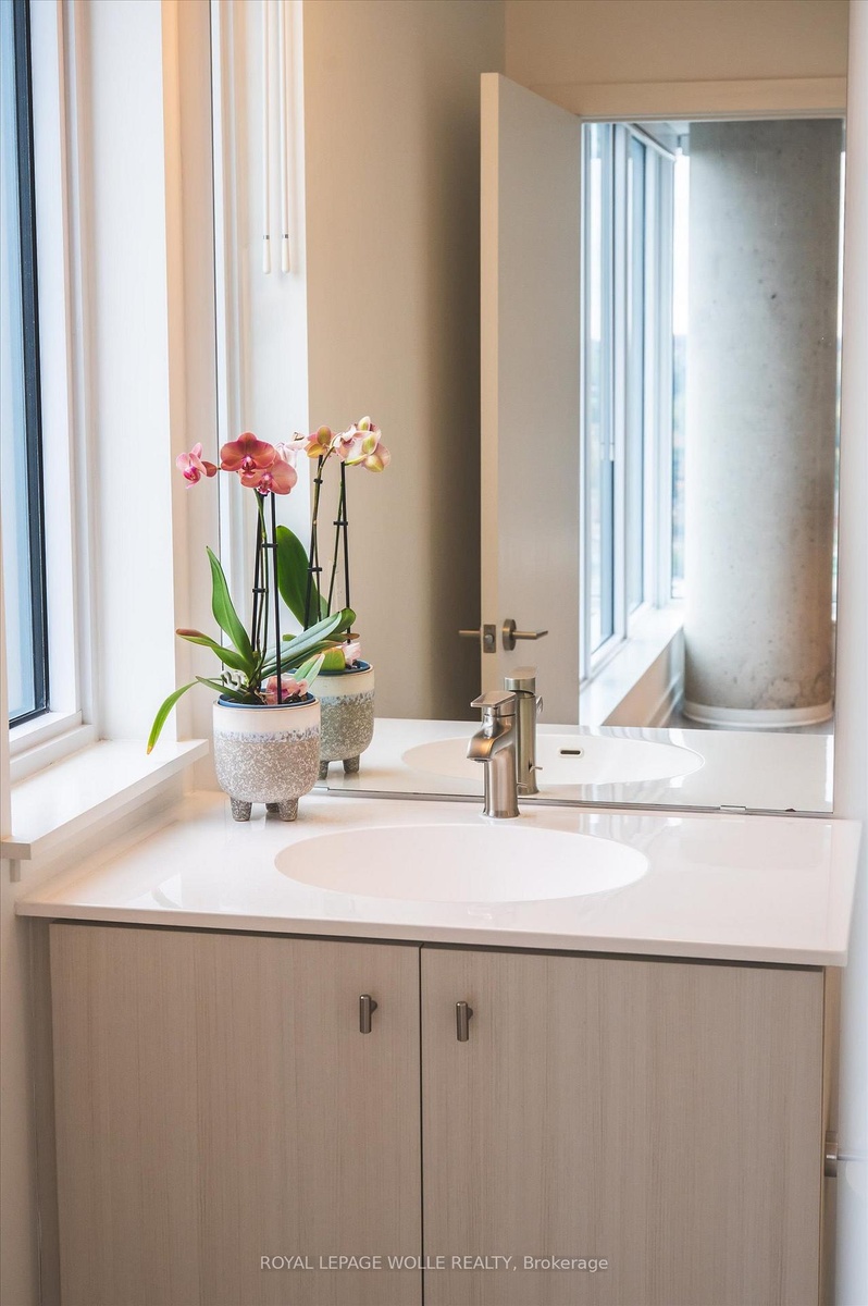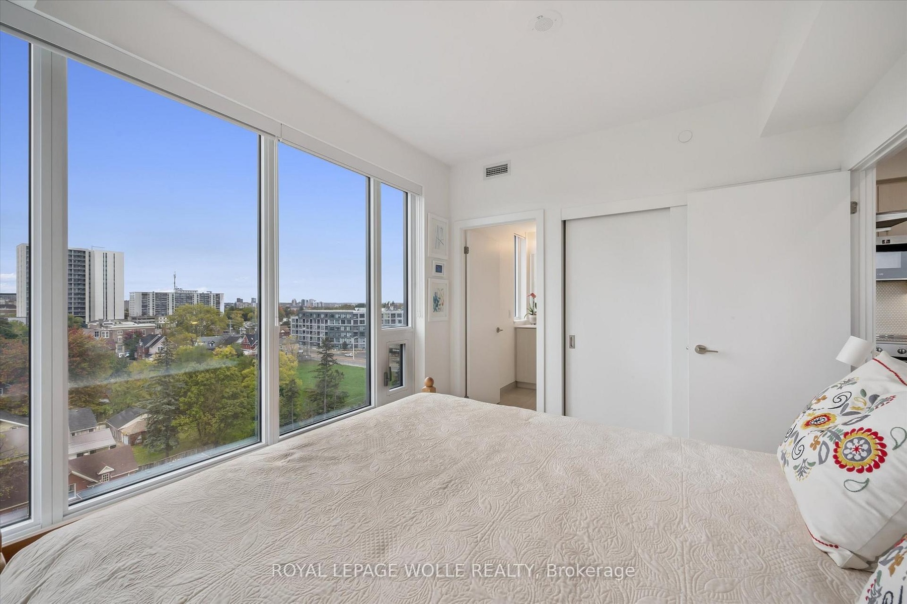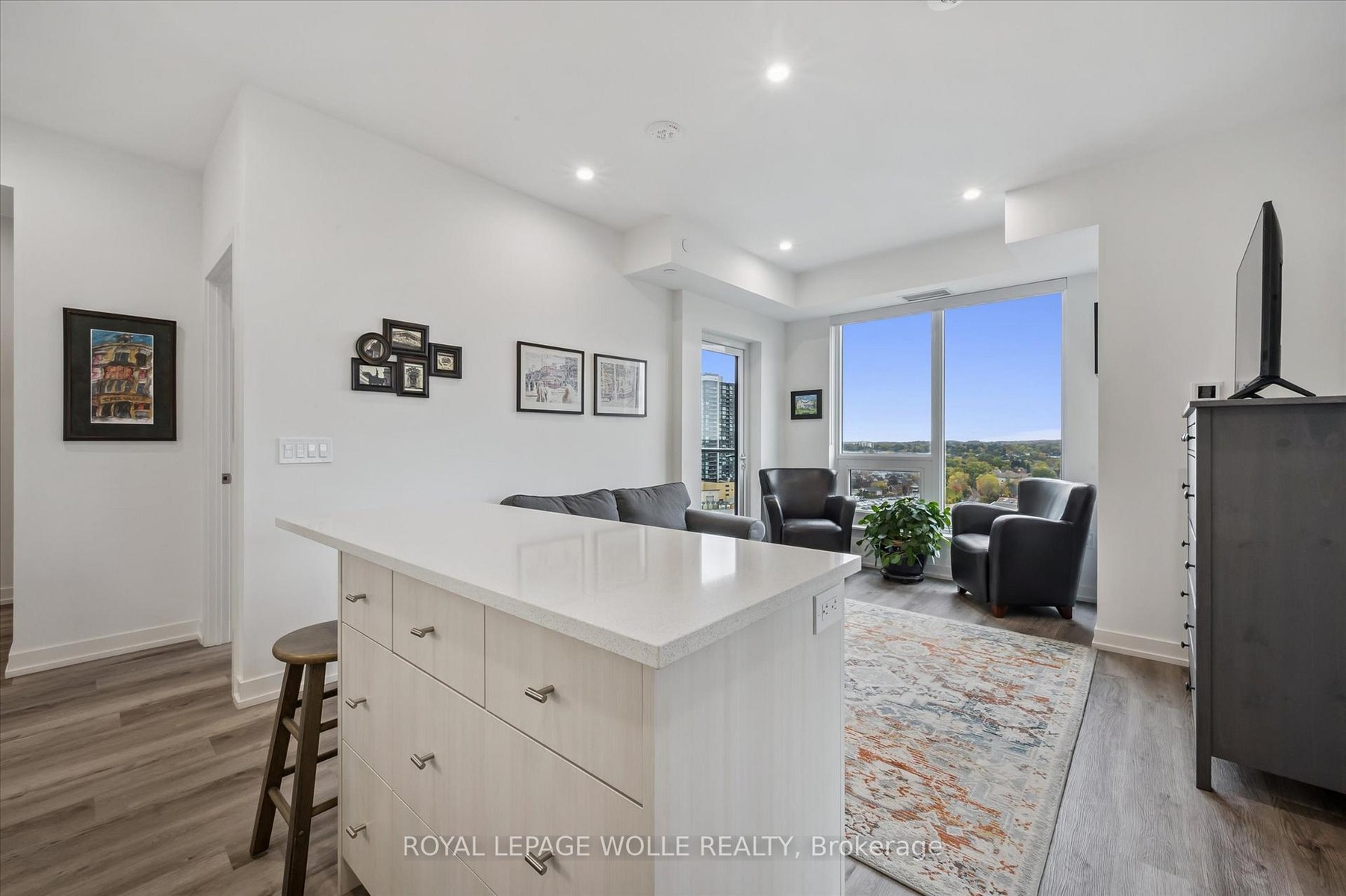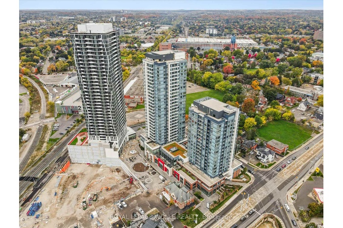 VIEWS FOR DAYS!! Welcome to Station Park - where modern living meets unmatched convenience in the heart of downtown Kitchener. With thousands spent on upgrades, this corner 2-bedroom, 2-bath unit comes with underground parking and storage locker. Perched up on the 9th floor, enjoy spectacular views of the city overtop the trees. This spacious and well appointed unit offers an upscale bright kitchen, with upgraded island with seating, clean quartz countertops, penny shaped backsplash and ample counter and cupboard storage. The kitchen opens up to the living room that is filled with tons of natural light and unobstructed views. Make your way to the primary bedroom, fit with ceiling to floor windows all the way around and spectacular views of the neighbourhood and Uptown Waterloo. Enjoy your private ensuite with glass walk-in shower. The second bedroom is a great size - perfect for an office or for guests with another full bath. Your private balcony is the perfect place to unwind. The unit features in-suite laundry, 1 underground parking space and storage locker. Internet is included in the condo fees. Steps from Google, the School of Pharmacy and Medicine, the MedTech Hub, CommuniTech, KPMG, and countless restaurants, cafes, and shops. With the LRT and GO Train at your doorstep, the entire city and region are within easy reach. Station Park is known for offering some of the most impressive amenities in the region. From a fitness studio with yoga space, hydrapool and hot tub, to an ice rink, bowling alley, arcade hall, jam room, amphitheater, party room, outdoor work pods, sauna, Peleton room - you'll never run out of ways to work, play, or unwind right at home. Don't miss the chance to experience a vibrant, connected lifestyle at Station Park - downtown living at its very best.