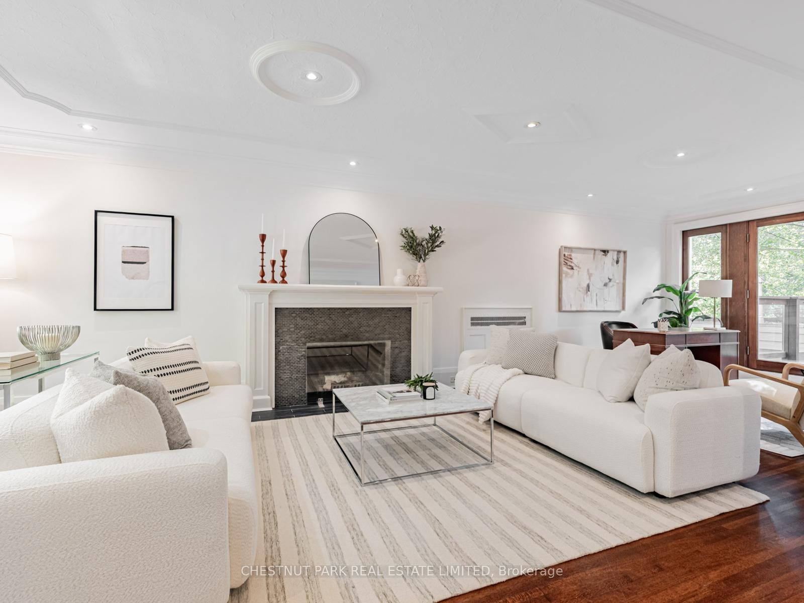 In the heart of Lytton Park, nestled in a picturesque ravine-like setting, this timeless family home exudes warmth, character & thoughtful modern upgrades.A classic centre-hall plan offers an inviting layout filled with charm-featuring hardwood floors, crown moulding, wainscoting, and beautiful proportions throughout.The modern Scavolini kitchen is a showpiece, boasting quartz countertops, high-end appliances, wine fridge & a large centre island. It flows into the dining room, complete with an EcoSmart gel fireplace & a backlit walnut feature wall-creating a sophisticated space perfect for entertaining or relaxed family living.Upstairs, three spacious bedrooms offer flexibility-each large enough to serve as a primary suite. The actual primary bedroom features a renovated 4-piece ensuite, while the other two have plenty of closet space & room for all you need plus a renovated 4pc Hall bathroom.The lower level is bright & inviting, with large windows, a side entrance, and a walkout to the backyard. The back of the house is almost entirely above grade & offers excellent ceiling height with sunny rooms incl a recreation room, 4th bedroom, laundry room & plenty of storage.This tastefully renovated home has had many mechanical upgrades incl: plumbing, electrical, most windows, tankless HWT, Boiler & More. Outdoors, a private south-facing lot provides an exceptional retreat surrounded by mature trees. Enjoy a saltwater pool with an outdoor shower, a Swedish sauna (housed in the converted garage), & a fully fenced yard-an oasis for relaxation or entertaining.Once owned by the celebrated Canadian poet E.J. Pratt, this home carries a rich history and enduring appeal. With its stone front patio, lush greenery, & classic curb appeal, it stands as a beautiful blend of tradition & modern living.Located within walking distance to Toronto's most coveted public and private schools, this exceptional residence offers the perfect balance of serenity, sophistication & city convenience.