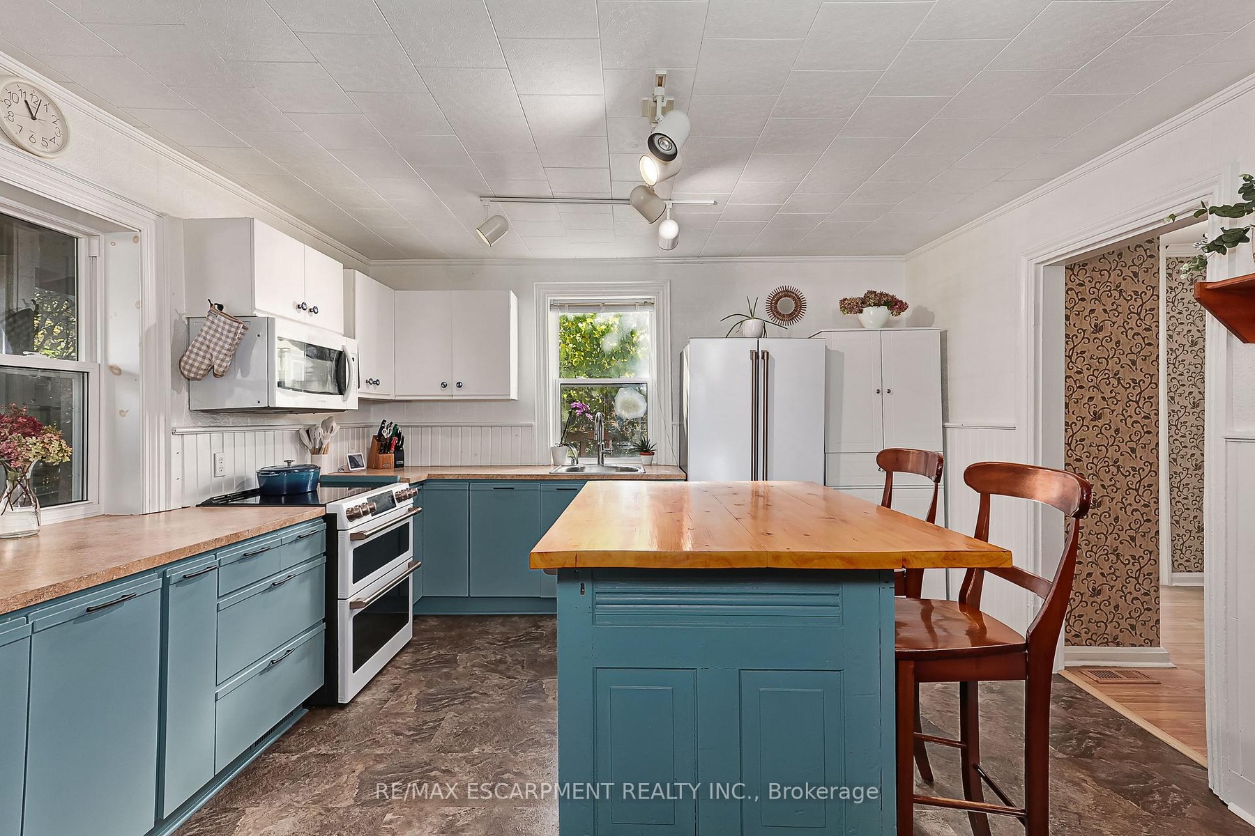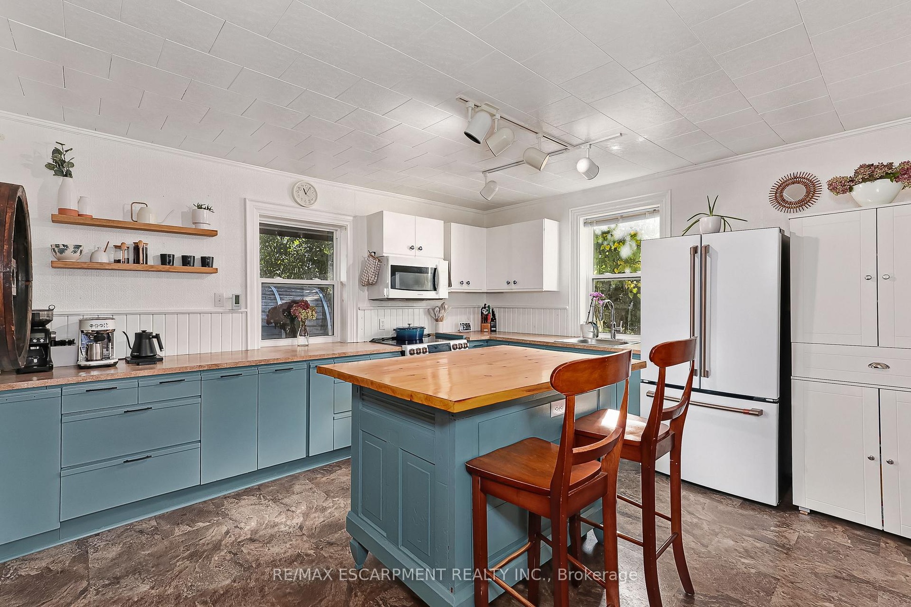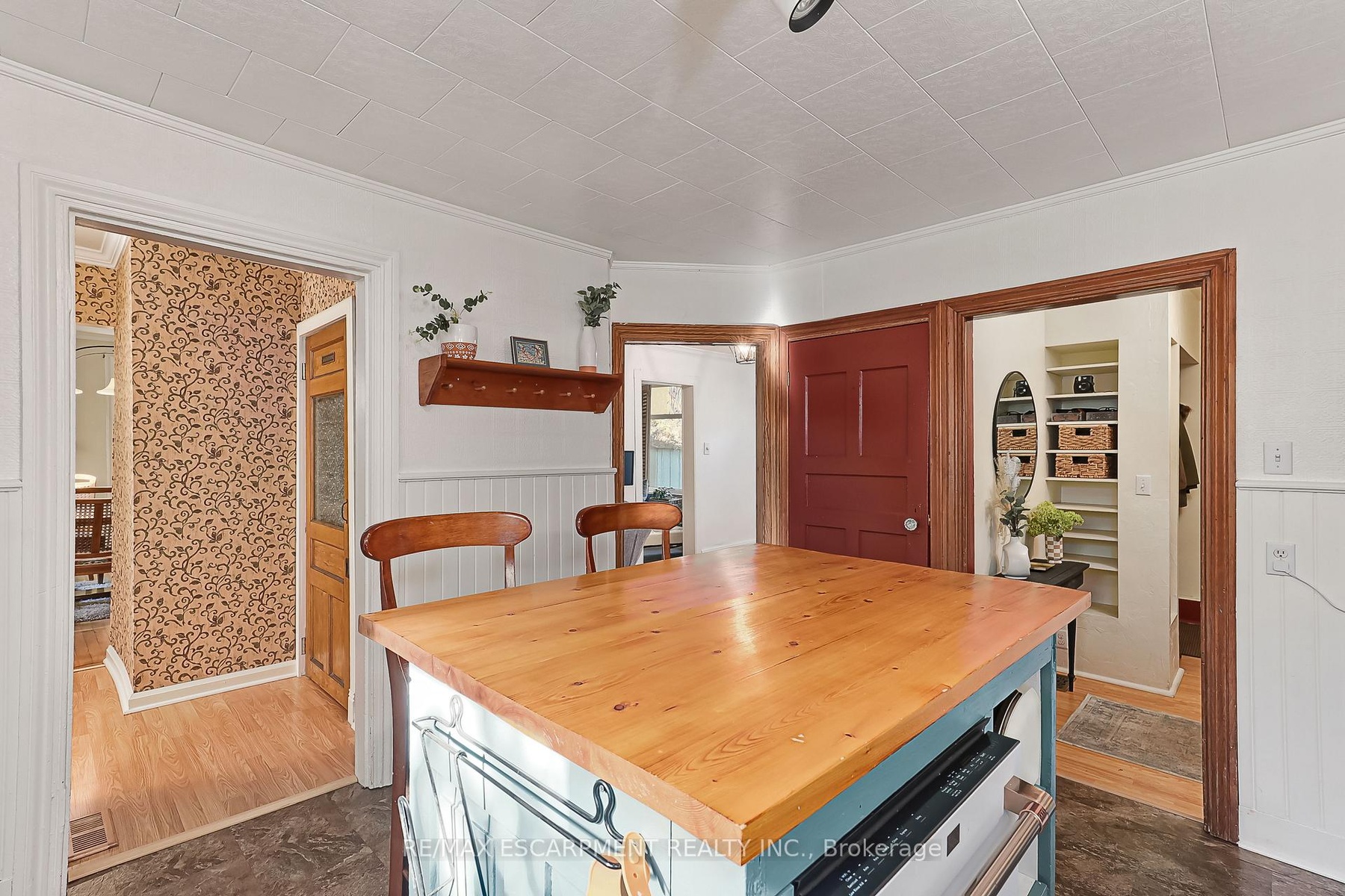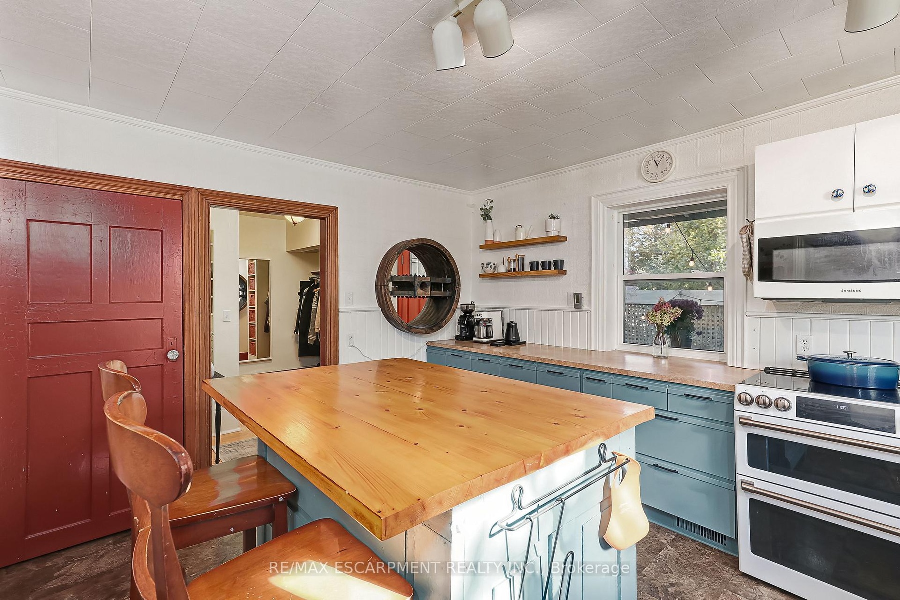 Charming Century Home in the Heart of Meaford! Step into a piece of history with this beautiful 3-bedroom, 2-bath century home, blending original character with modern comfort. Featuring stunning original details including doors, trim, and a unique old press seamlessly incorporated into the kitchen this home is full of timeless charm. Perfect for families or professionals, the layout includes two dedicated work-from-home office spaces, and the versatile third bedroom has been divided into two separate rooms, offering flexible options. This home is located on a quiet dead end street with a long, private driveway through picturesque front gardens to a secluded backyard, creating a peaceful retreat just steps from Georgian Bay and within walking distance to downtown Meaford.