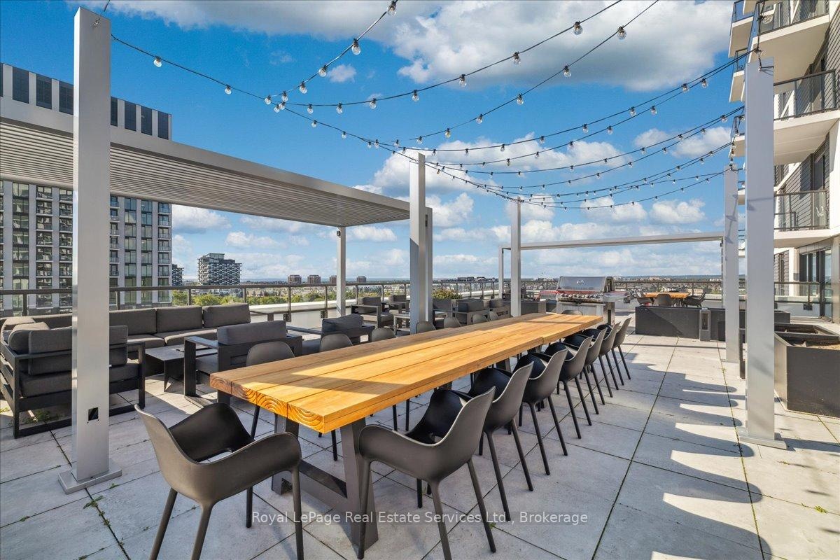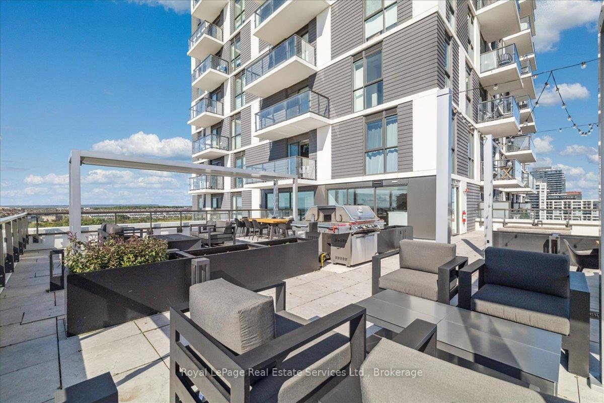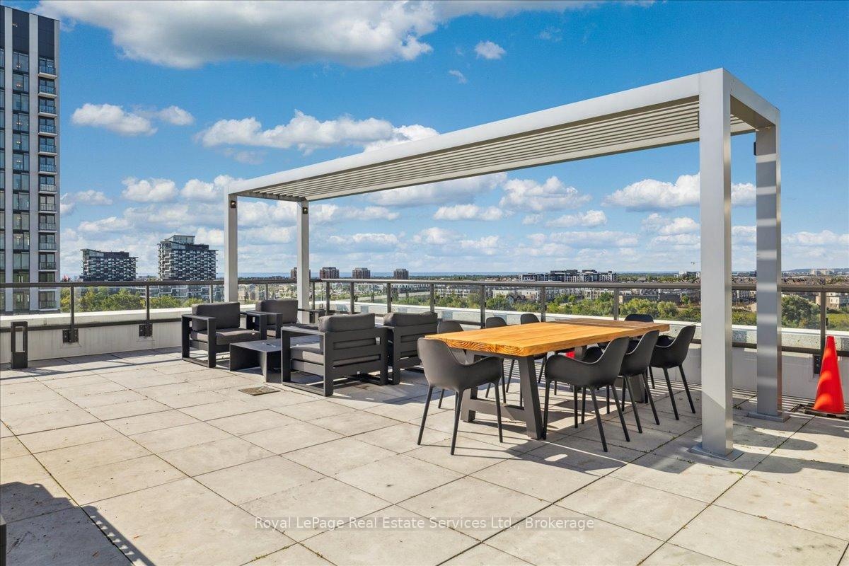 Rarely Offered Penthouse Suite Featuring A 1 Bed Plus Den, Easterly Unobstructed Views. Numerous Premium Upgrades Throughout Including Flooring, Backsplash, Cabinetry, & Countertops. The Kitchen Boasts Upgraded Island Ideal for Dining Or Meal Preparation. Step Out to Your Private Balcony & Enjoy All The Unobstructed Views. Take Advantage of the Den For Your Home Office or Guest Accommodations. Well Appointed Building Amenities Including A Party Room, Rooftop Terrace, & Fitness Centre. The Condo Also Includes One Underground Parking Spot & Locker. Car Charging on Site. Minutes Away From Shops, Restaurants, Highways, GO Transit, Schools, Sheridan College & Oakville Trafalgar Memorial Hospital. Shows 10++ (628sqft + 50sqft balcony).