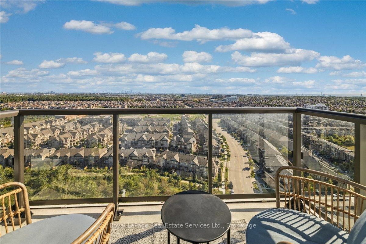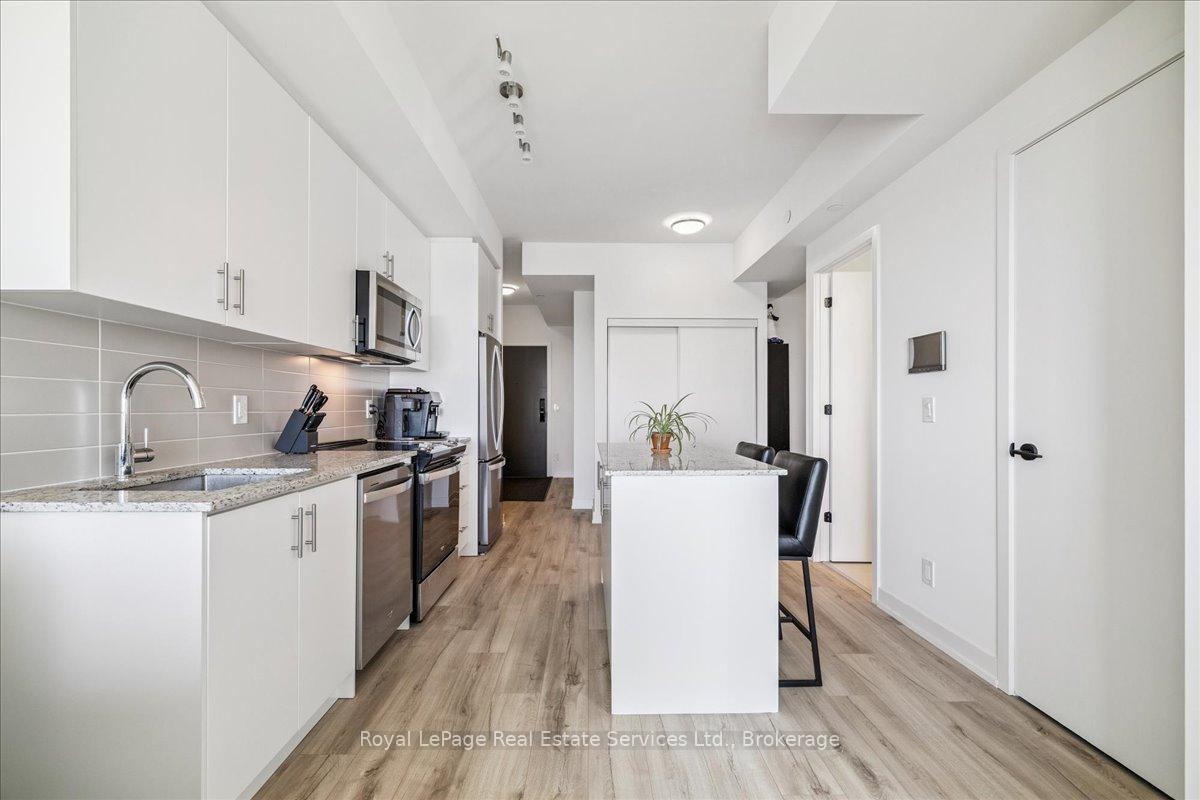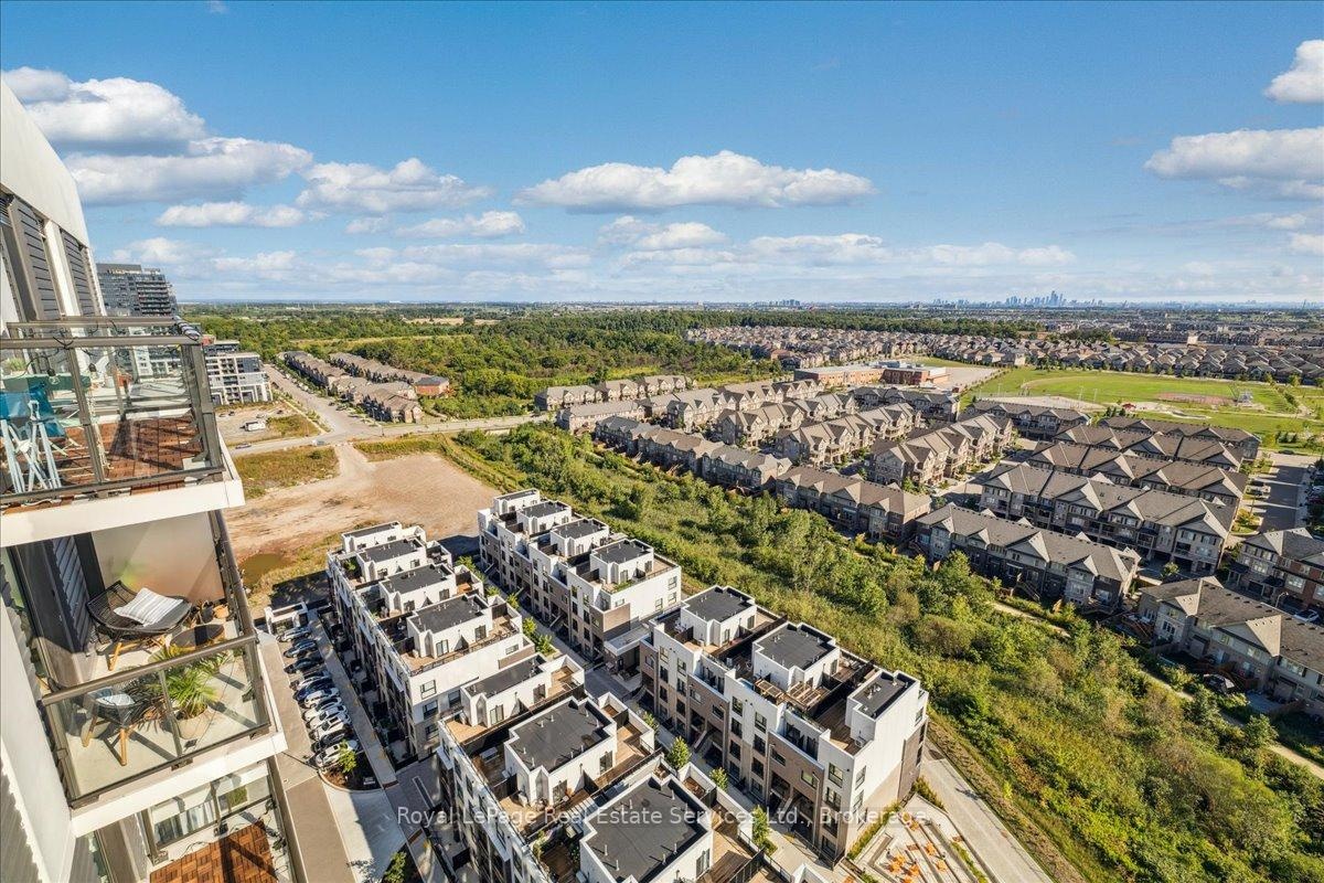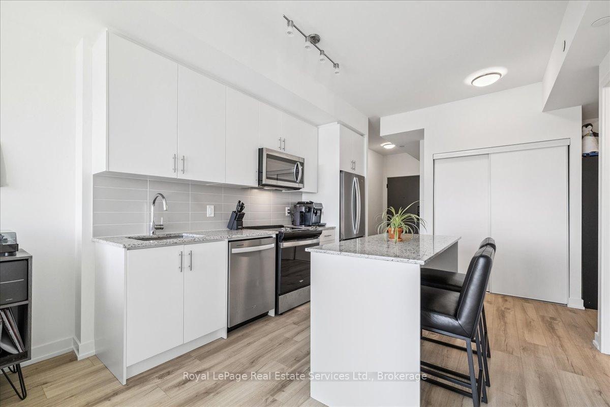 Rarely Offered Penthouse Suite Featuring A 1 Bed Plus Den, Easterly Unobstructed Views. Numerous Premium Upgrades Throughout Including Flooring, Backsplash, Cabinetry, & Countertops. The Kitchen Boasts Upgraded Island Ideal for Dining Or Meal Preparation. Step Out to Your Private Balcony & Enjoy All The Unobstructed Views. Take Advantage of the Den For Your Home Office or Guest Accommodations. Well Appointed Building Amenities Including A Party Room, Rooftop Terrace, & Fitness Centre. The Condo Also Includes One Underground Parking Spot & Locker. Car Charging on Site. Minutes Away From Shops, Restaurants, Highways, GO Transit, Schools, Sheridan College & Oakville Trafalgar Memorial Hospital. Shows 10++ (628sqft + 50sqft balcony).